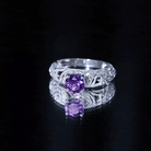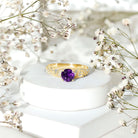 The brightness of Amethyst makes this vintage engagement ring more appealing. The Amethyst Ring is embellished with Round Diamond, glistening on the shank beautifully. The Amethyst Diamond Engagement Ring is accentuated with Beaded detailing, make your significant feel more precious with this Amethyst Ring.