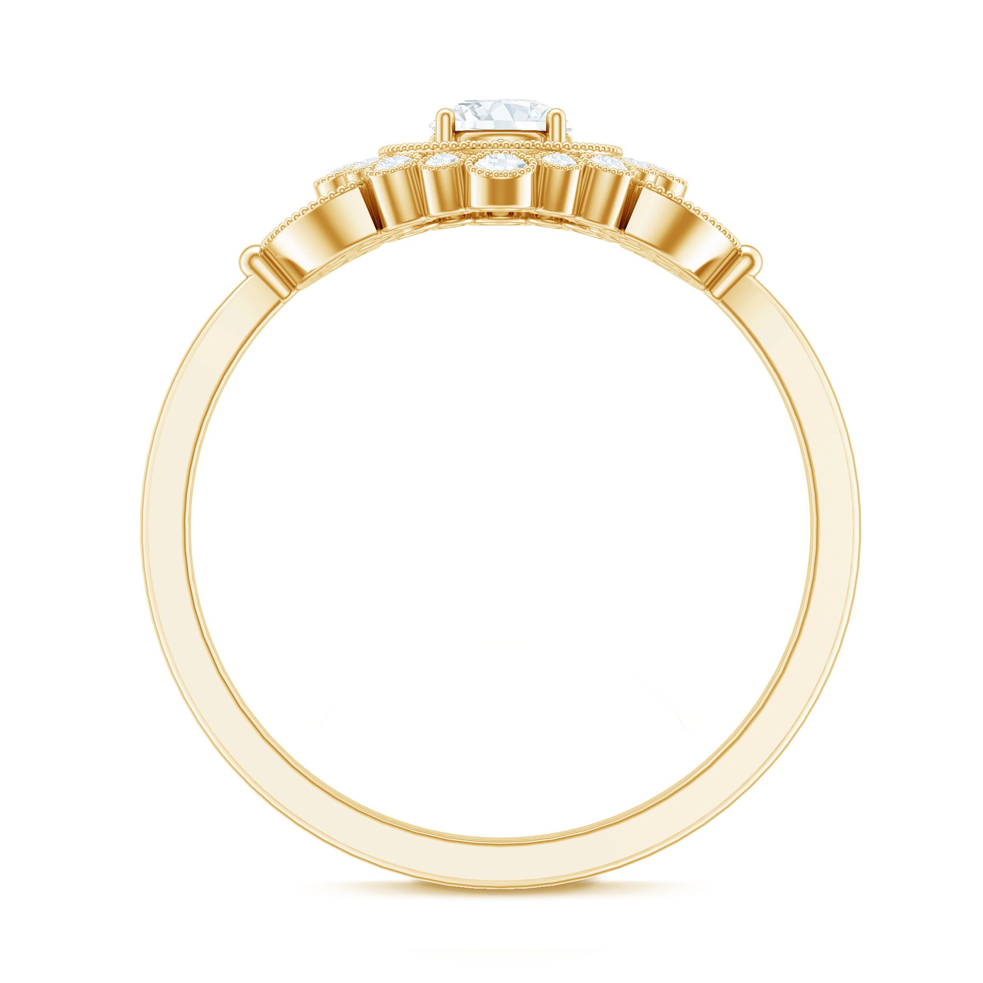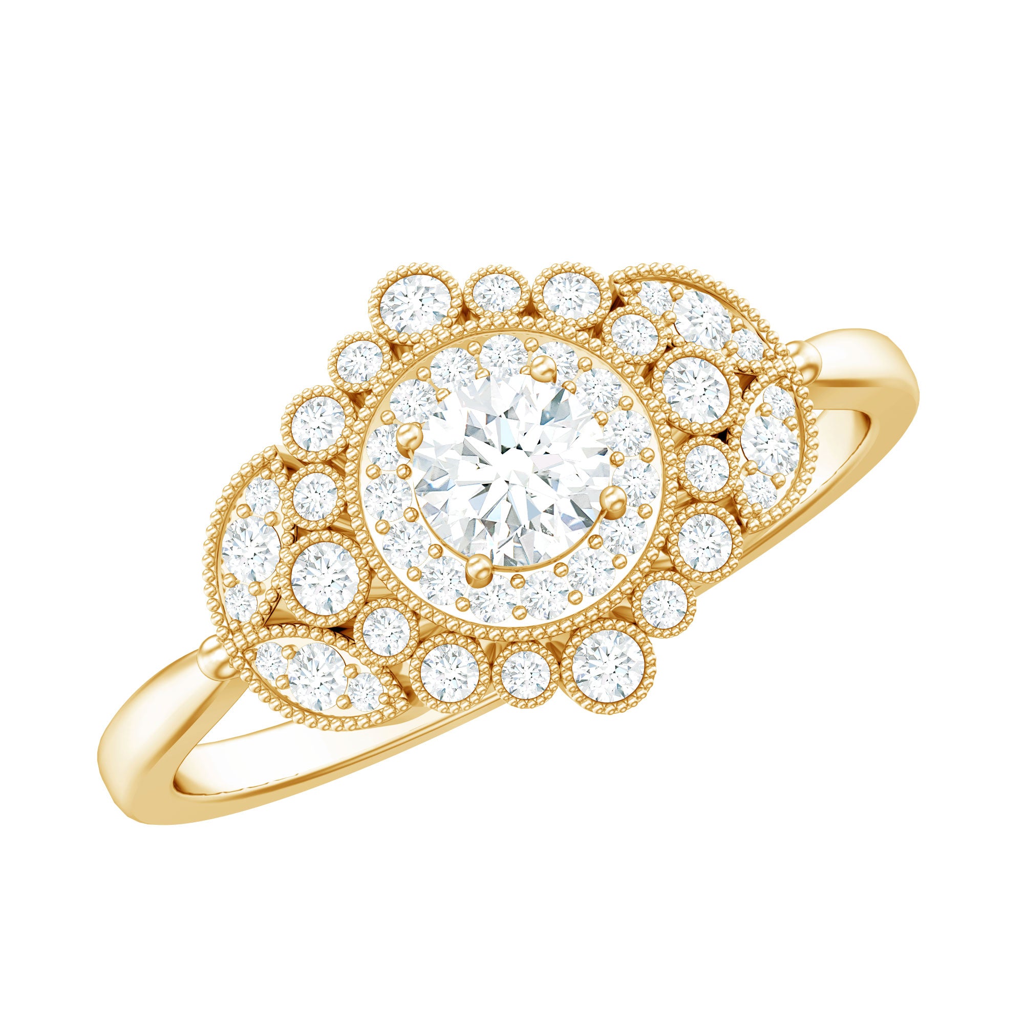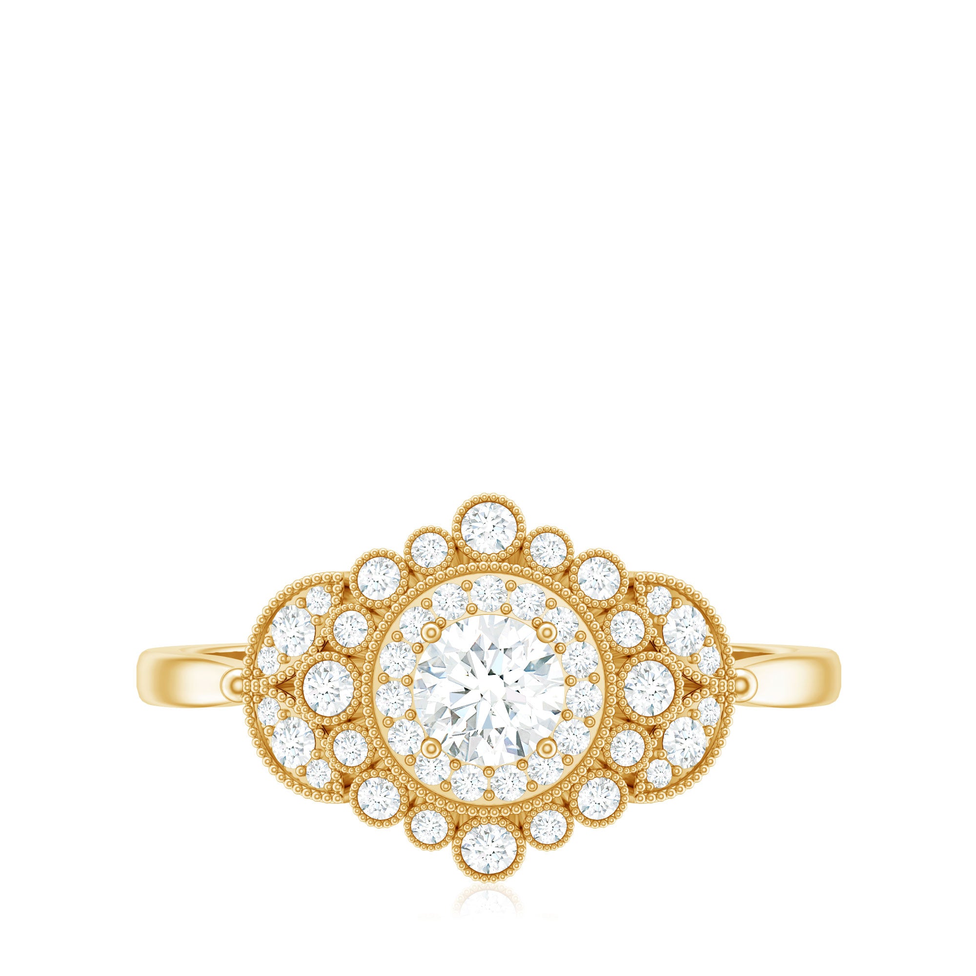 3/4 CT Vintage Style Zircon Engagement Ring with Milgrain Gold