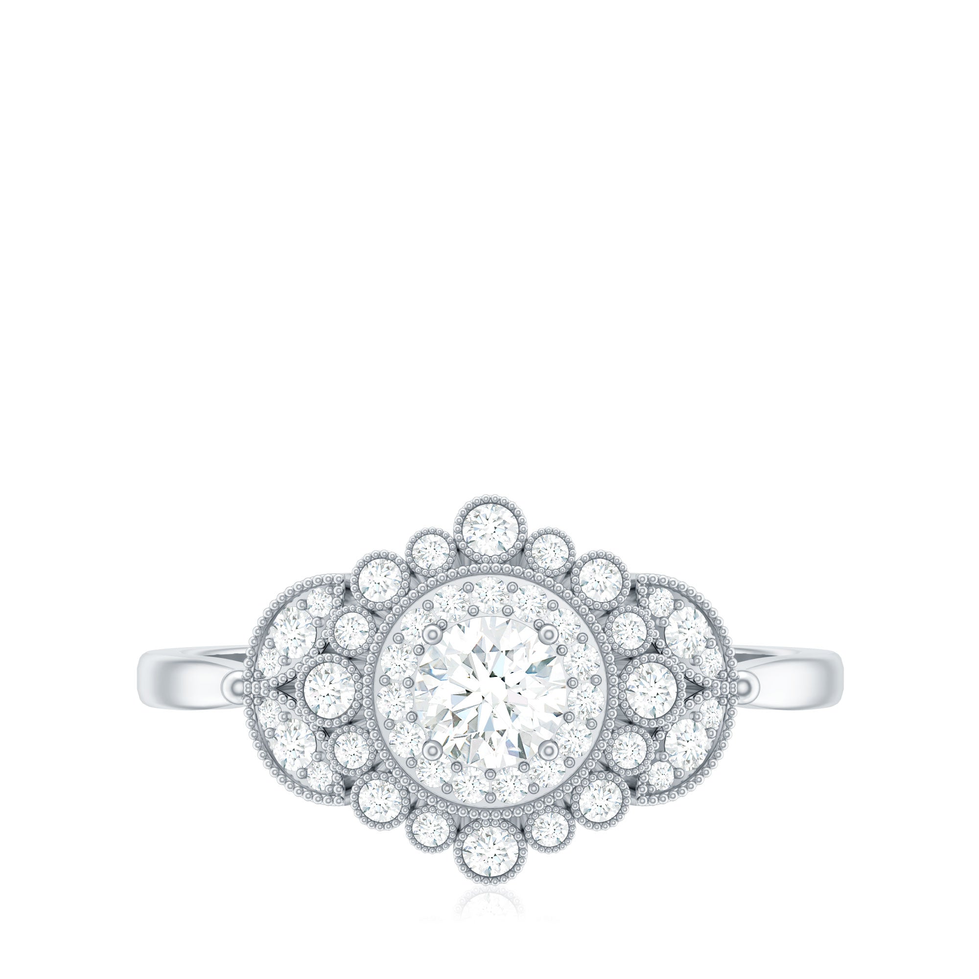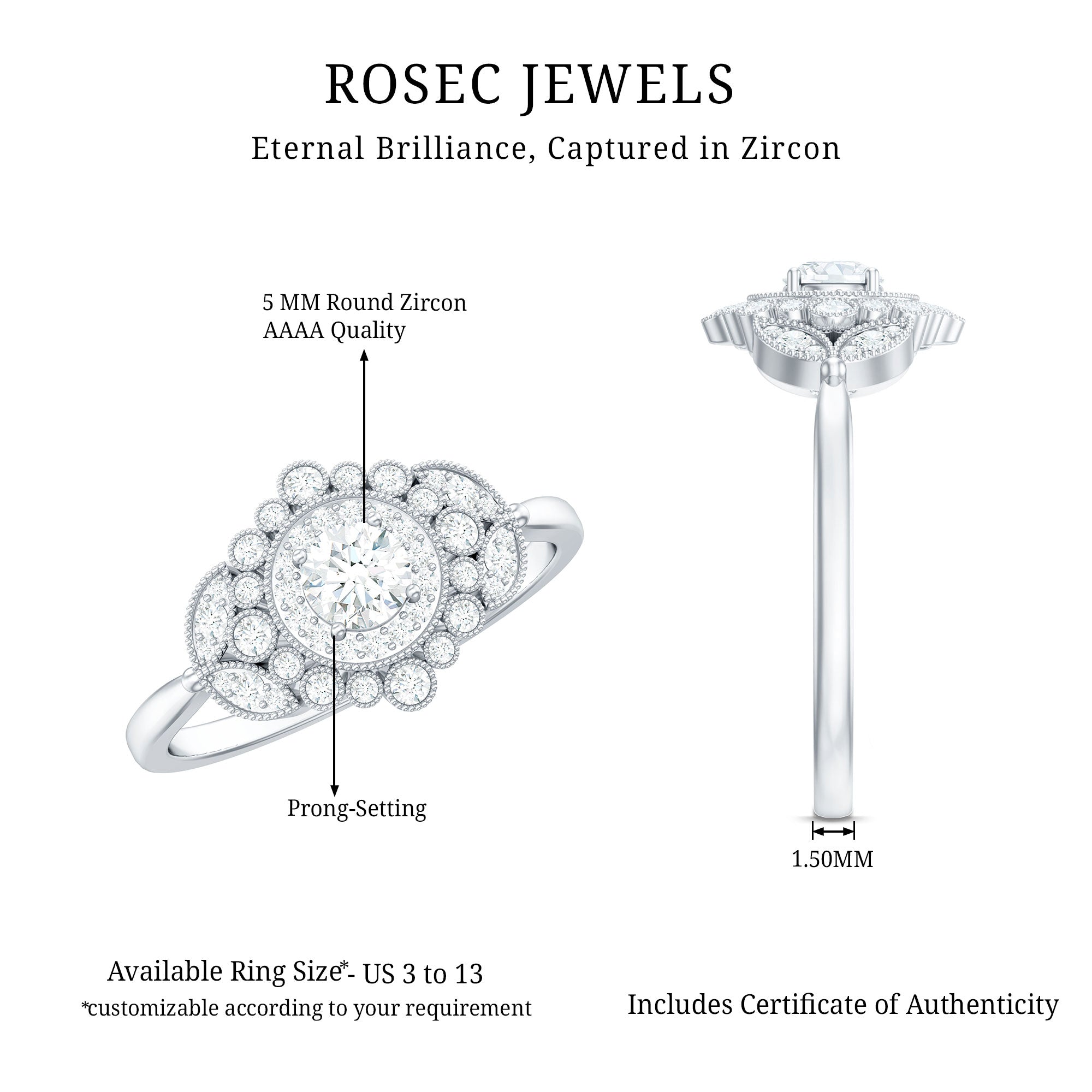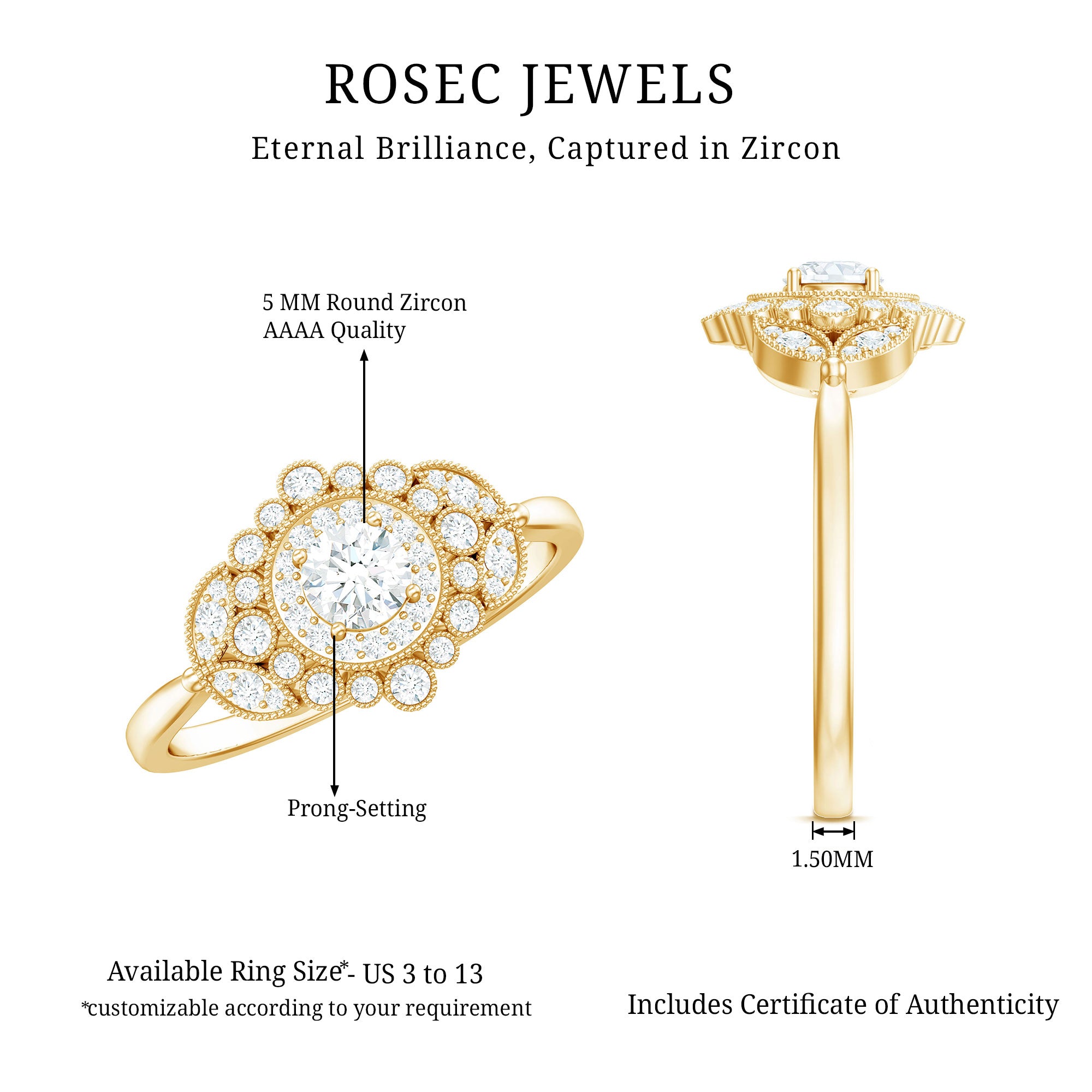 3/4 CT Vintage Style Zircon Engagement Ring with Milgrain Gold