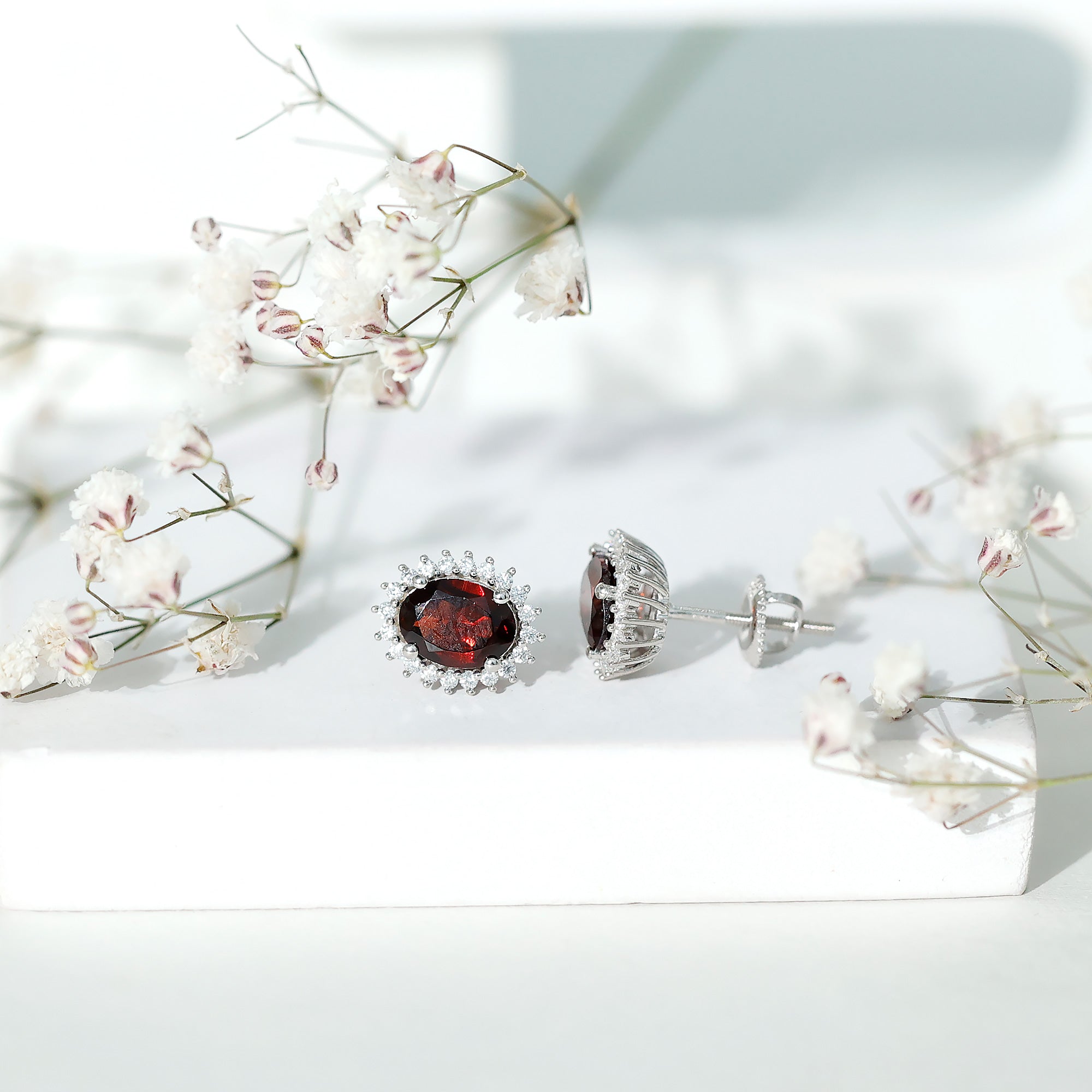 3.5 CT Classic Garnet Stud Earrings with Moissanite Halo