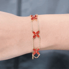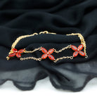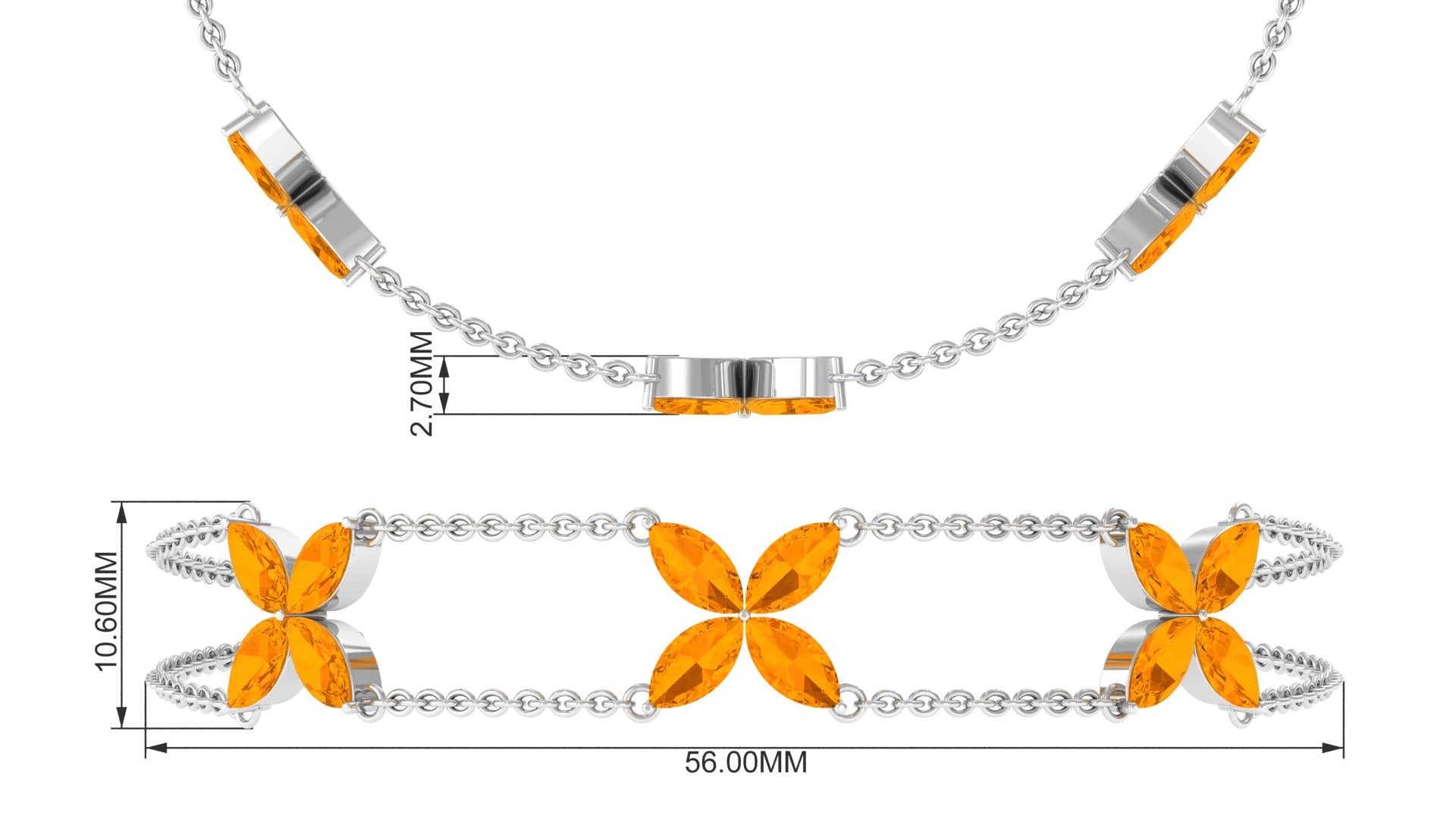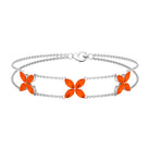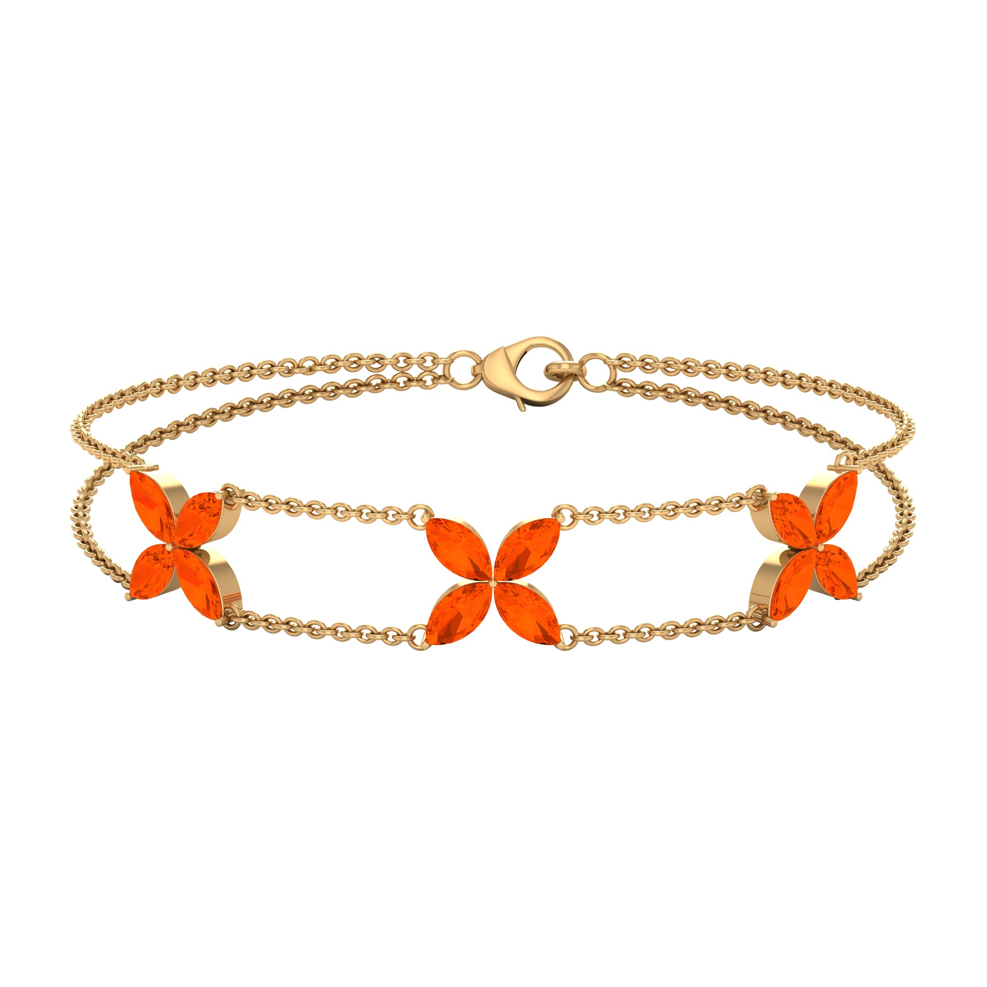 3.5 CT Marquise Fire Opal Flower Gold Double Chain Bracelet