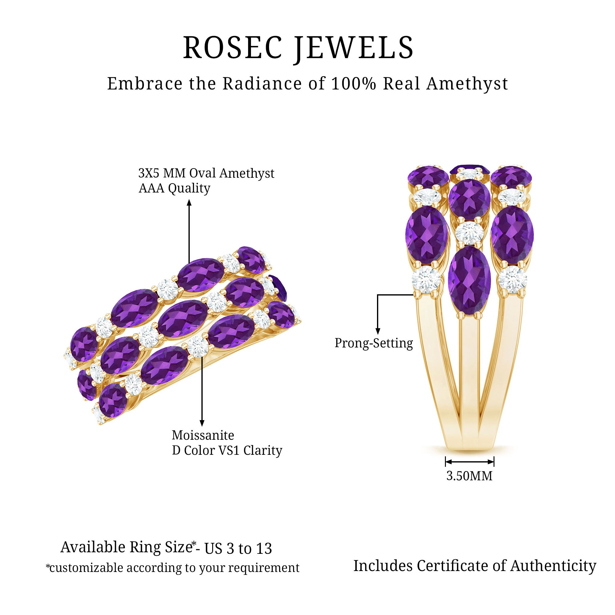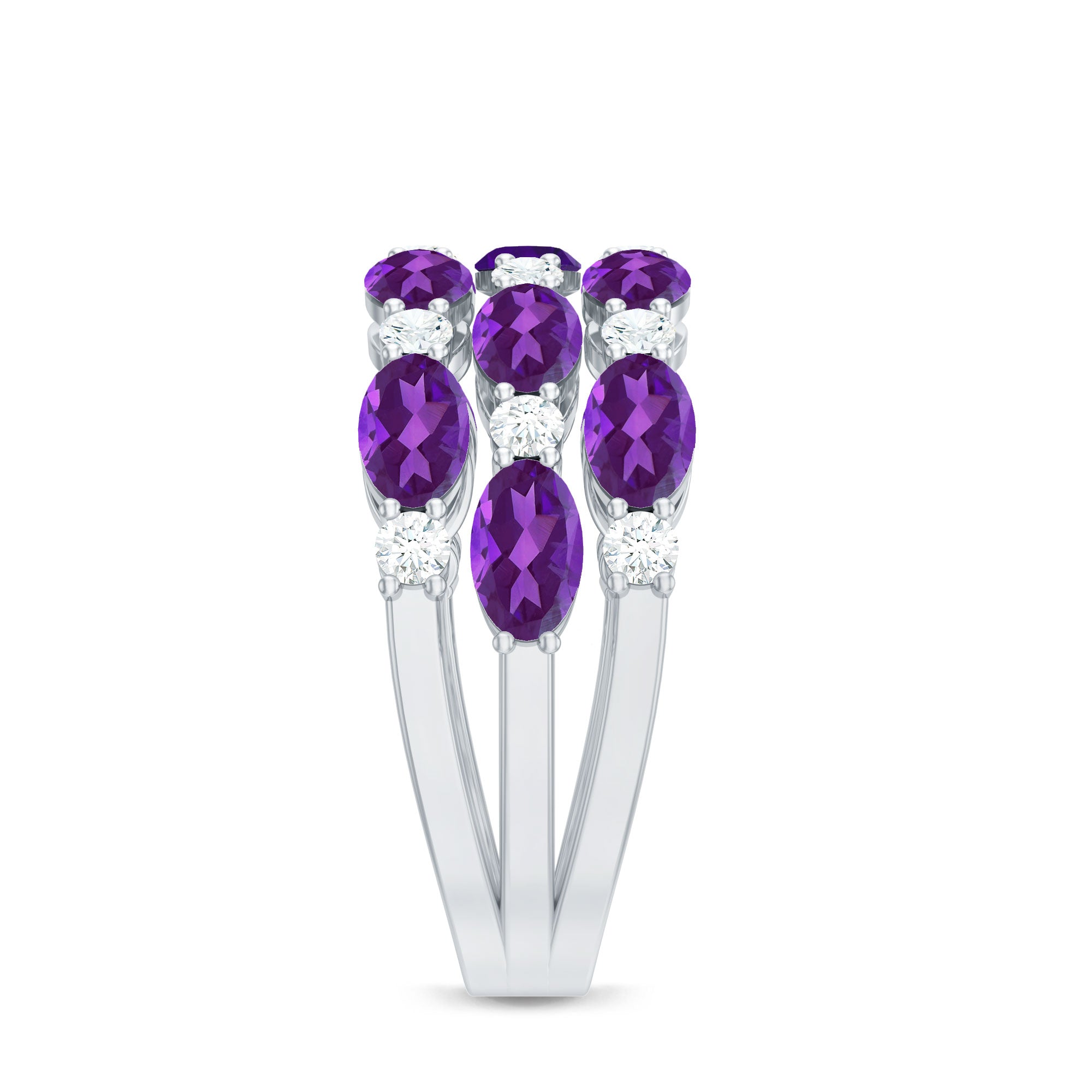 3.50 CT Amethyst and Moissanite Three Row Wedding Band