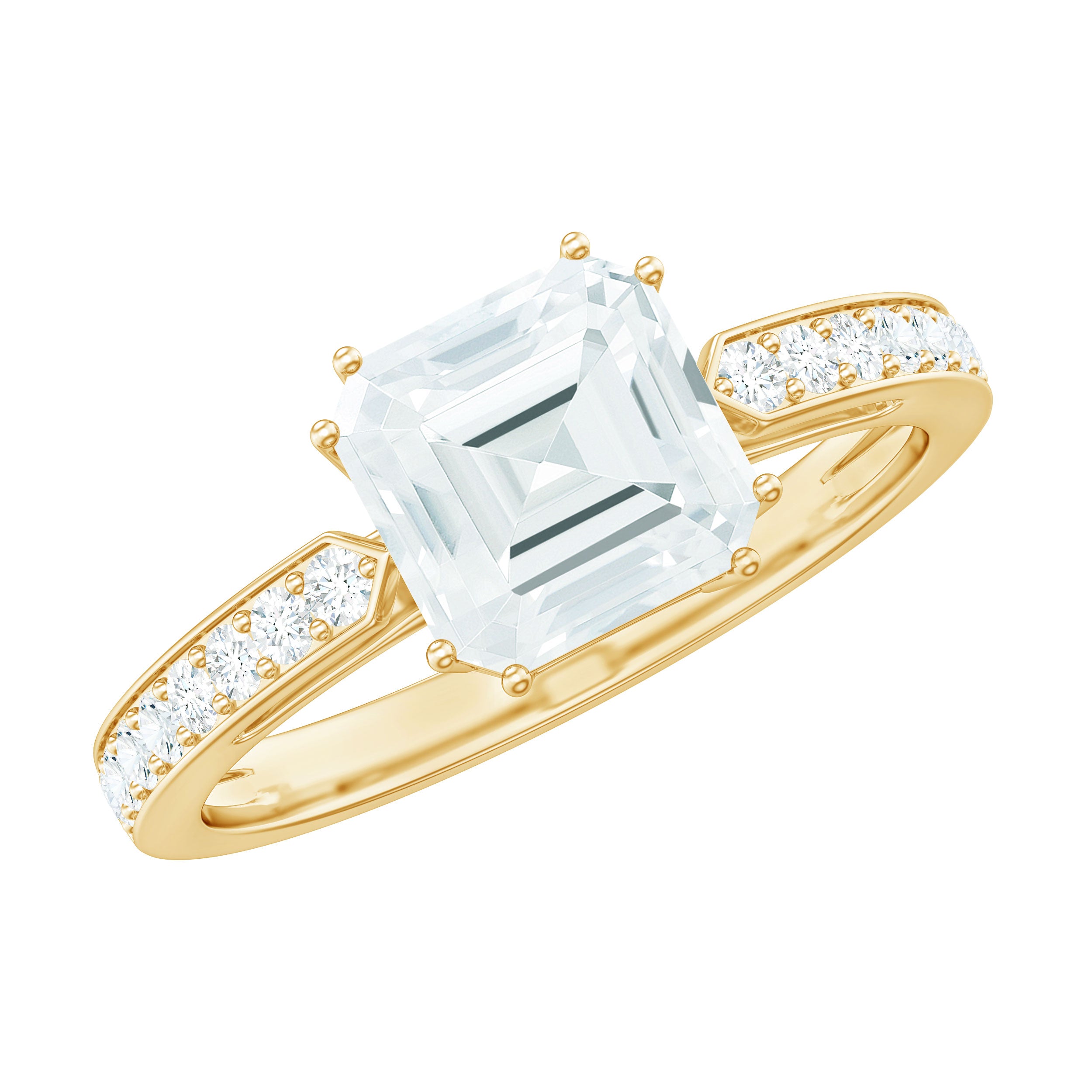 3.50 CT Asscher Cut Moissanite Solitaire Engagement Ring with Side Stones