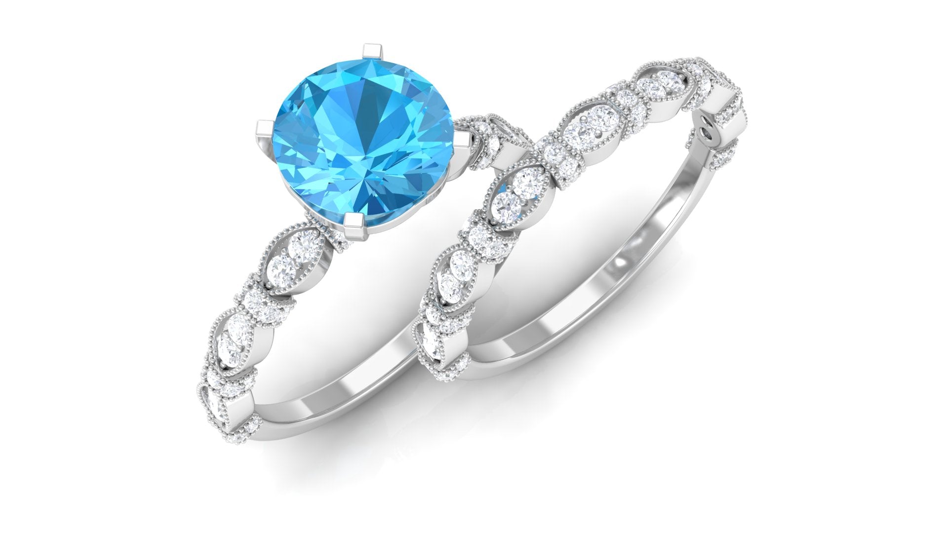 3.50 CT Wedding and Engagement Ring Set with Swiss Blue Topaz and Moissanite