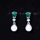 Freshwater Pearl Drop Dangle Earrings With Created Emerald