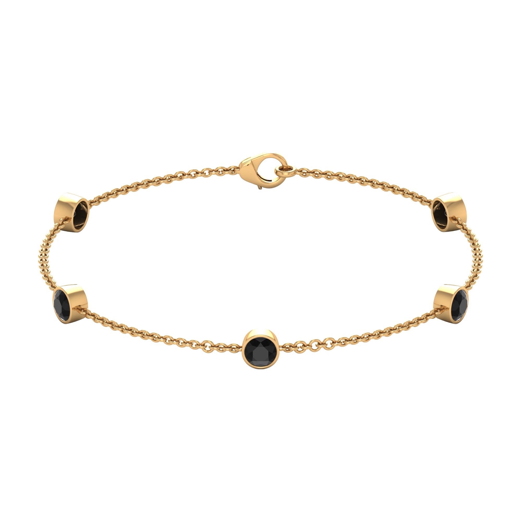 Treat yourself or your loved ones to the stunning beauty of this station chain bracelet, embellished with round-cut black diamonds in bezel settings, and adorned with solid gold. Dont miss the chance to add this exquisite piece of jewelry to your collection.