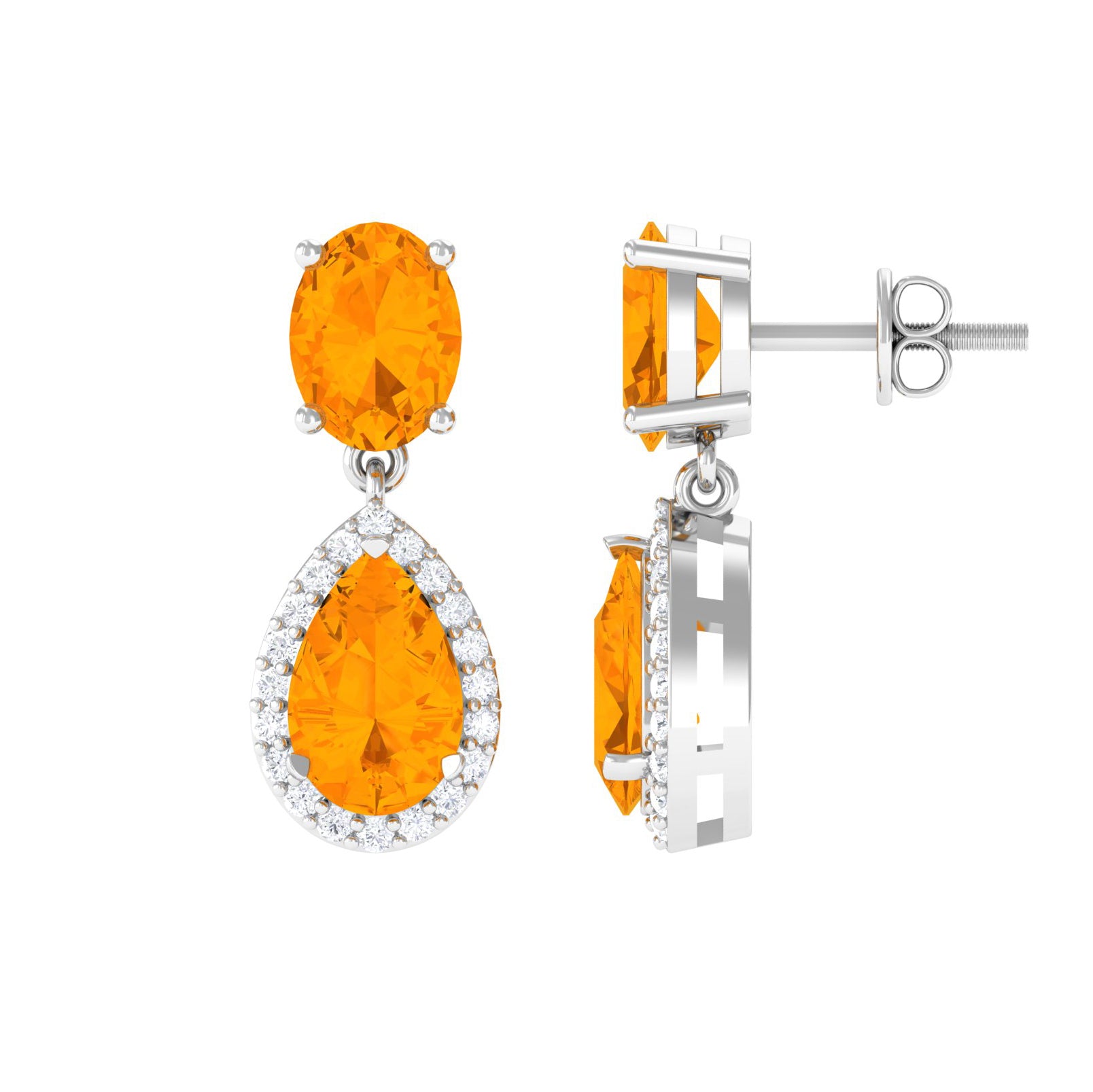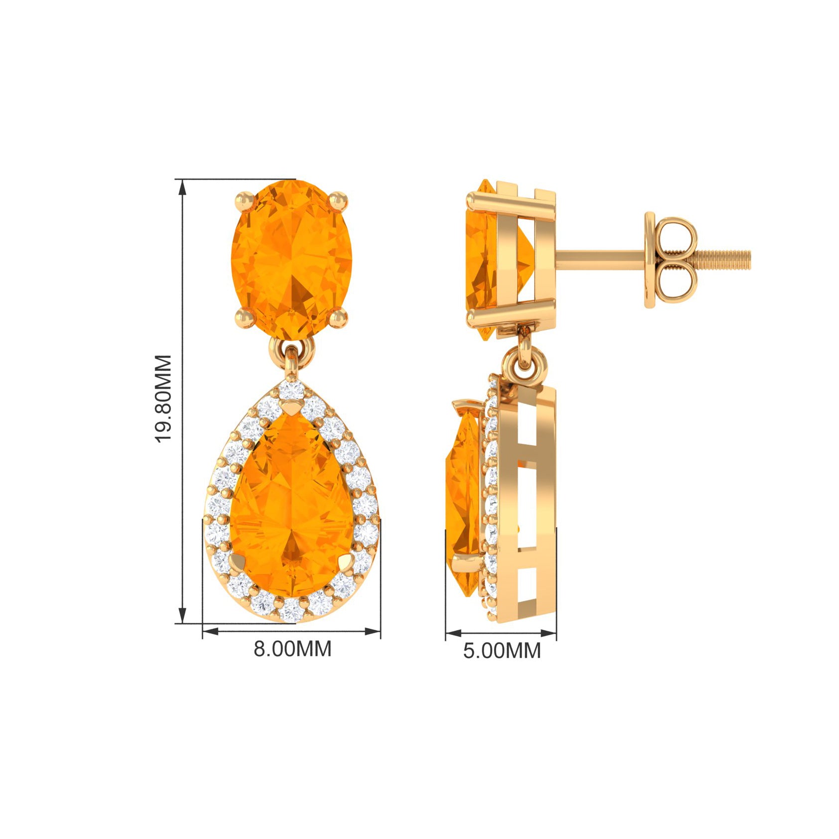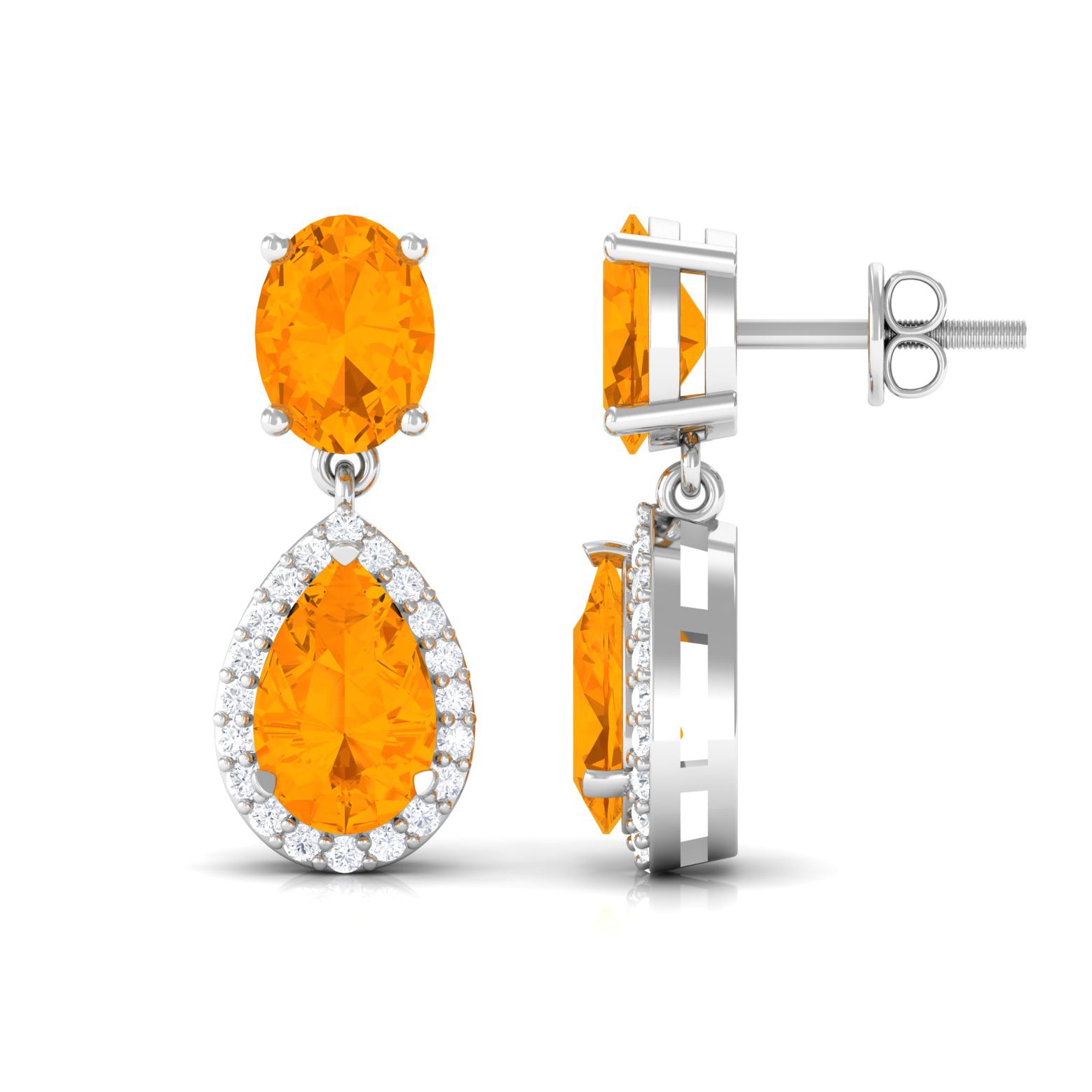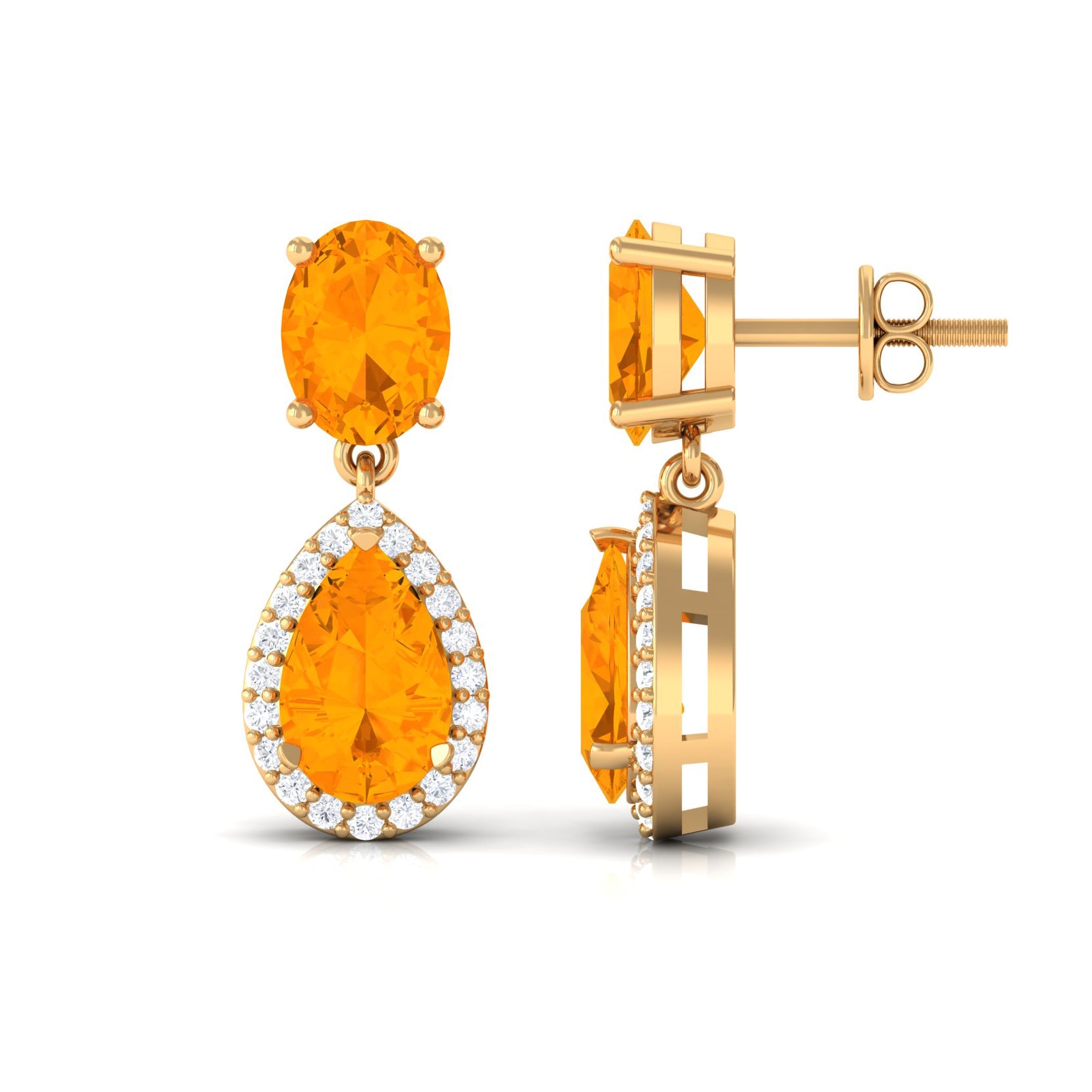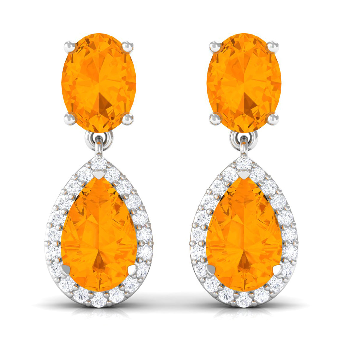 3 CT Classic Fire Opal Dangle Earrings with Diamond