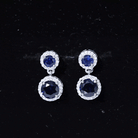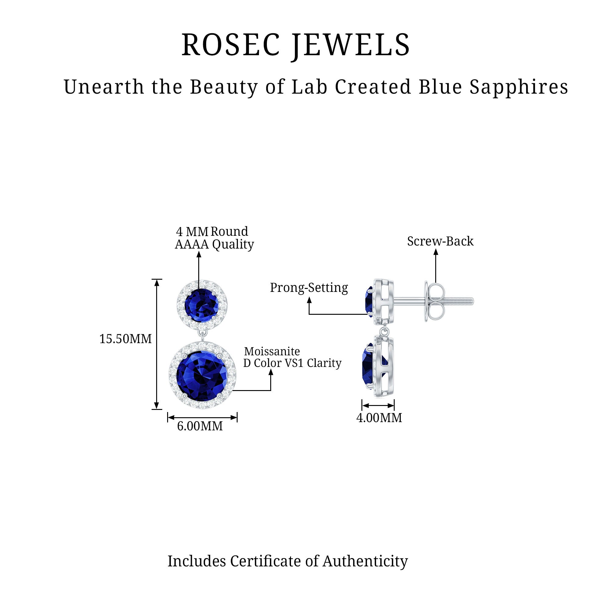 3 CT Created Blue Sapphire and Moissanite Halo Dangle Earrings