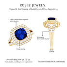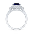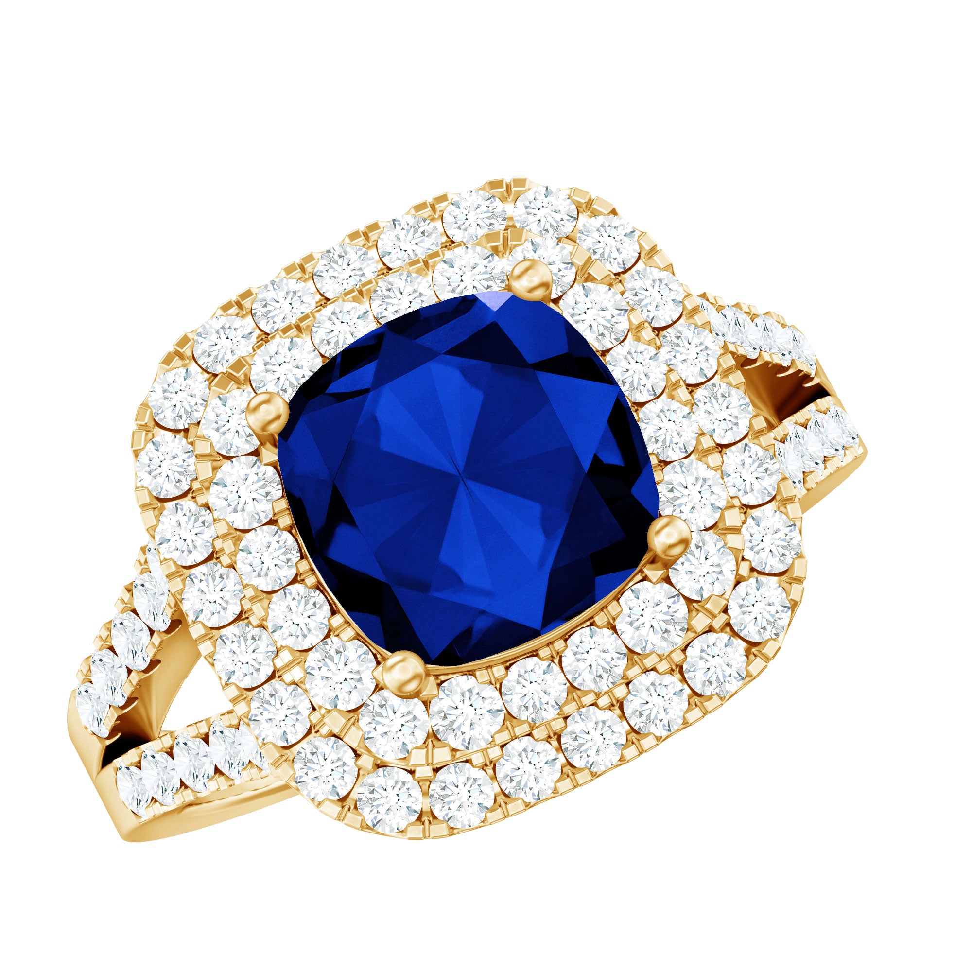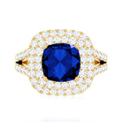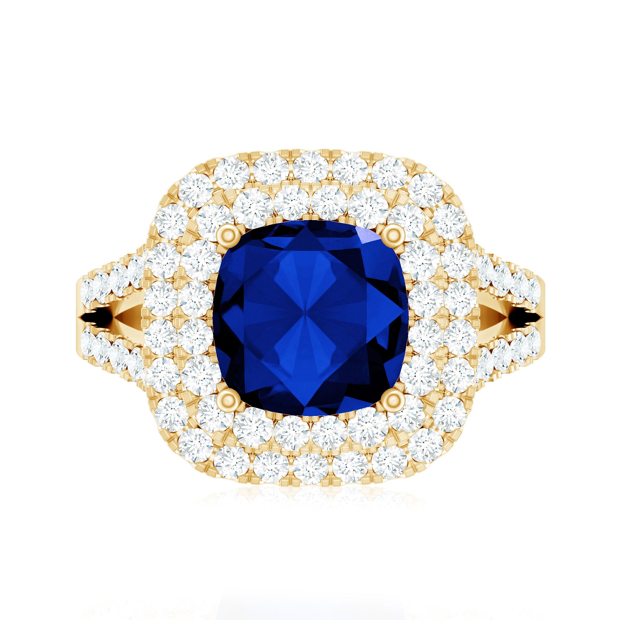 Cushion Cut Created Blue Sapphire Double Halo Engagement Ring with Moissanite