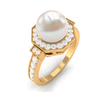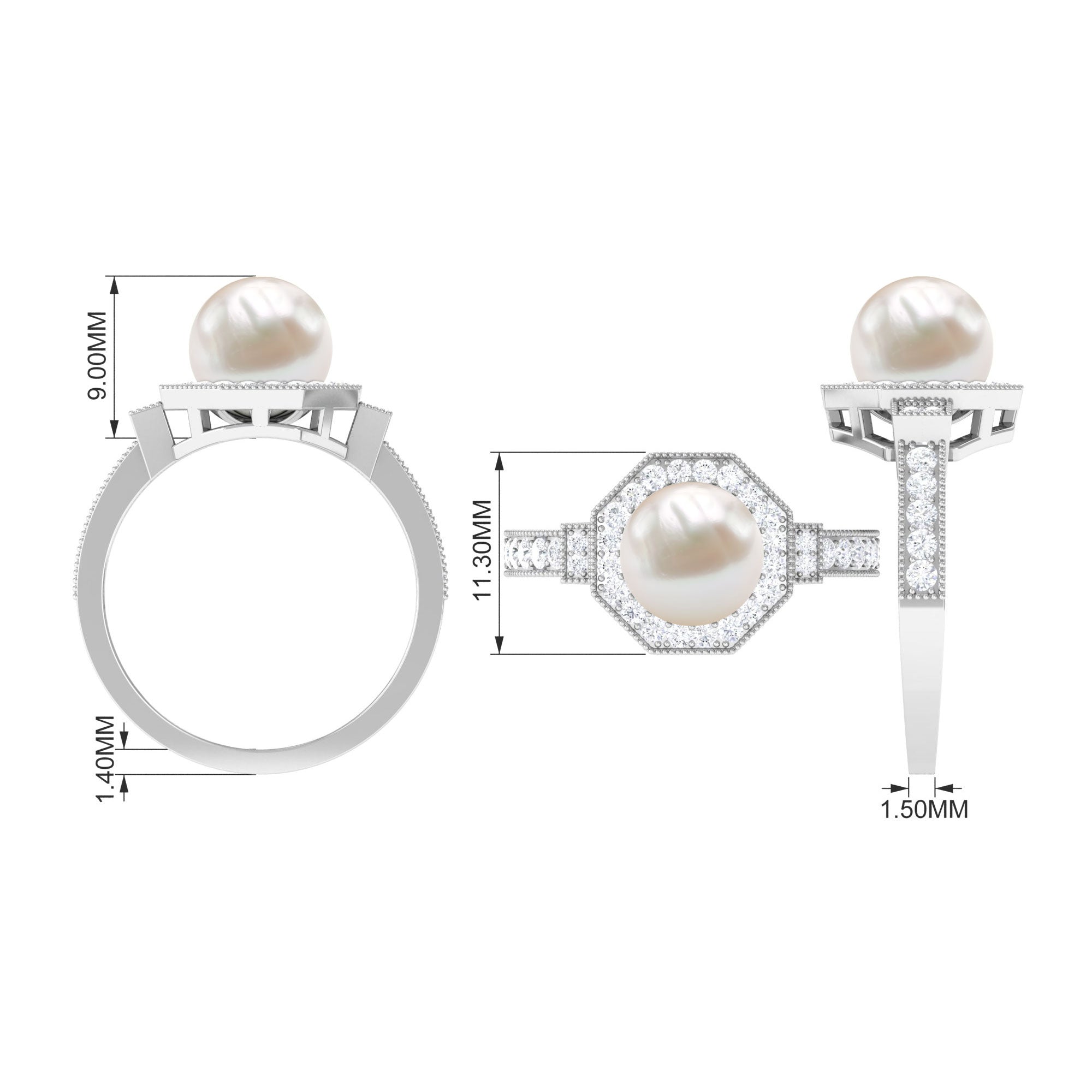 3 CT Freshwater Pearl Antique Beaded Ring with Diamond Halo