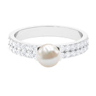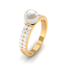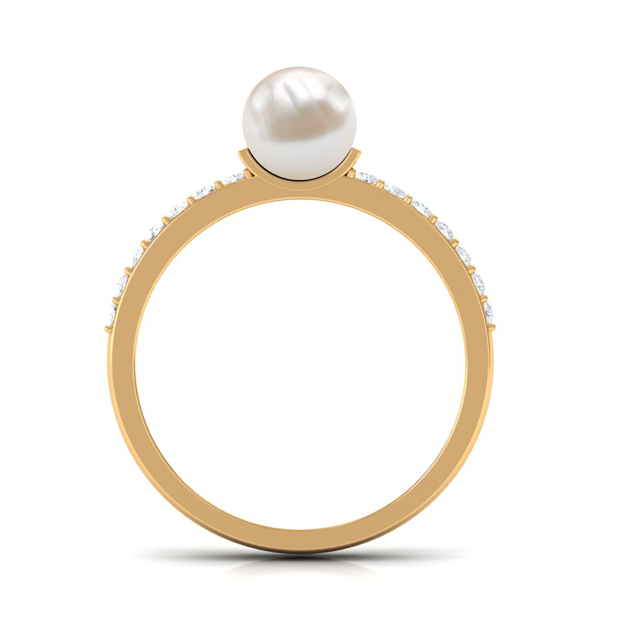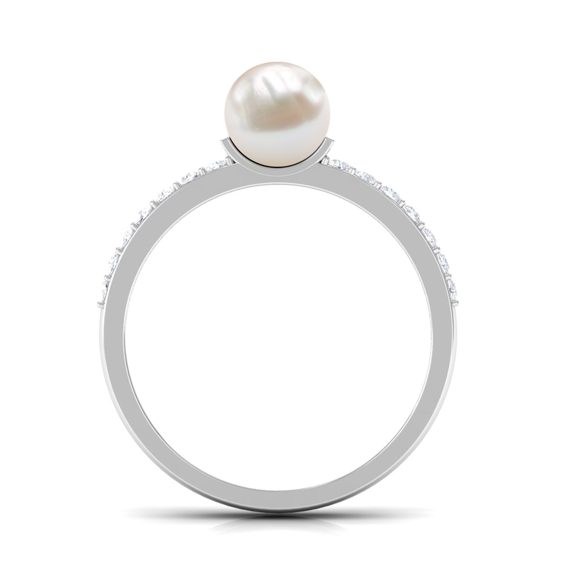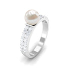 3 CT Freshwater Pearl Engagement Ring with Diamond Side Stones