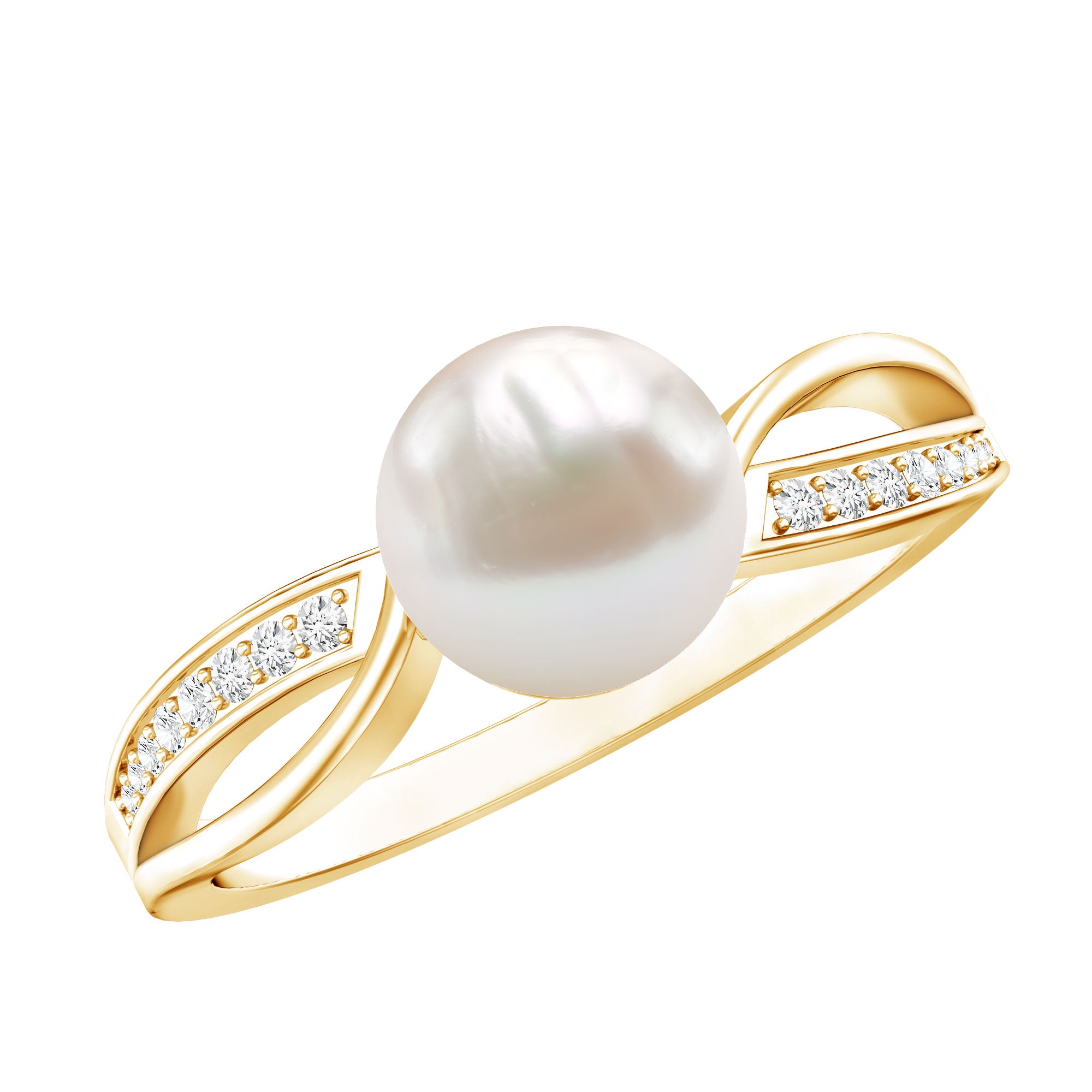 3 CT Freshwater Pearl Solitaire Ring with Diamond Infinity Shank