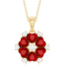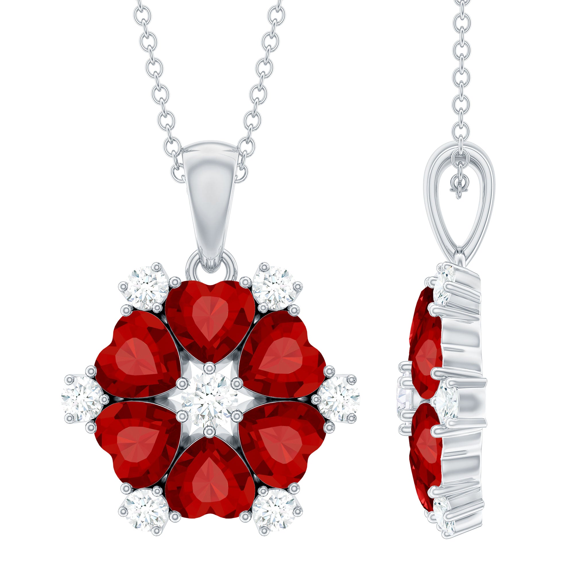 3 CT Heart Shape Created Ruby and Diamond Flower Pendant