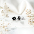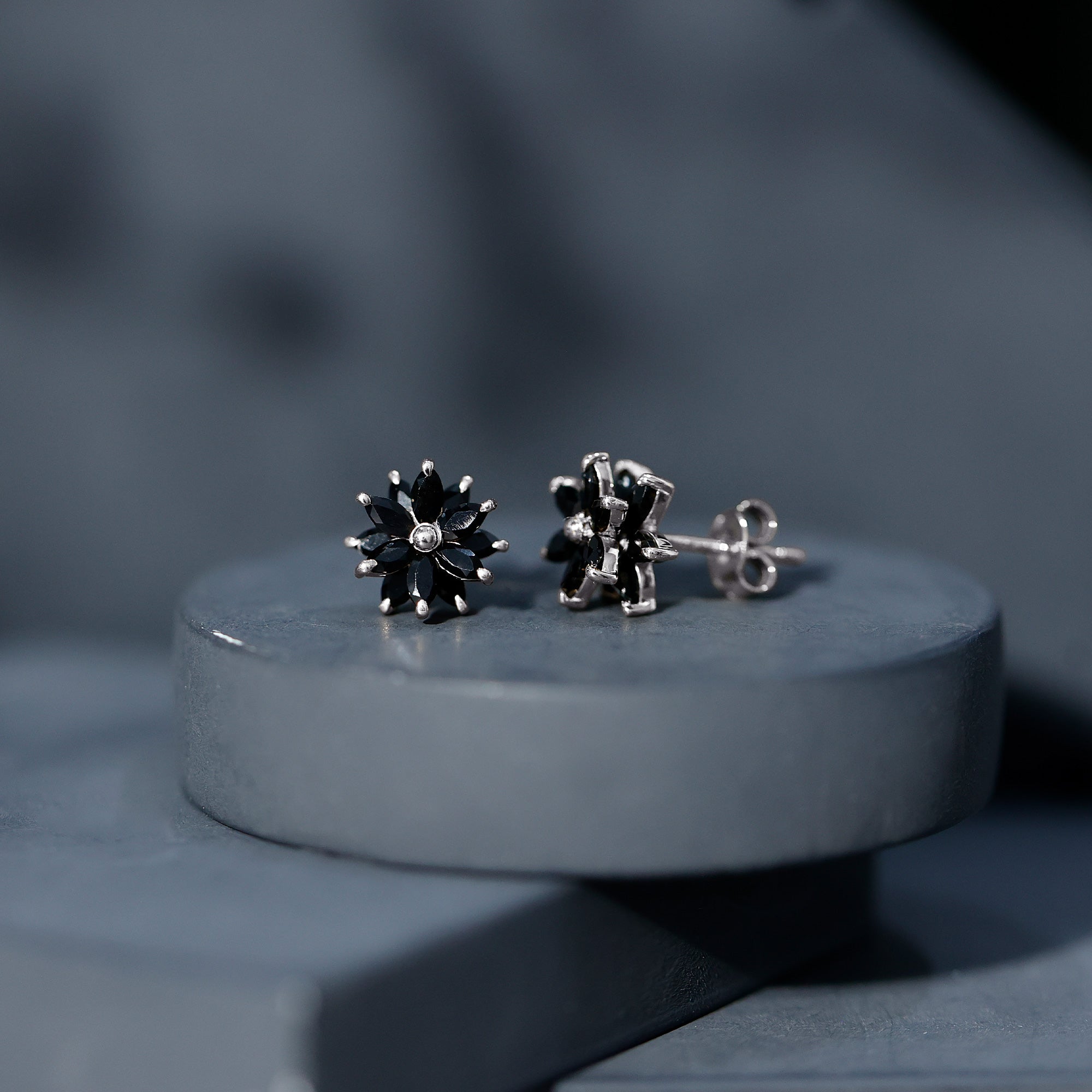 3 CT Marquise Shape Black Onyx Floral Statement Stud Earrings