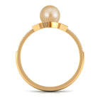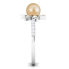 This south sea pearl solitaire ring is an absolute stunner, sure to catch the eye with its golden color and clear shine. The engagement ring features a round south sea pearl set in the center, surrounded by Diamond stones on both the shank and around the pearl itself. Crafted from solid gold in a flower motif, this flower ring has a classic appeal that is simply irresistible. With its floral design and elegant detailing, this ring is a must-have for any jewelry collection.