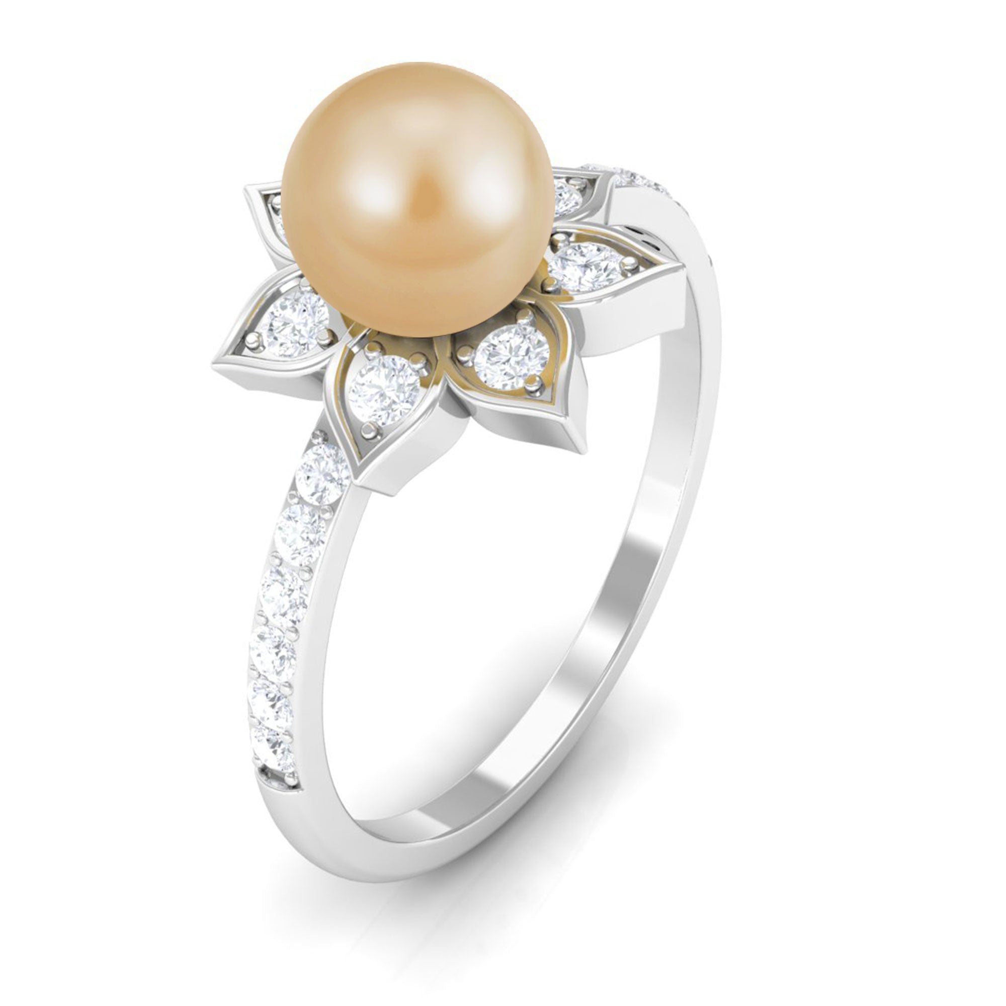 3 CT South Sea Pearl and Diamond Flower Engagement Ring