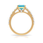 3 CT Swiss Blue Topaz Solitaire with Moissanite Side Stone Ring