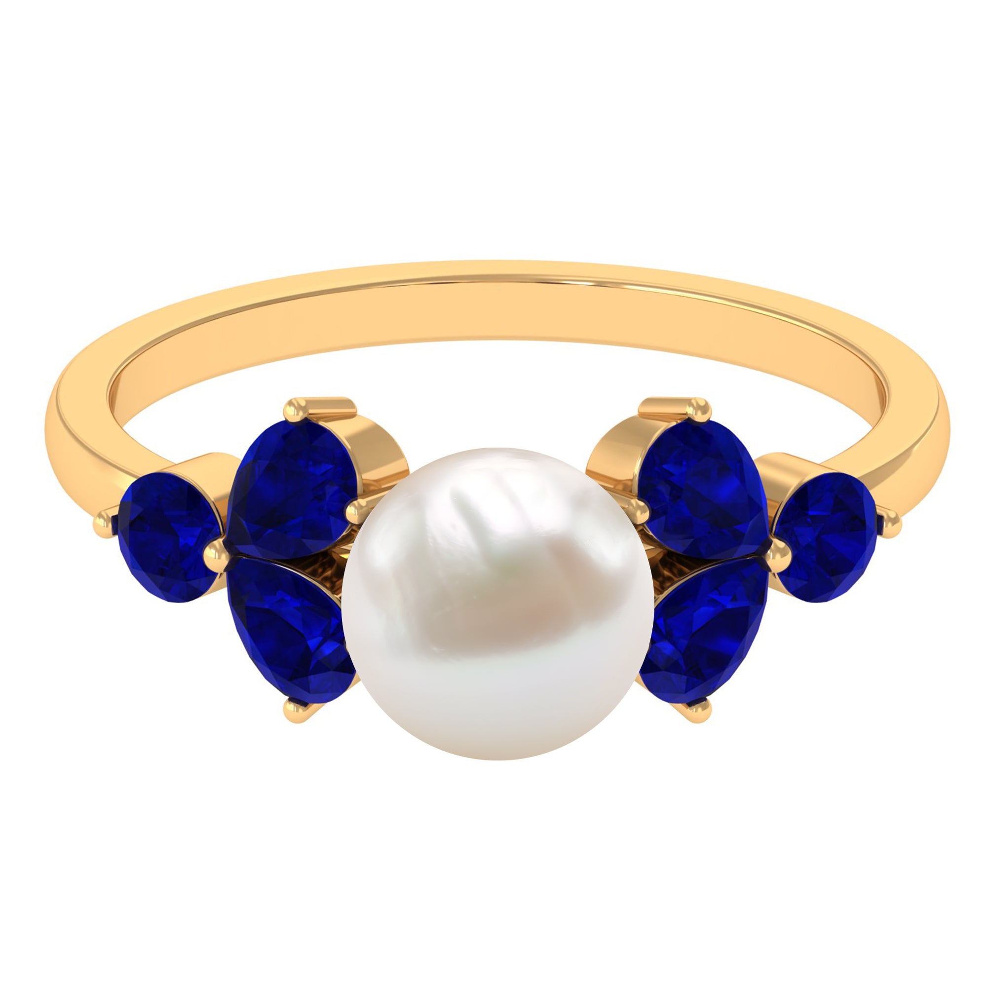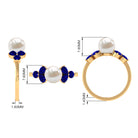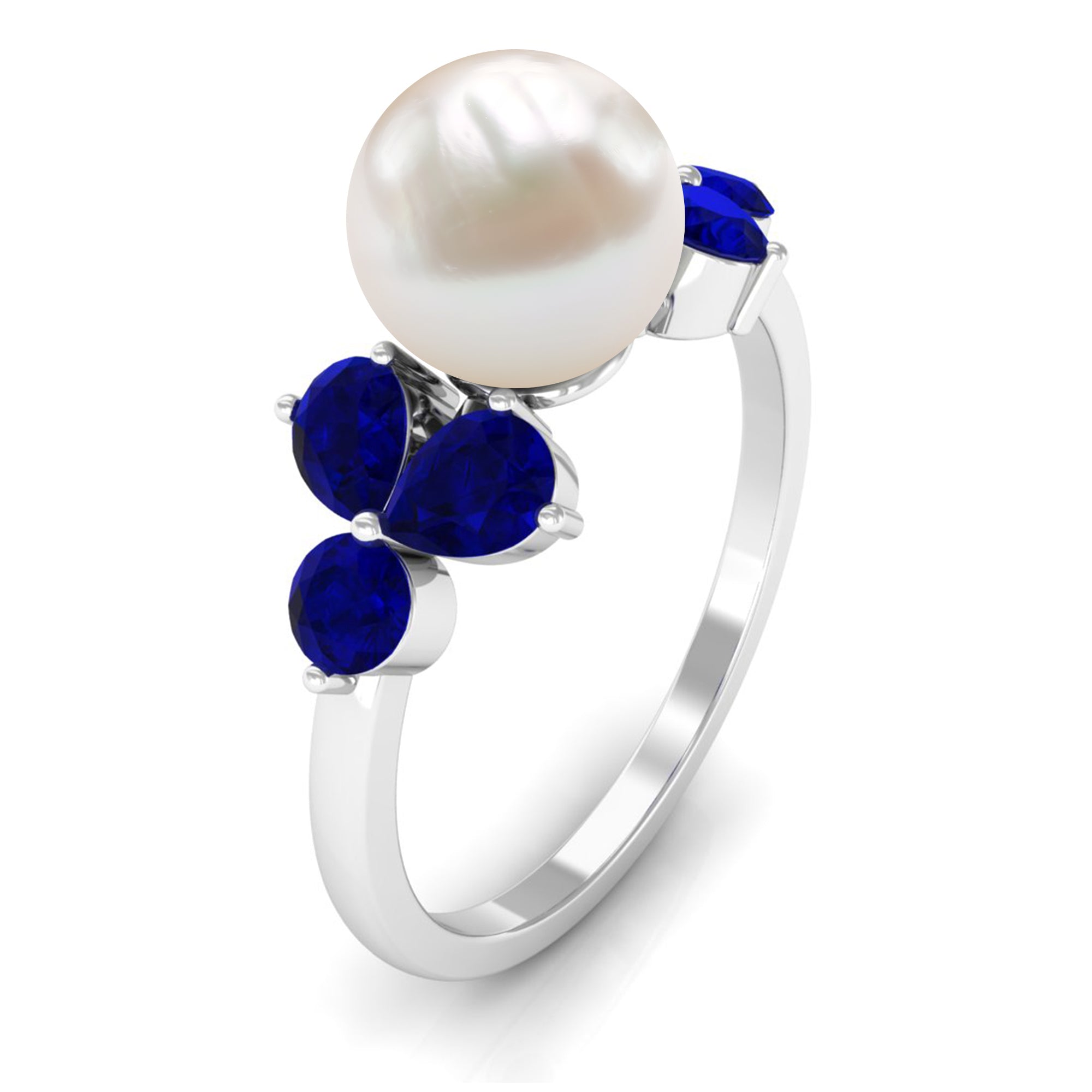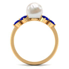 4.25 CT Real Freshwater Pearl Engagement Ring with Blue Sapphire Trio