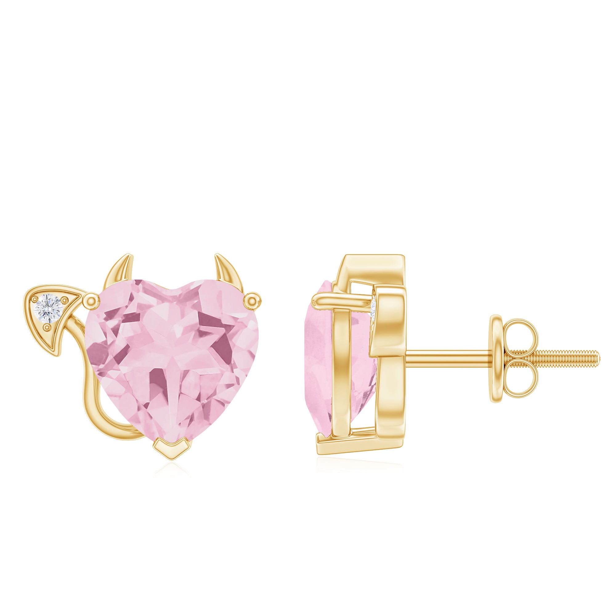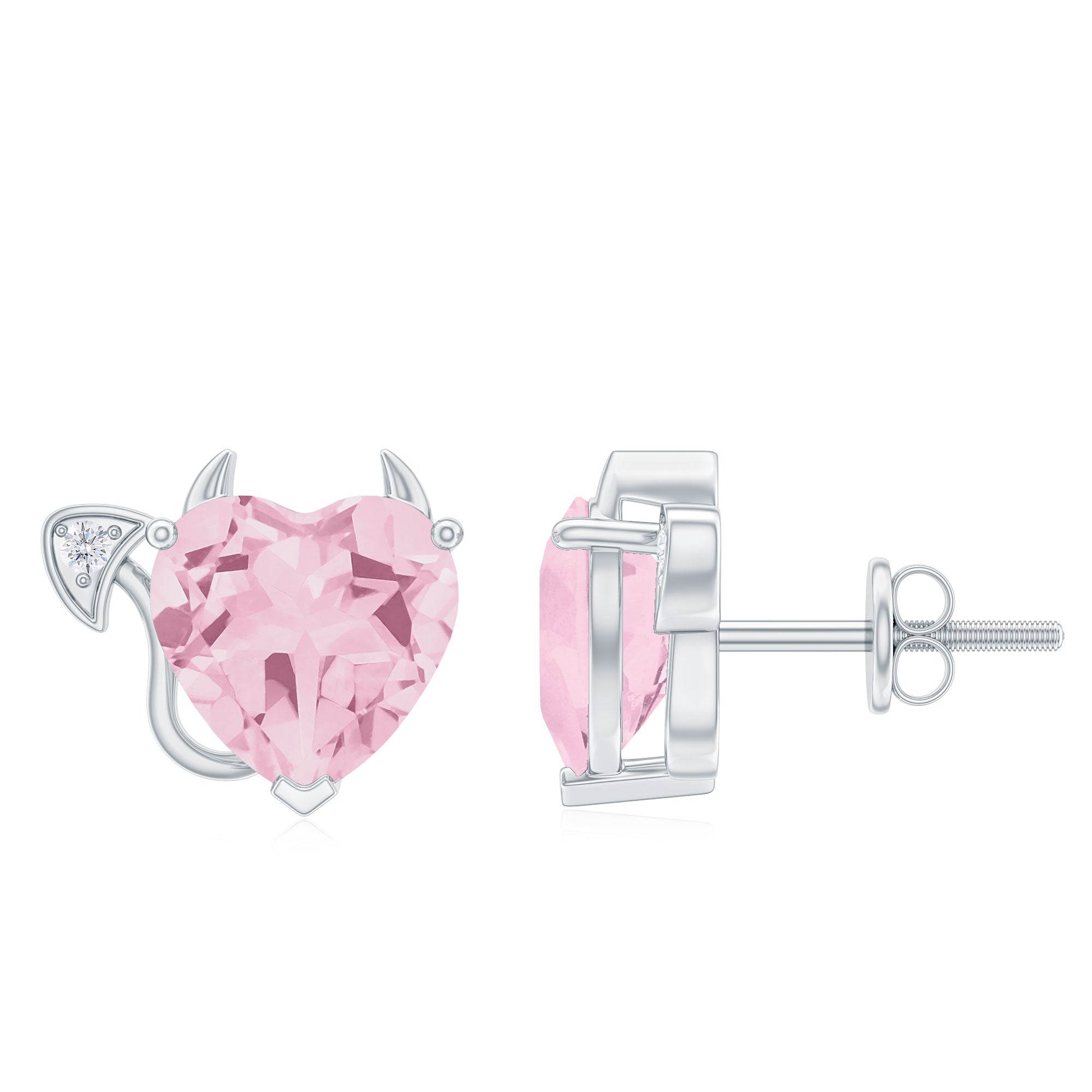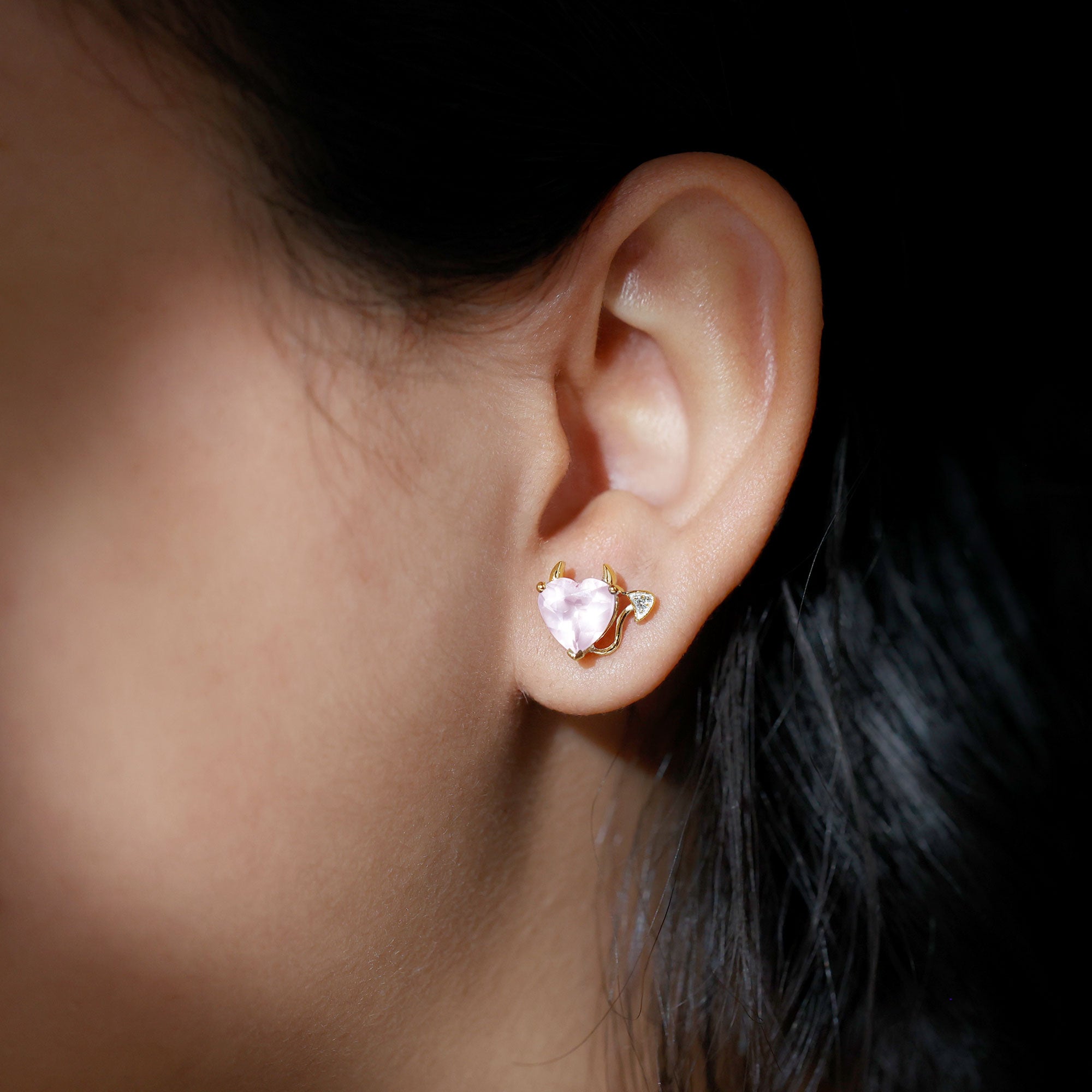 Natural Pink Rose Quartz Devil Earrings With Moissanite