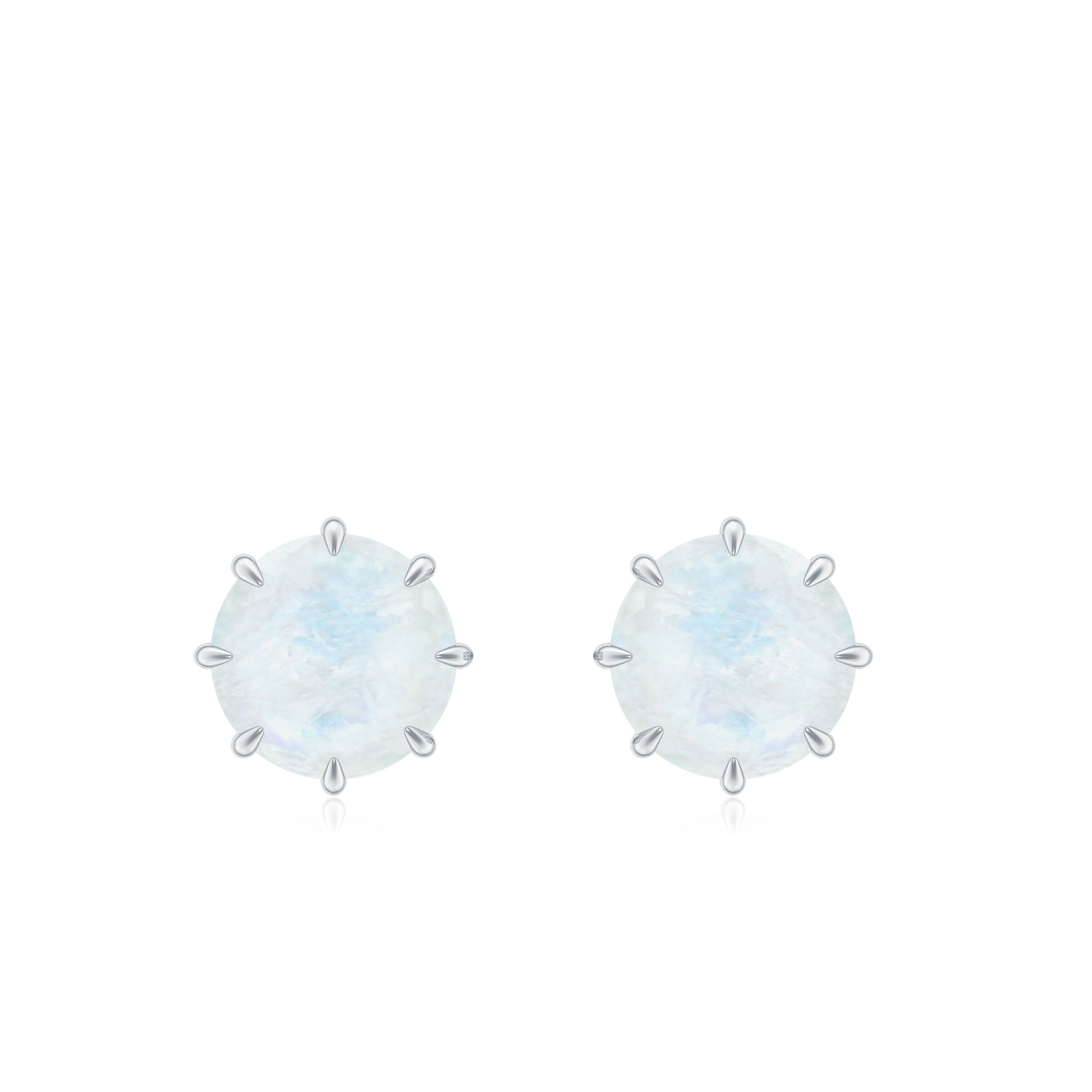 4.5 MM Natural Moonstone Solitaire Stud Earrings in 8 Claw Prong Setting
