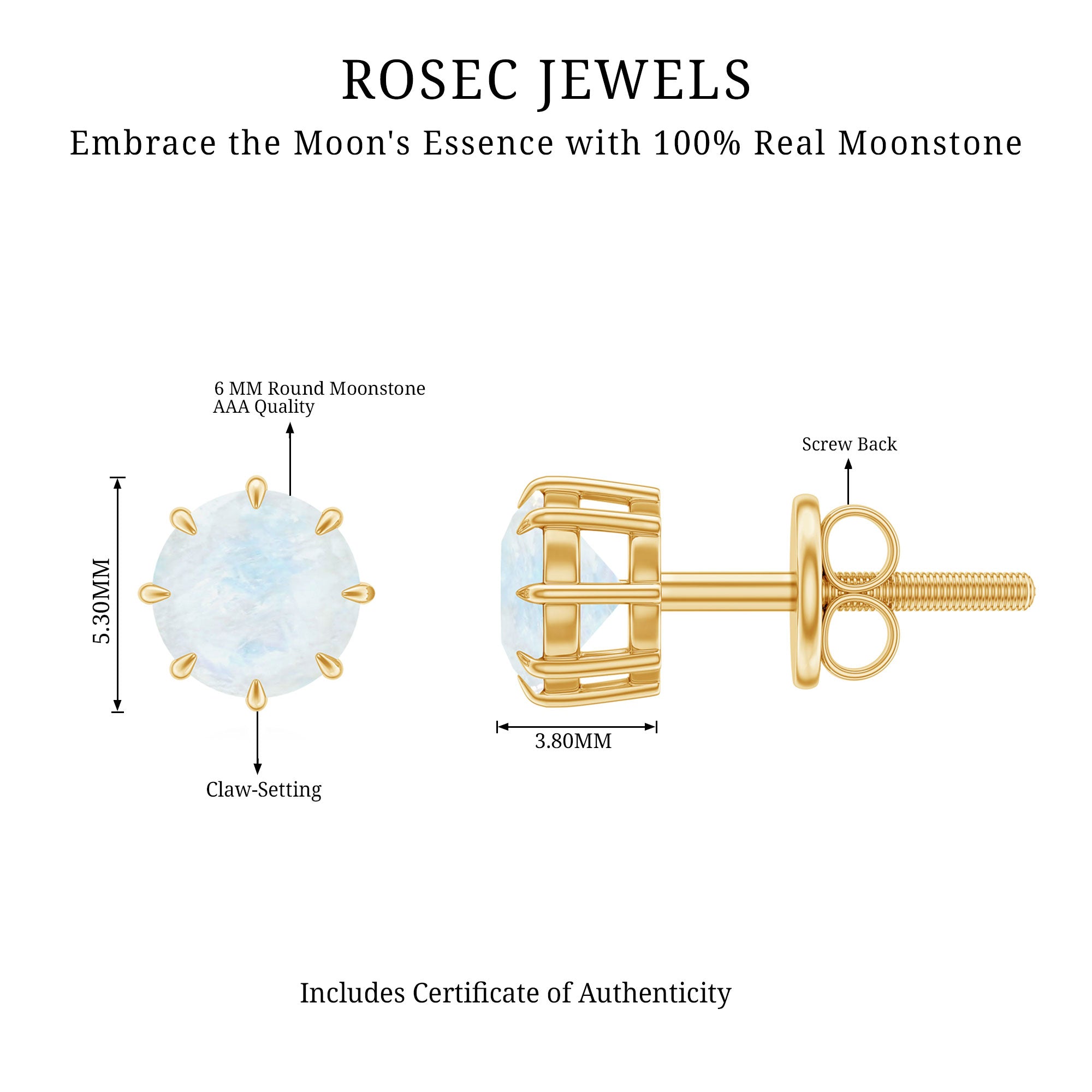 Whether it is New Year Party or Everyday dressing, this Stud Earrings fits with every look. These Earrings embellished with Round Cut Moonstone set as Solitaire in 8 Claw Prong Setting. These Screw Back Earring are composed by Solid Gold.