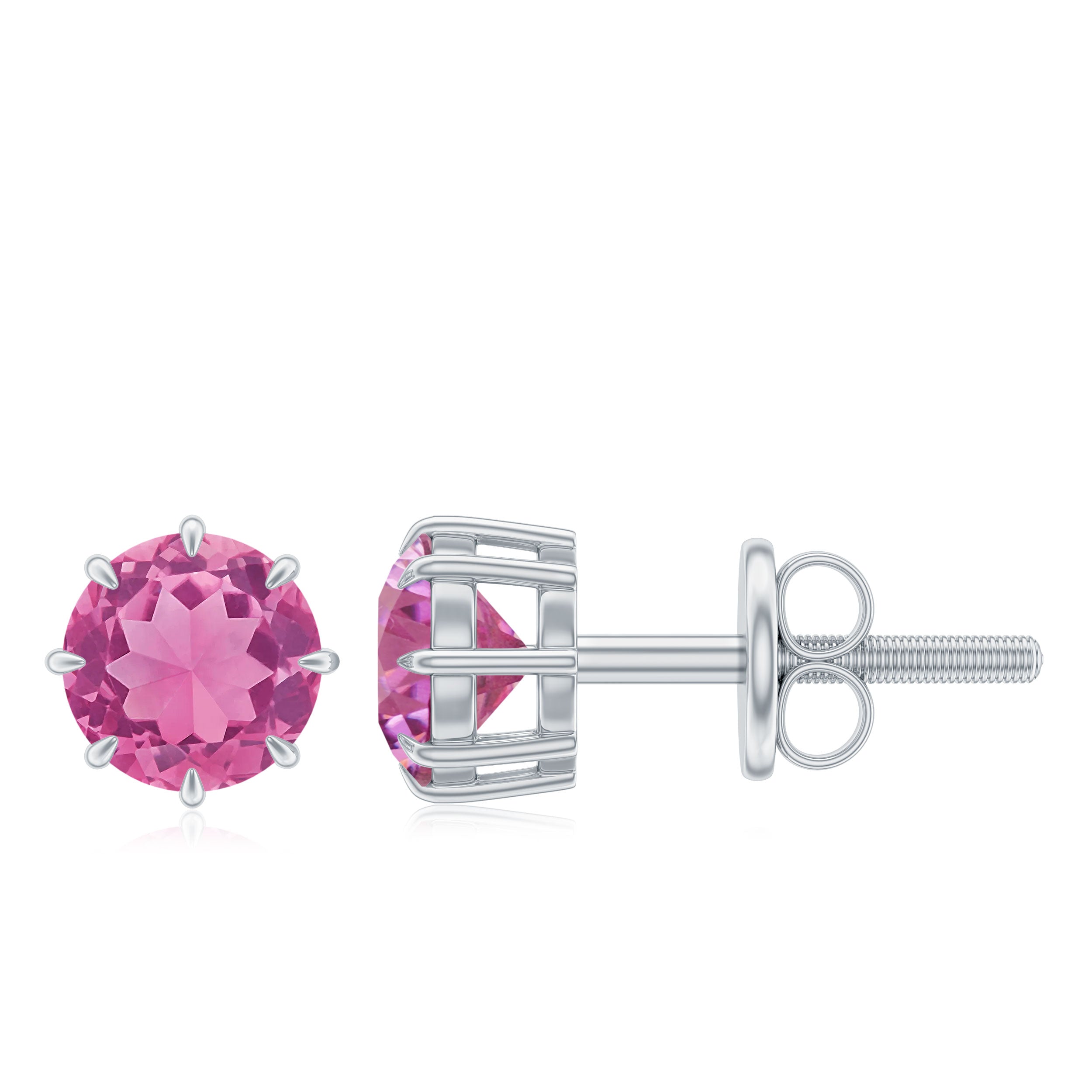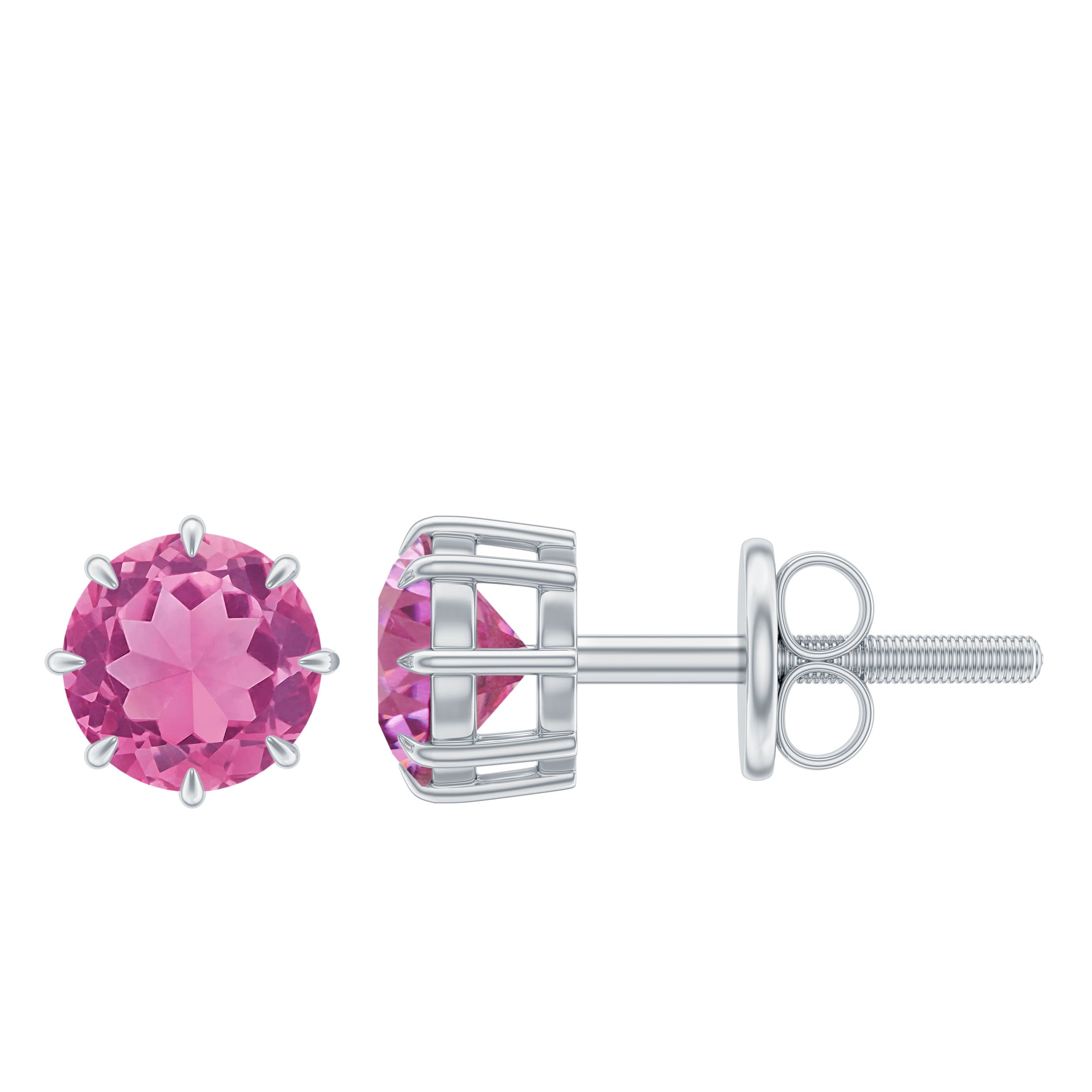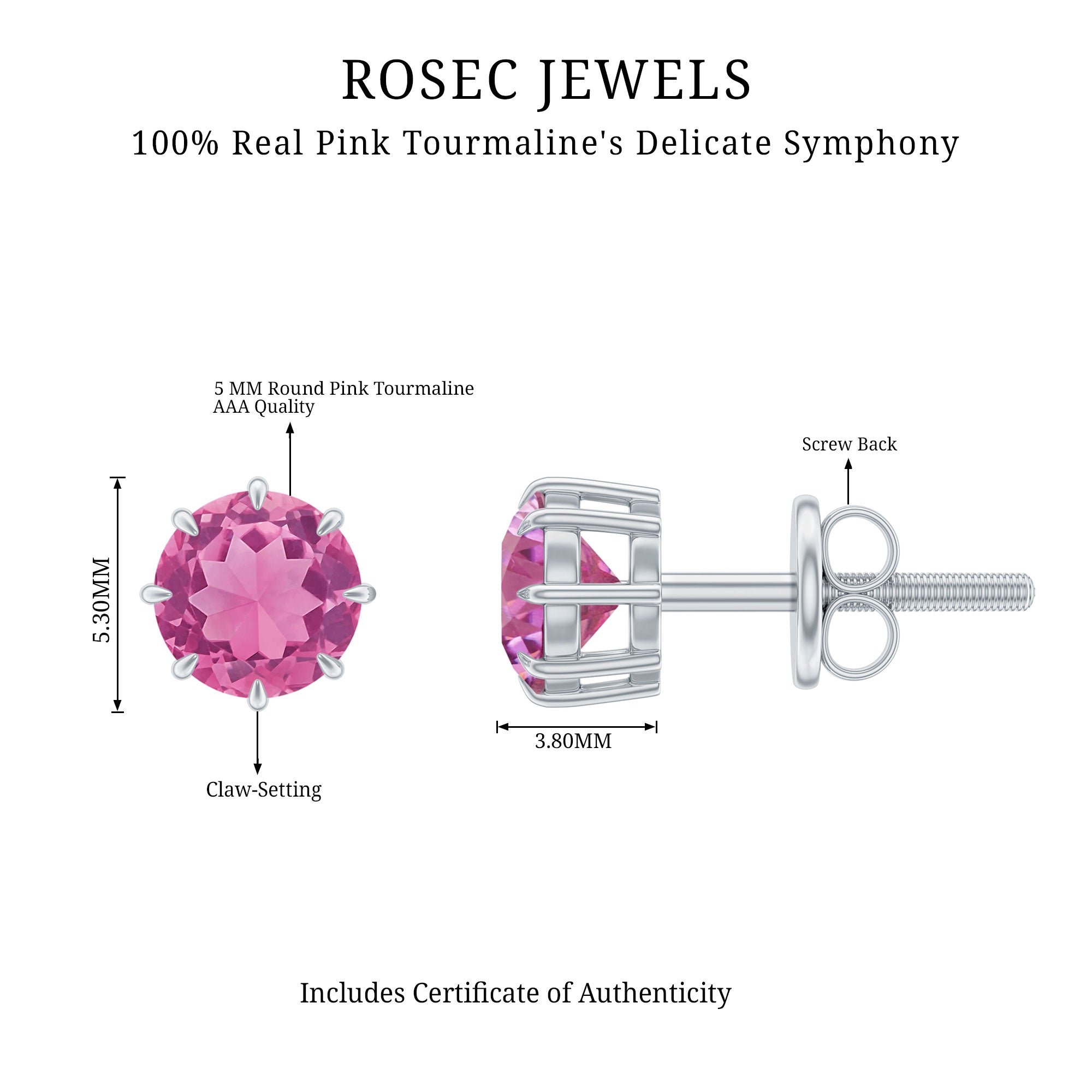 4.5 MM Natural Pink Tourmaline Solitaire Stud Earrings in 8 Claw Prong Setting