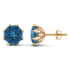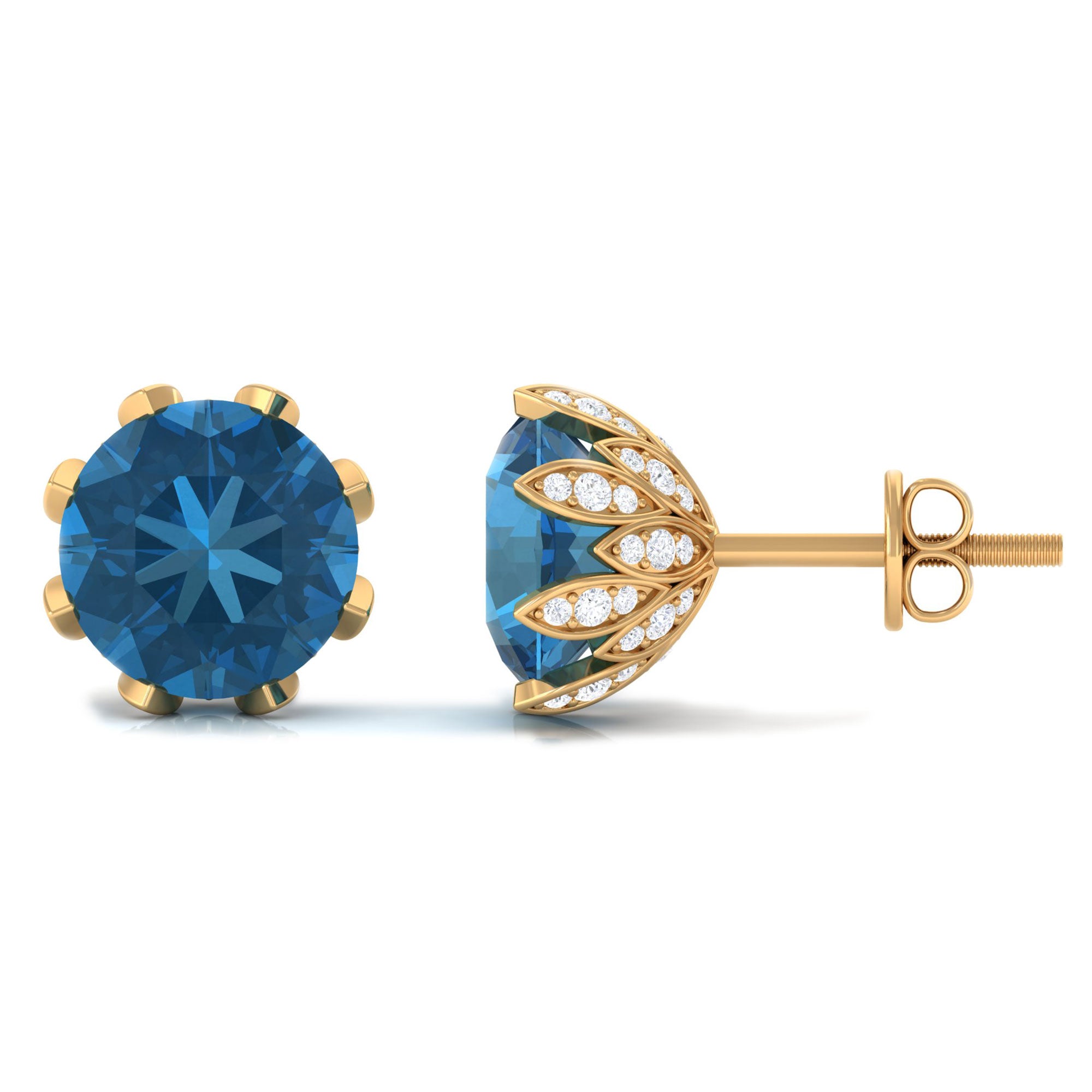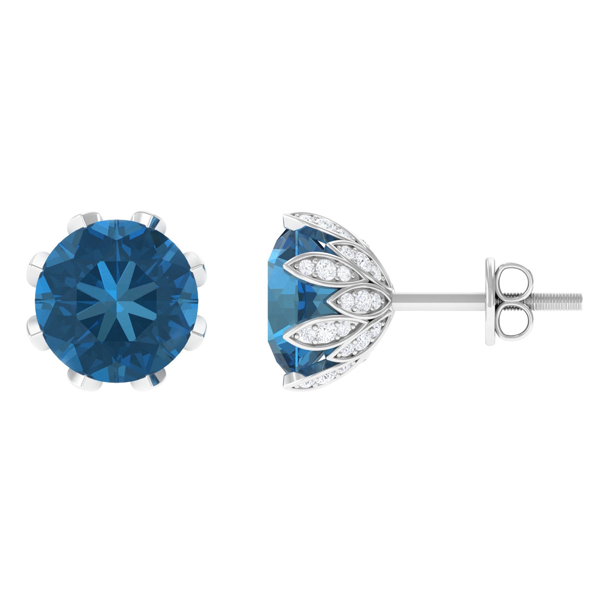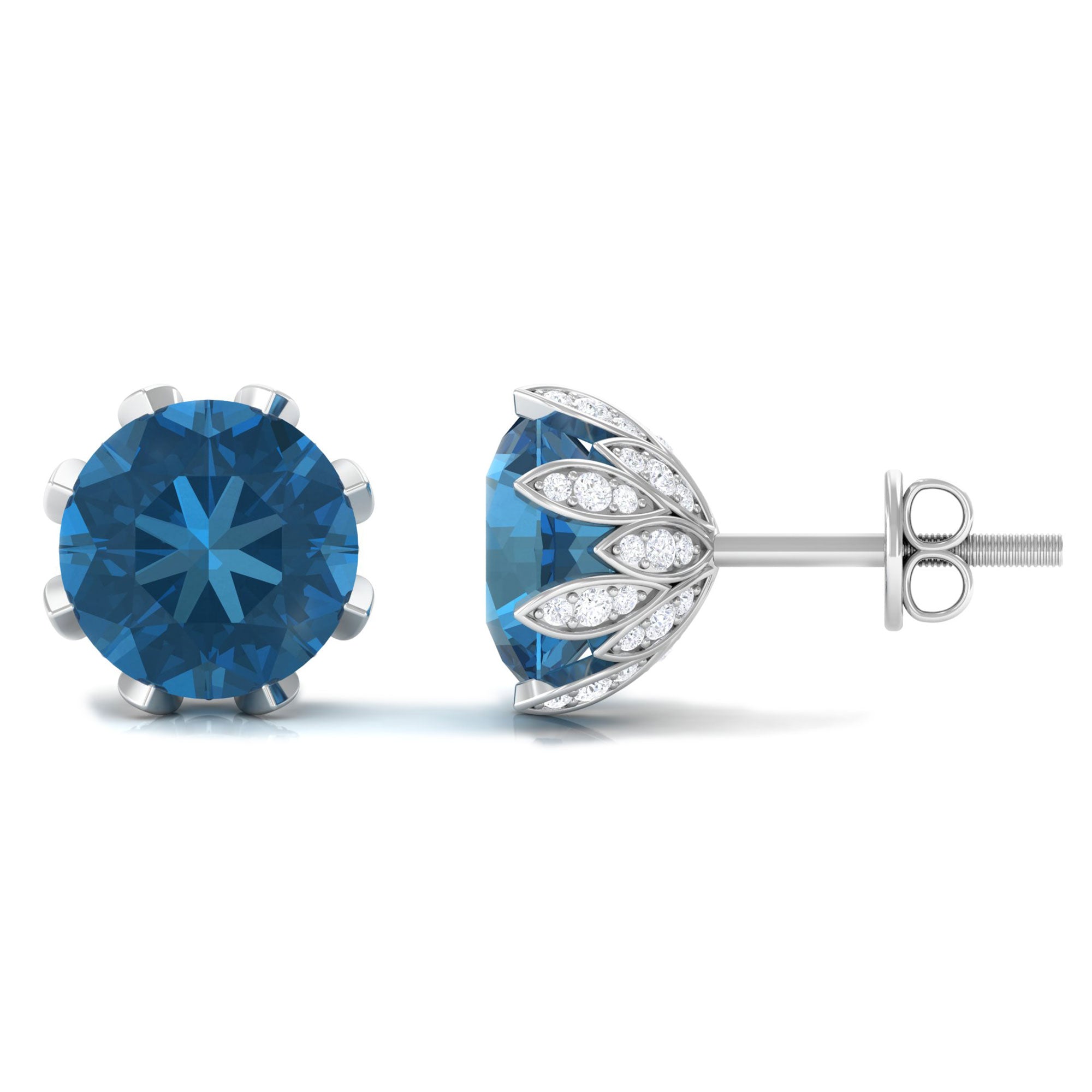 Jewelry has the power to be the one little thing that makes you feel unique. These Solitaire Earrings are embellished with Round Shape London Blue Topaz and Diamond in Flower Setting. These London Blue Topaz Earrings are highly customizable and allow you to choose your preferred metal color from the available options. Tell your story by wearing these Designer Bridal Earrings.
