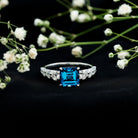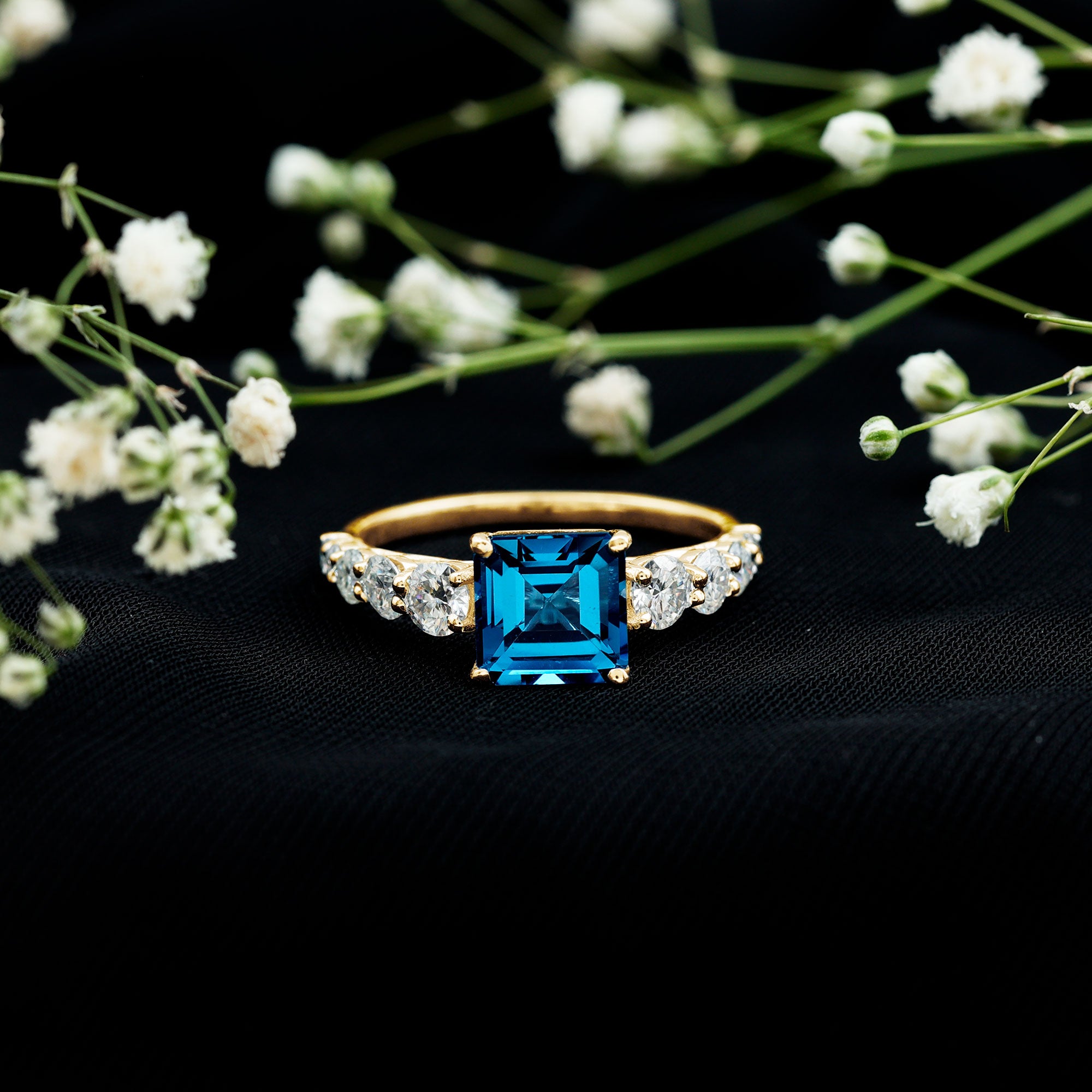 8mm Asscher Cut London Blue Topaz Solitaire Engagement Ring with Moissanite