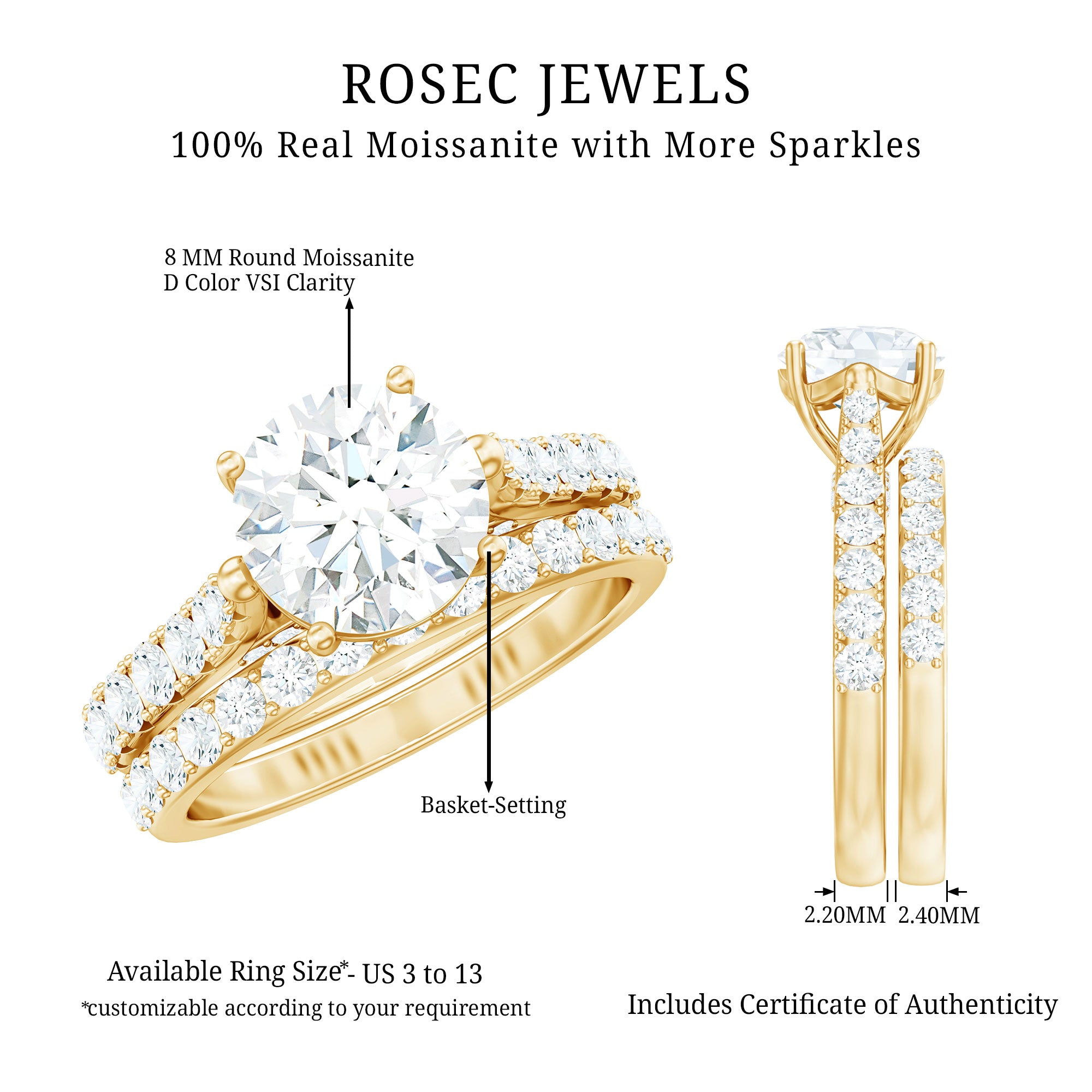 4 CT Moissanite Solitaire Engagement Ring Set With Eternity Band