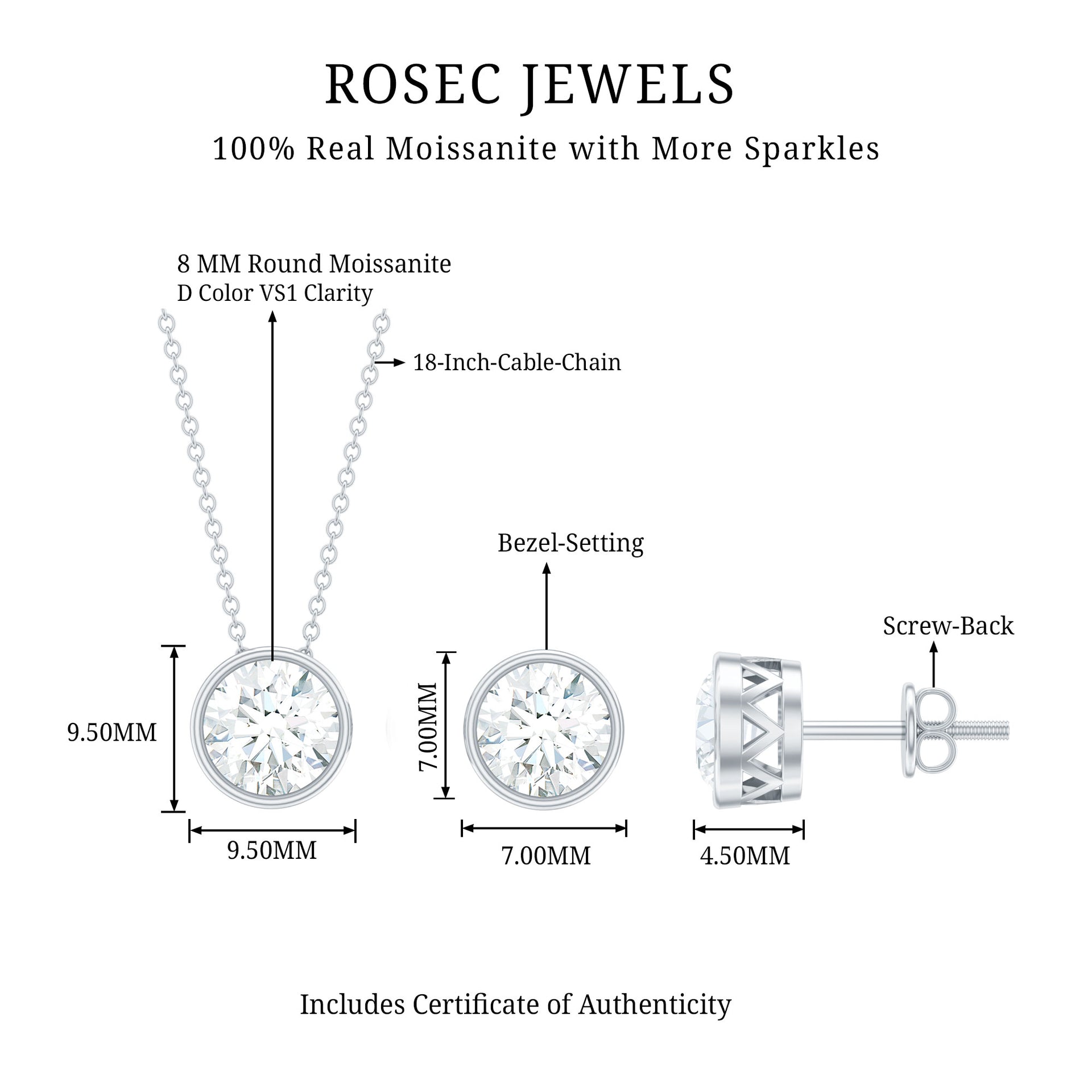 4 CT Simple Moissanite Solitaire Jewelry Set in Bezel Setting