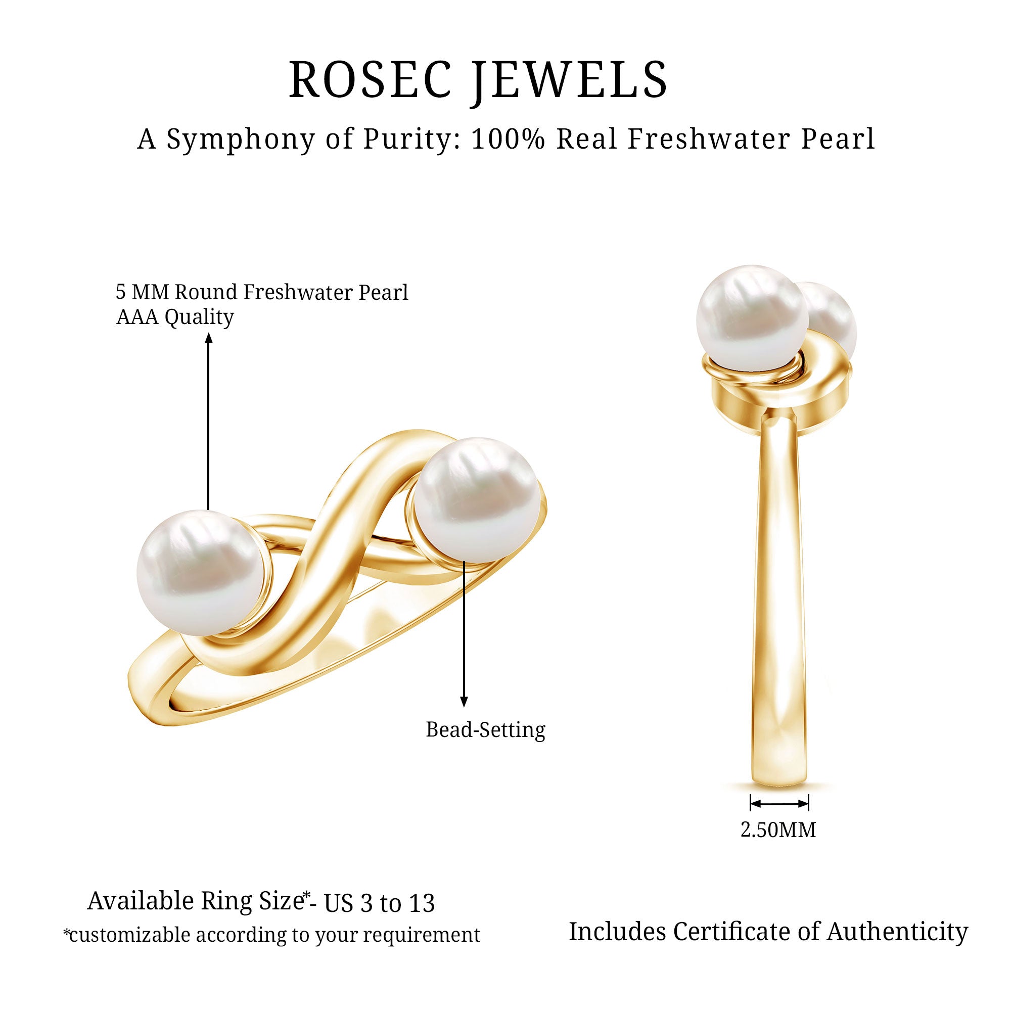 4 CT Toi et Moi Freshwater Pearl Infinity Gold Ring