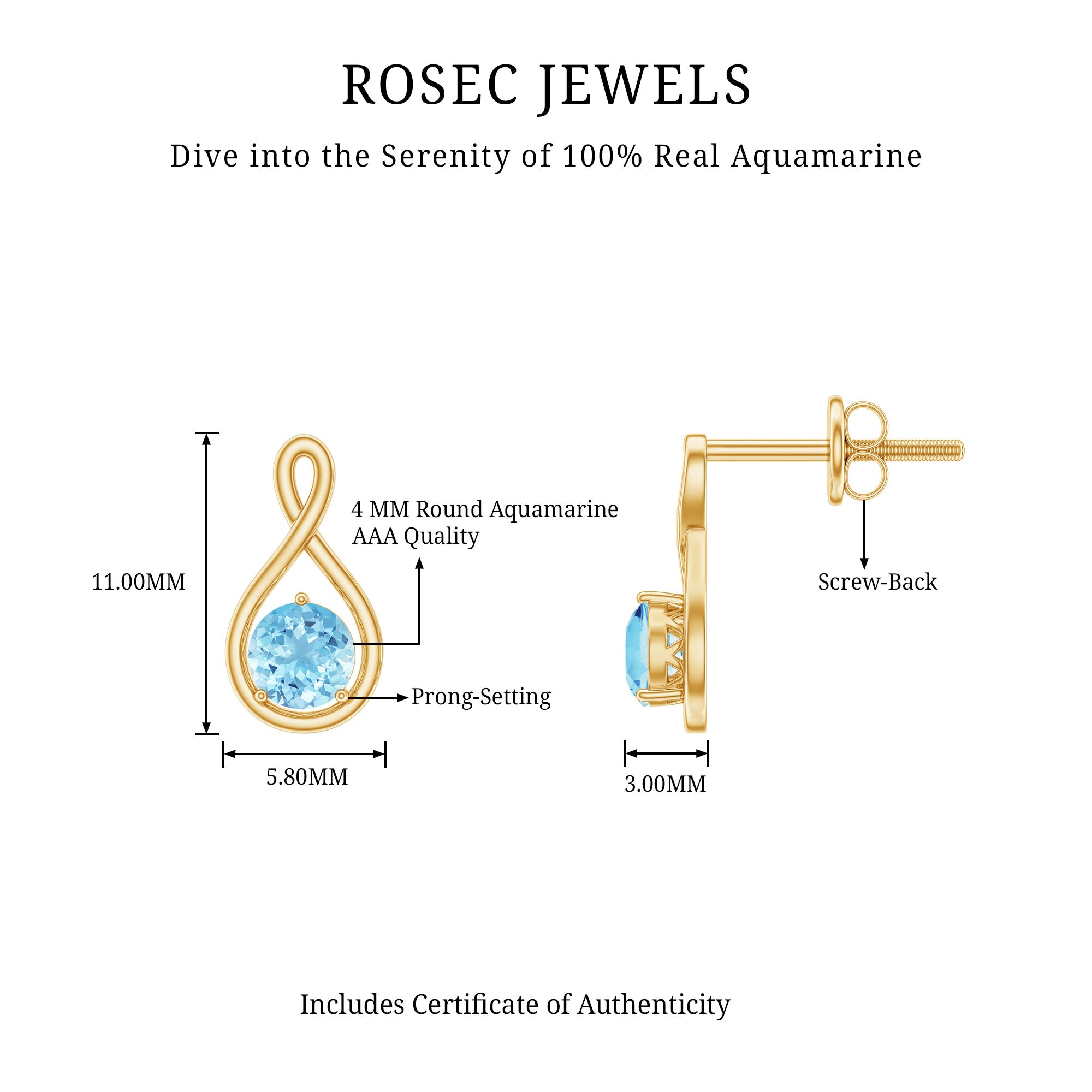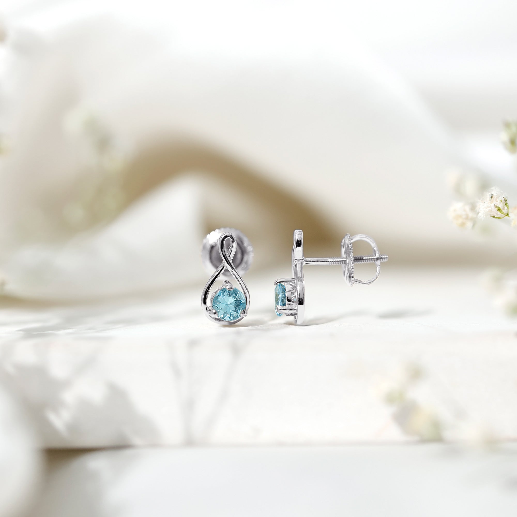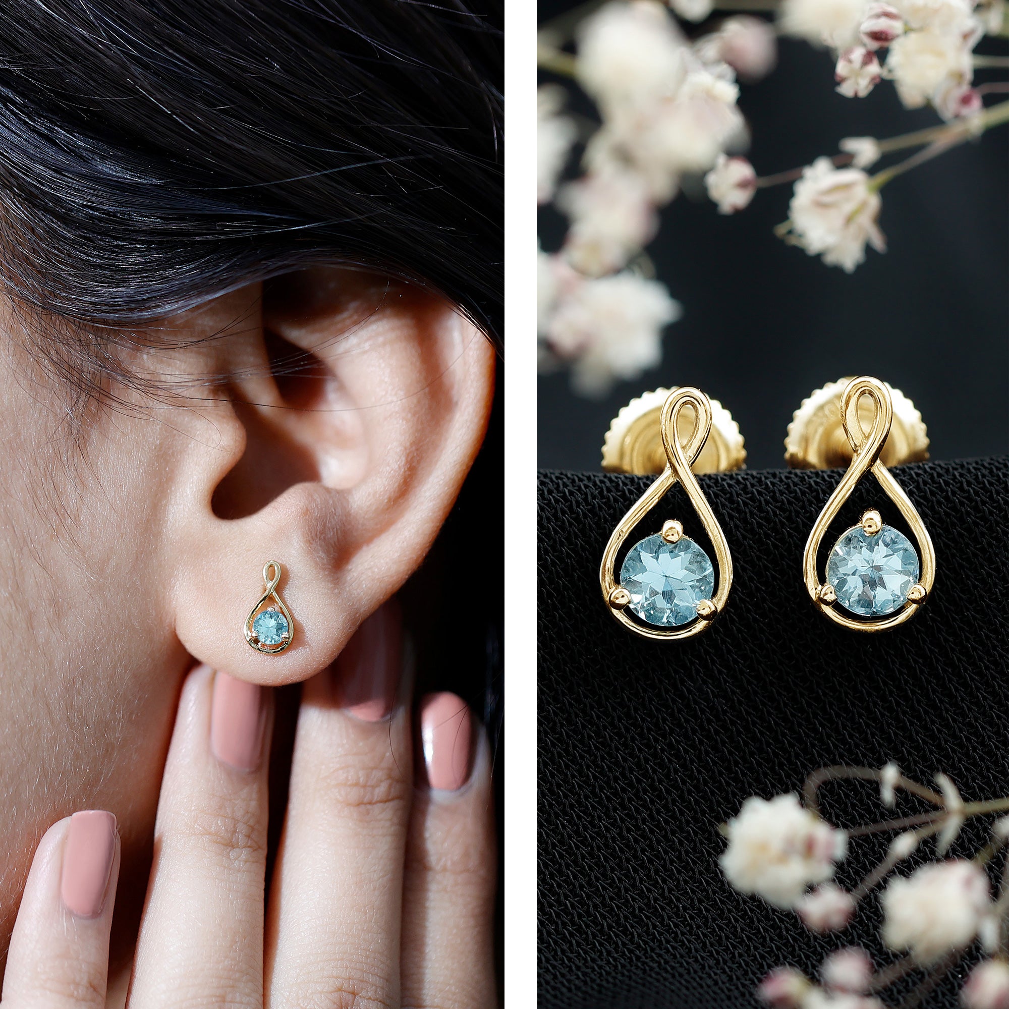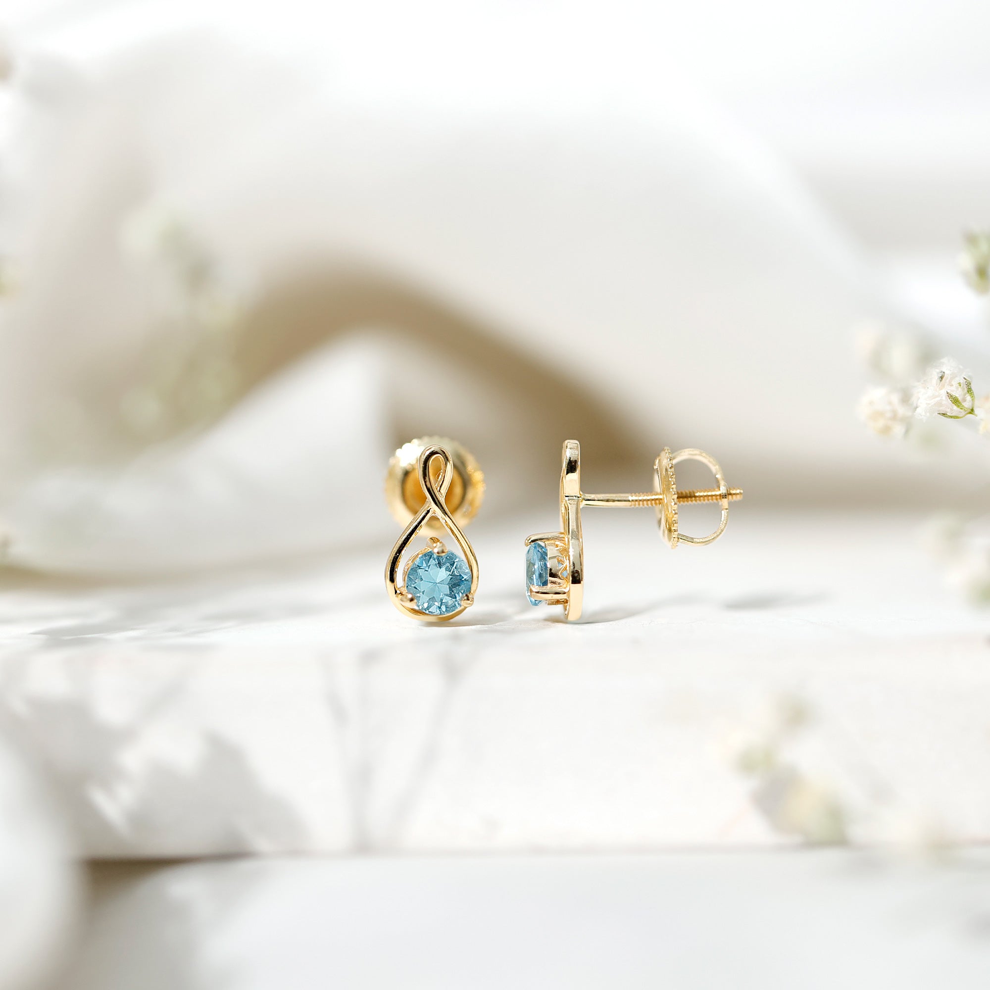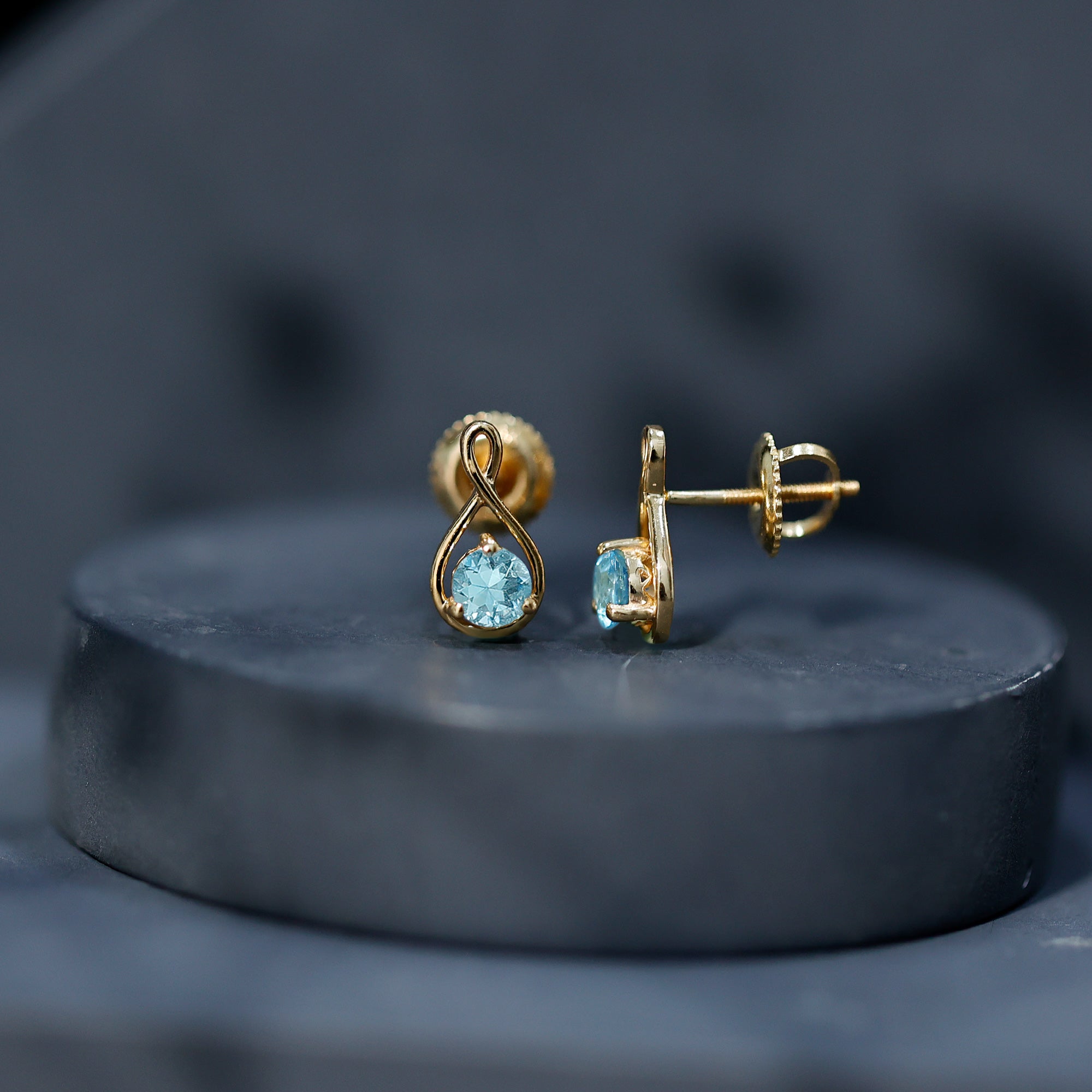4 MM Aquamarine Solitaire and Gold Infinity Stud Earrings