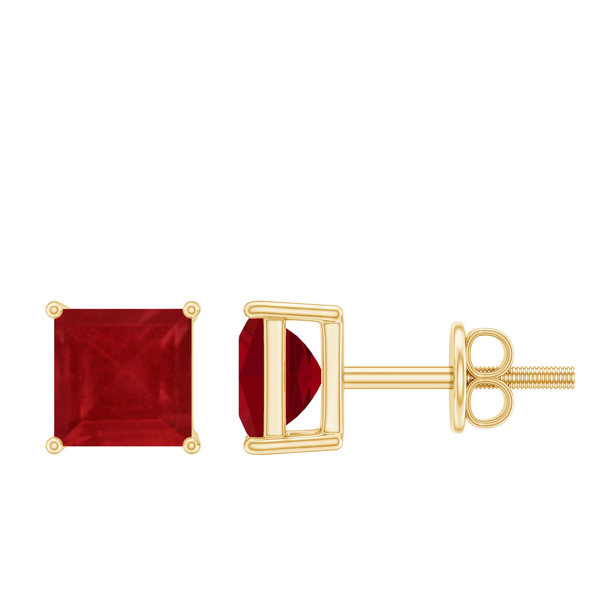 This Classic Solitaire Stud Earrings embellished with Princess Cut Ruby Gemstone is set as Solitaire in a Prong Setting, crafted in a Solid Gold Metal.