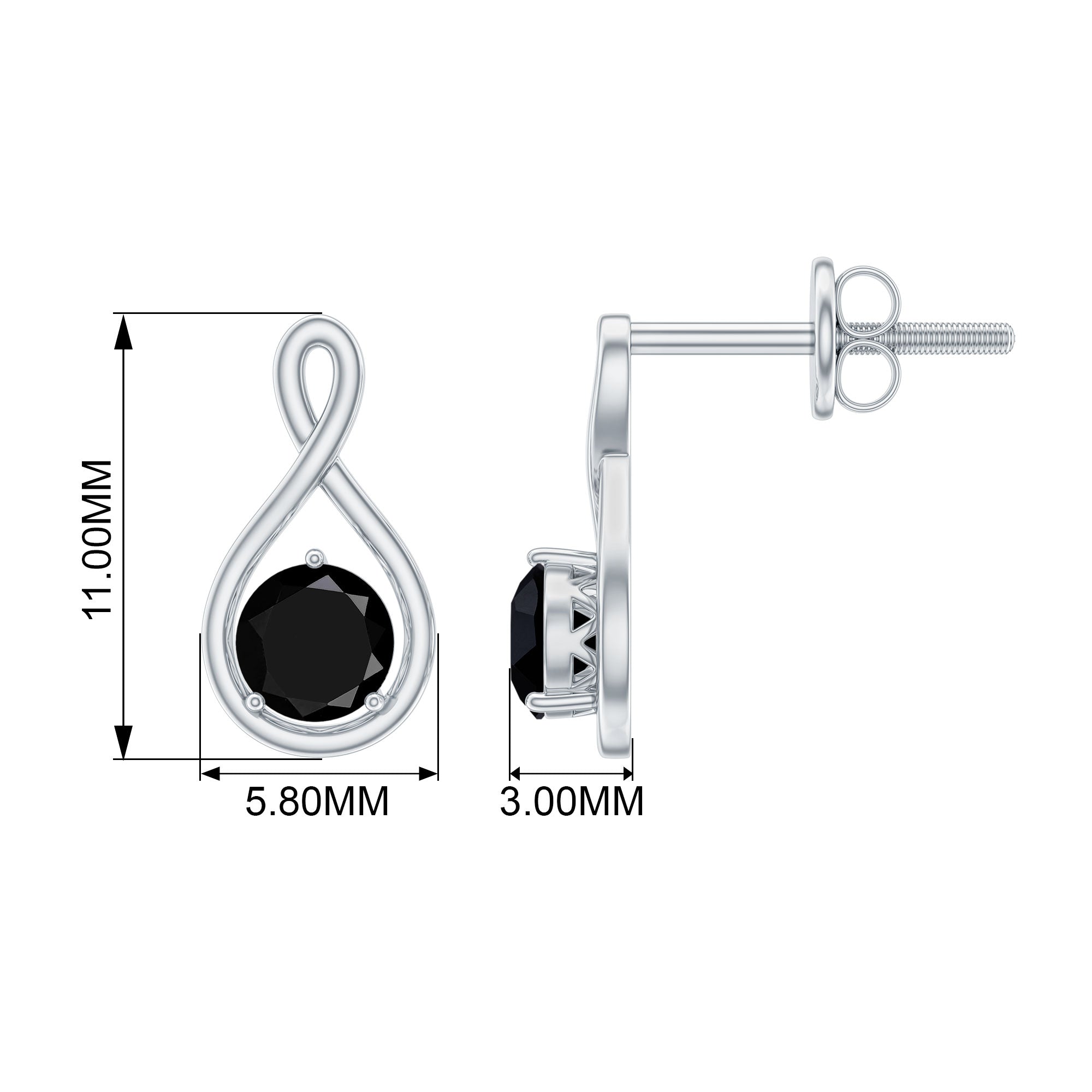 4 MM Created Black Diamond Gold Infinity Stud Earrings