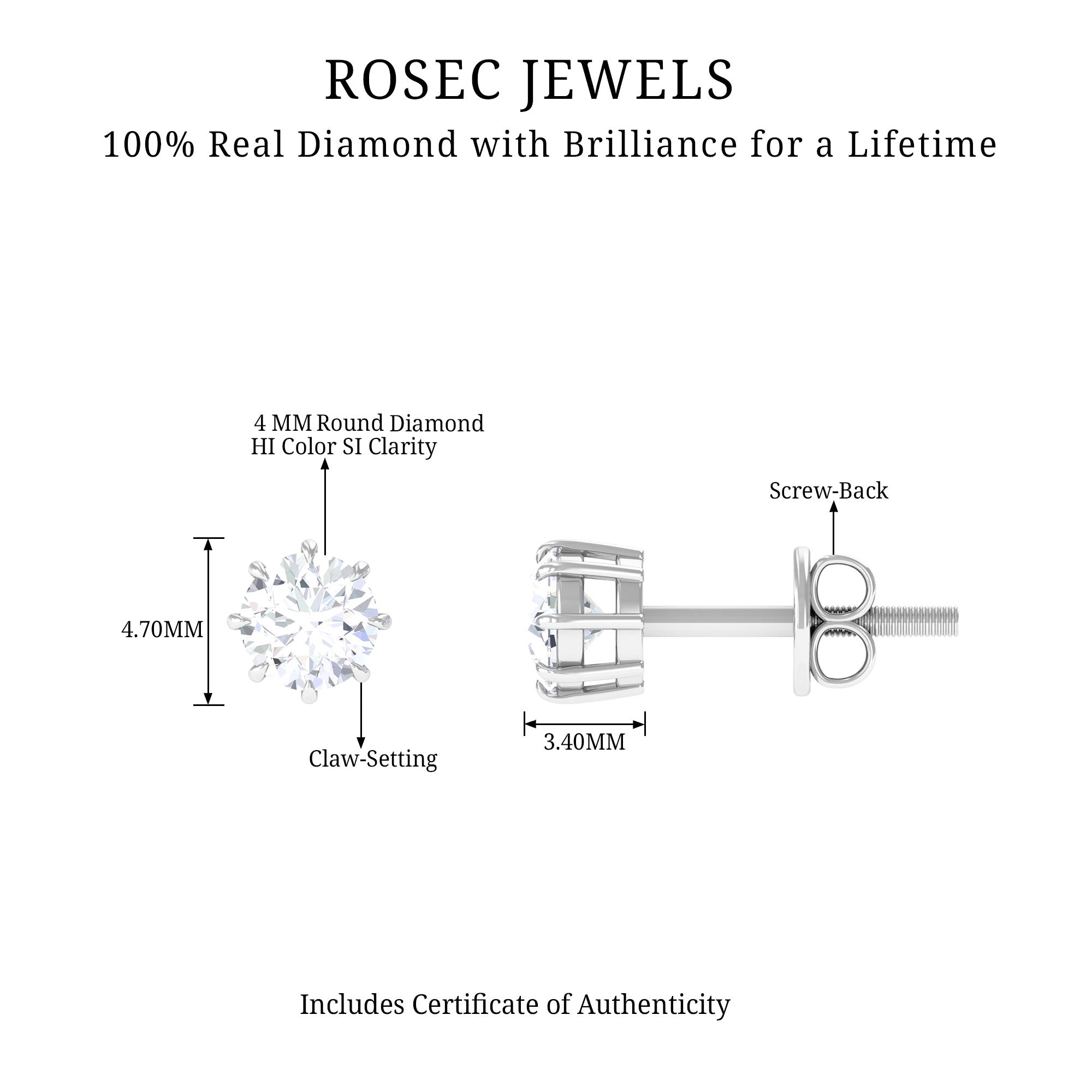 4 MM Natural Diamond Solitaire Stud Earrings in 8 Claw Prong Setting