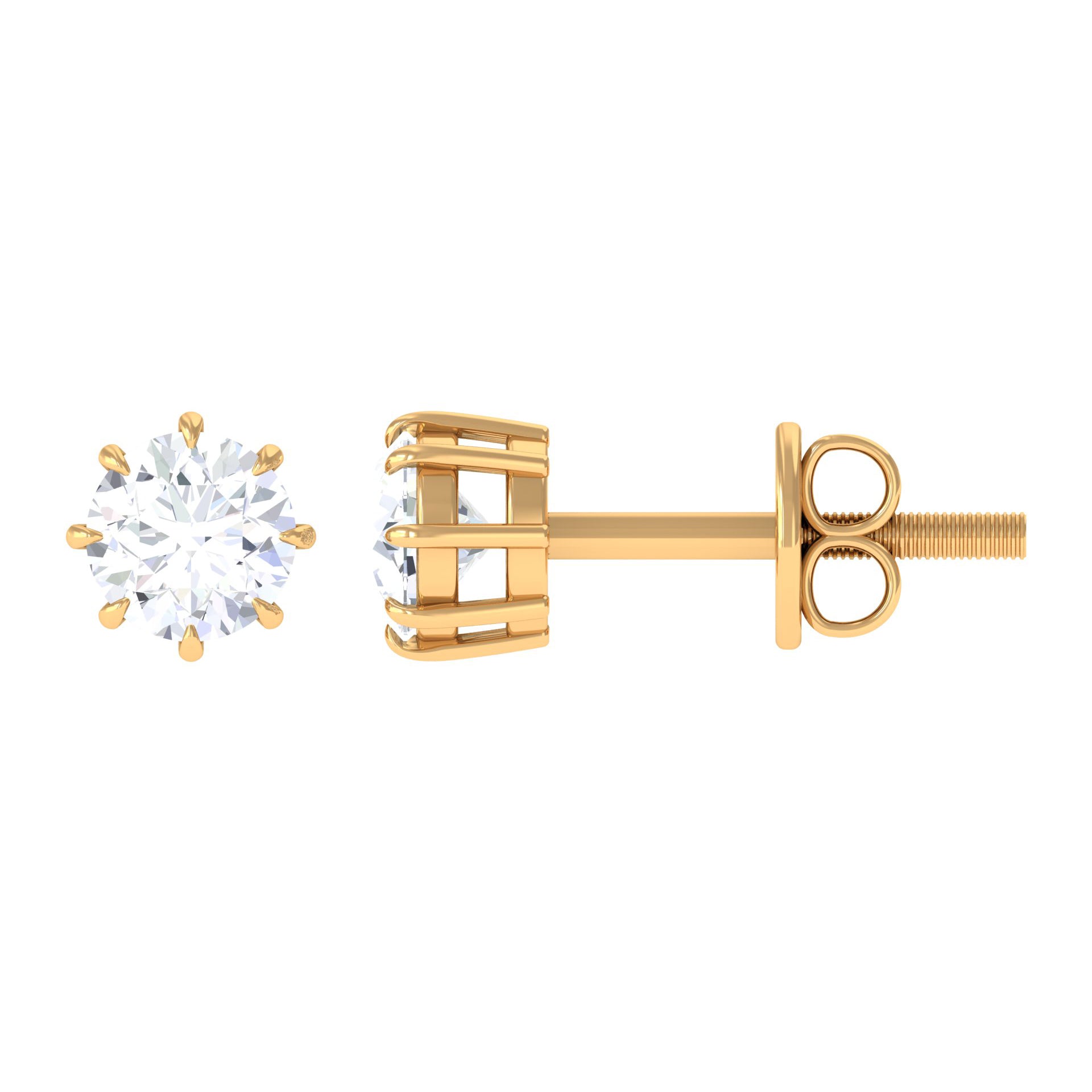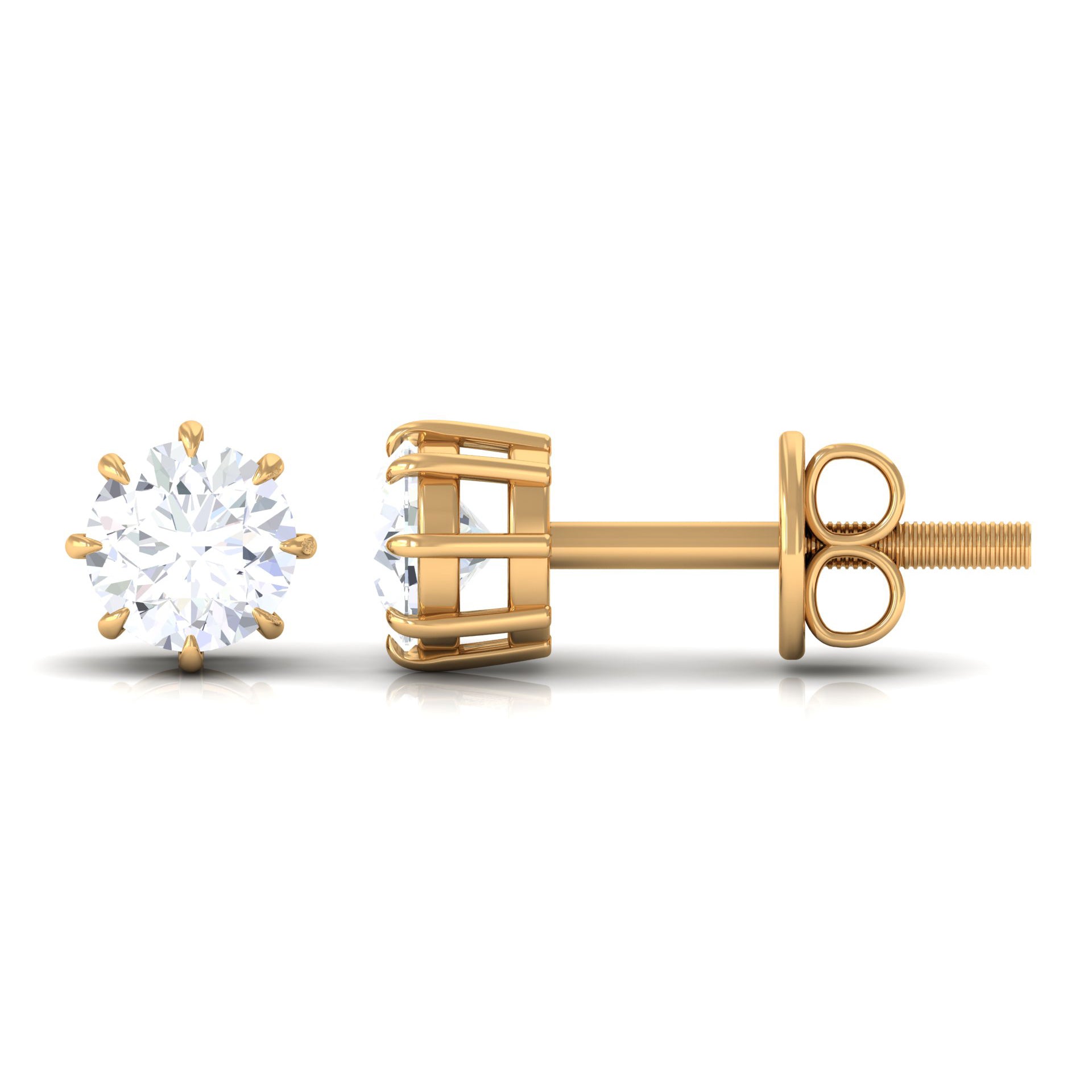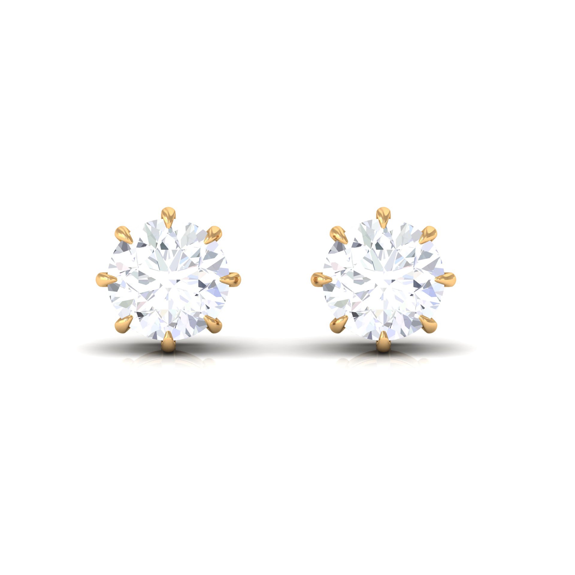 These Solitaire Earrings is Studded with a Round Cut Diamond as Solitaire in 8 Claw Prong Setting, crafted in Solid Gold Metal. These Stud Earrings are an ideal peace of Fine Jewelry for simple and Subtle looks.