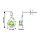The Infinity Pattern Screw Back Finding featured Stud Earrings embellished with 4 MM Round Cut Peridot Gemstone is set as Solitaire in 3 Prong Setting, studded beautifully in the Solid Gold crafted Infinity symbol.