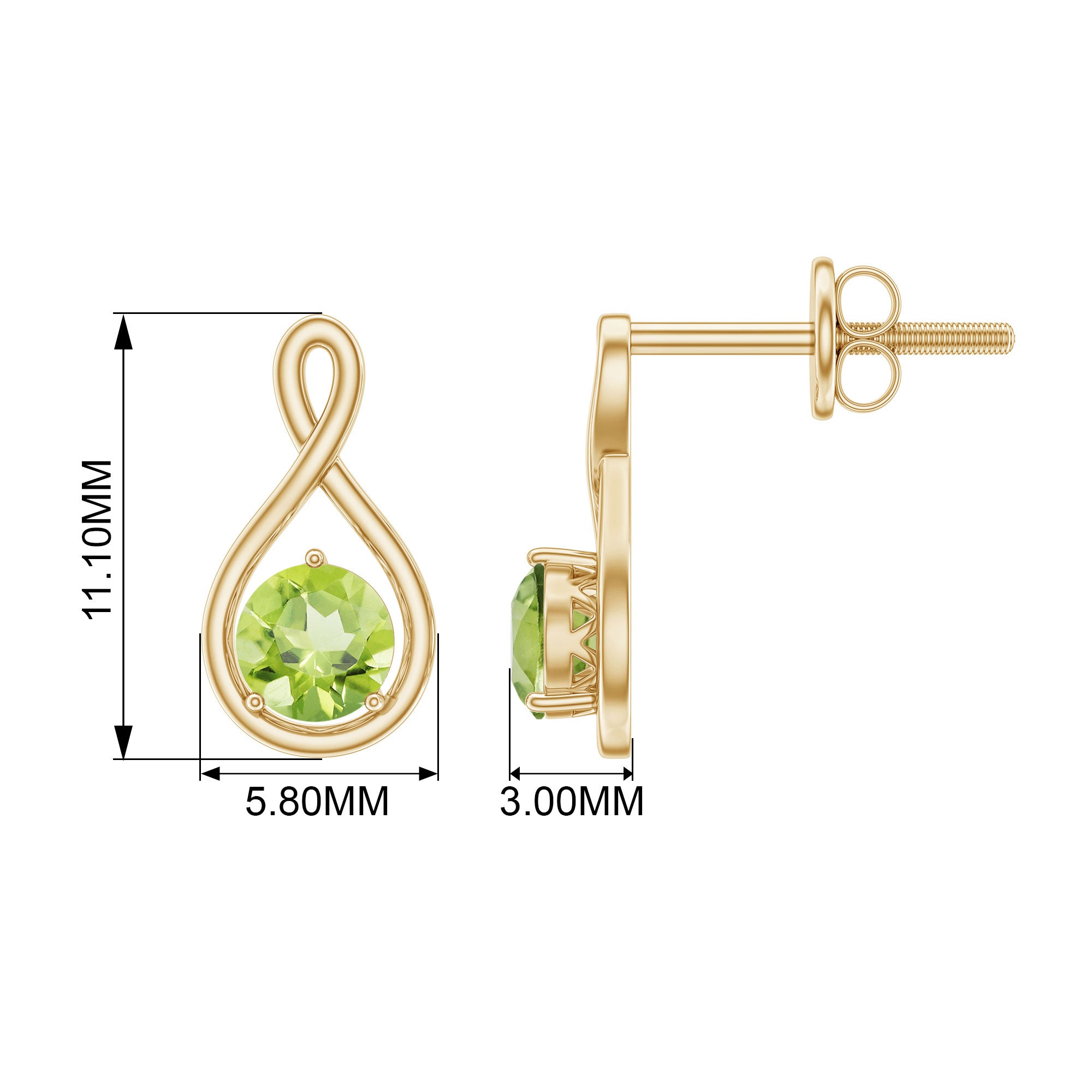 4 MM Peridot Solitaire Gold Infinity Stud Earring