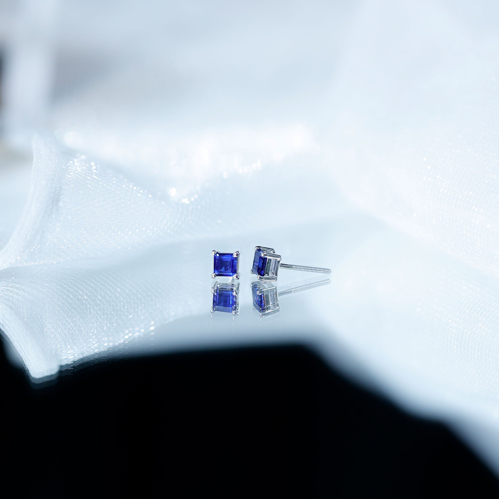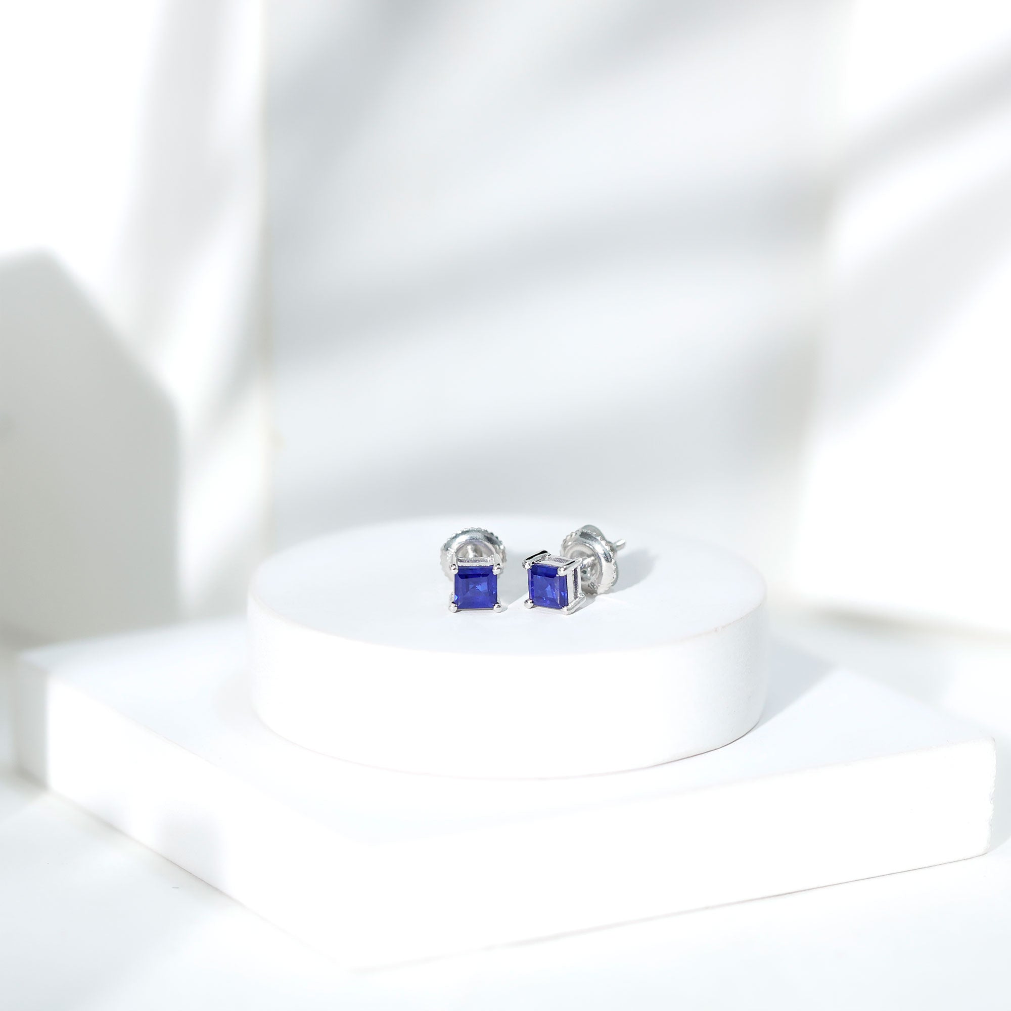 4 MM Princess Cut Blue Sapphire Solitaire Stud Earrings in 4 Prong Setting