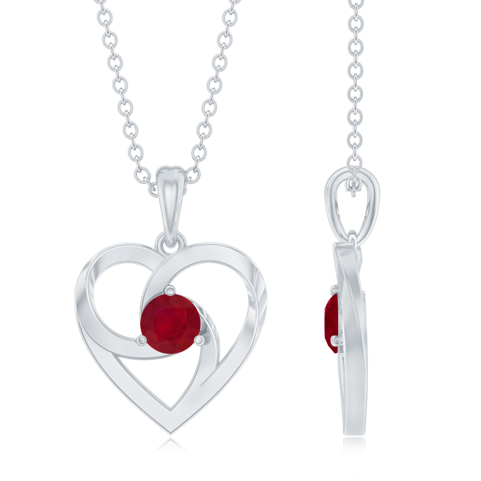 4 MM Round Cut Solitaire Ruby Heart Pendant Necklace