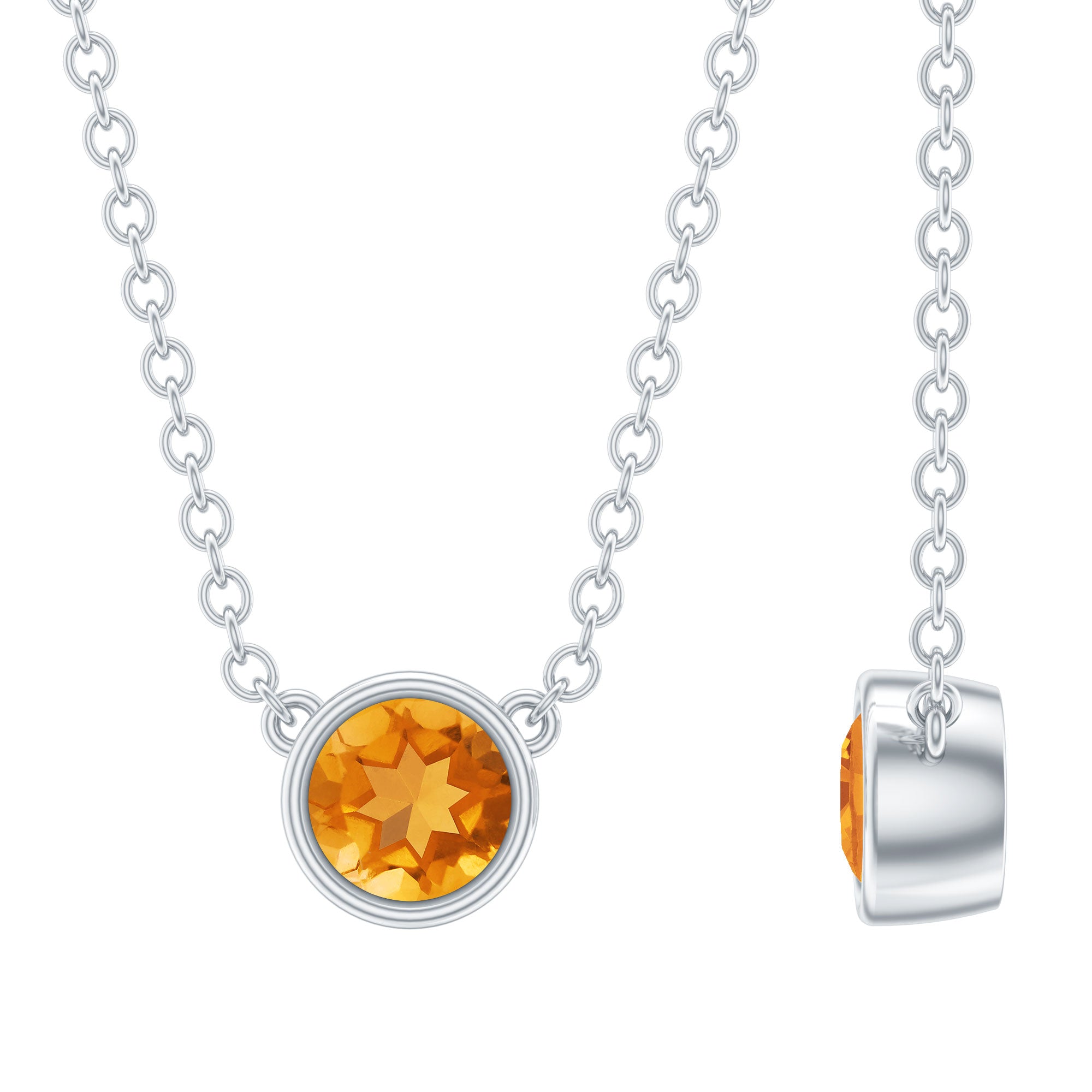Round Shape Citrine Solitaire Necklace in Bezel Setting