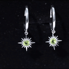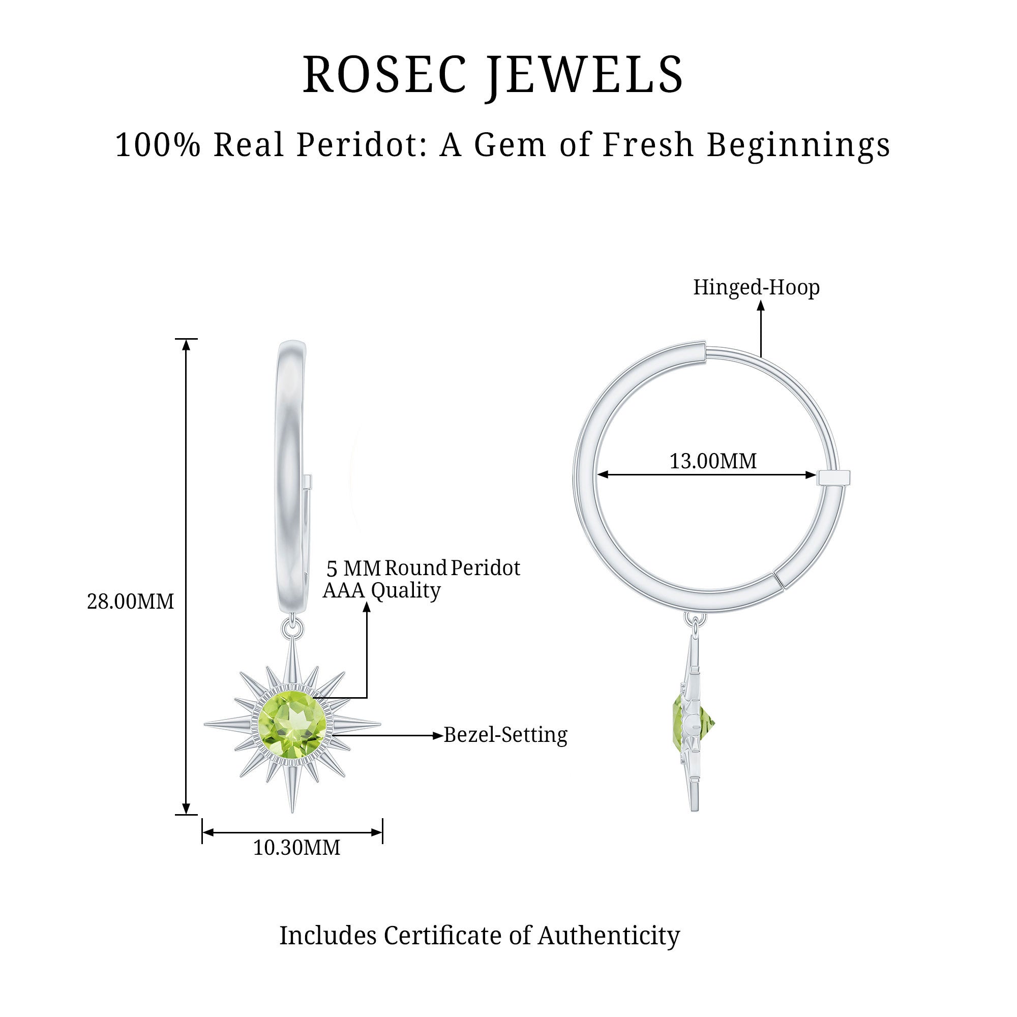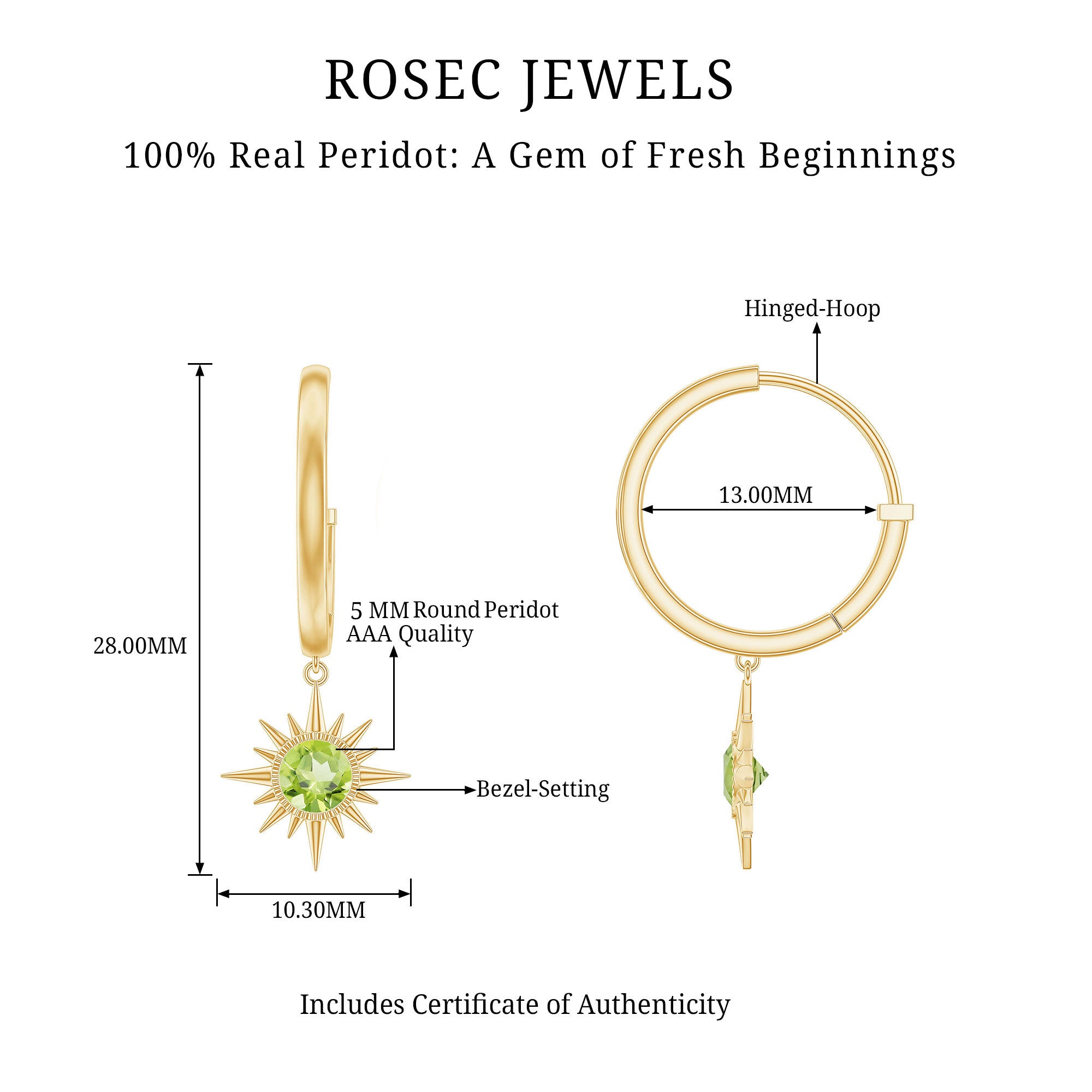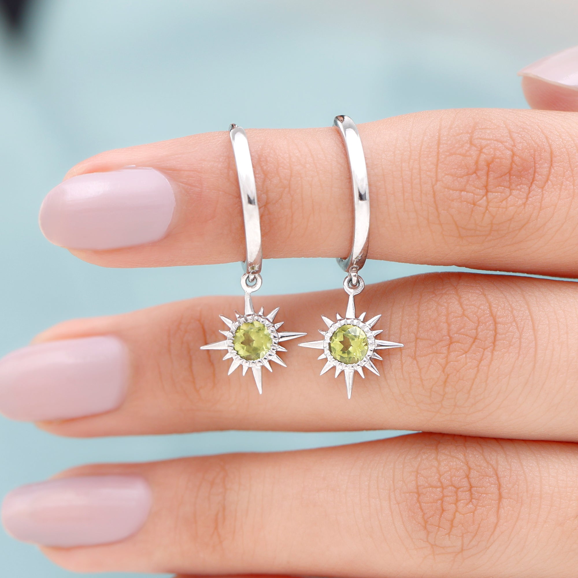 4 MM Round Shape Peridot and Gold Sunburst Hoop Drop Earrings For Women