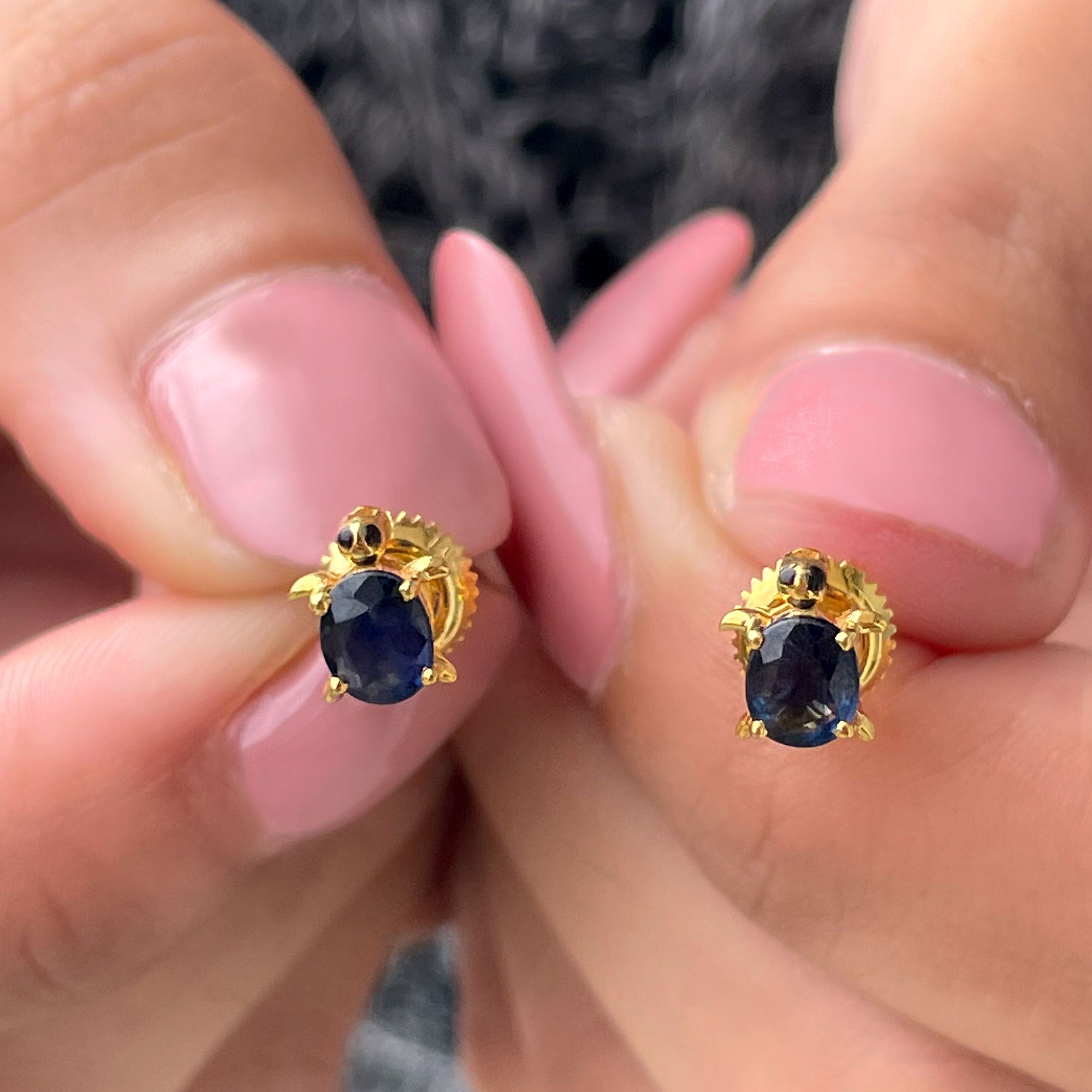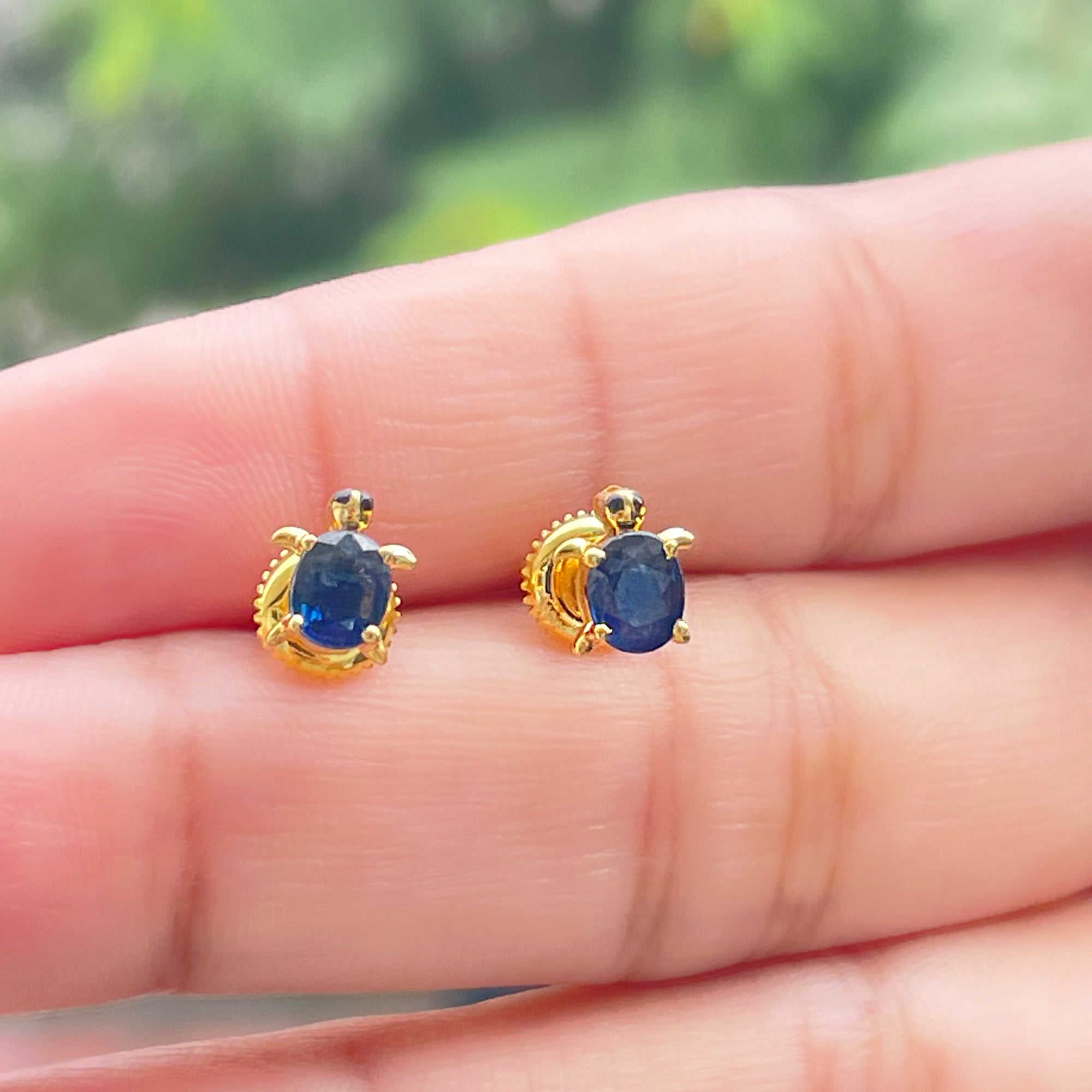 Surprise her with the cute Turtle Stud Earring. Adorned with an Oval Cut Blue Sapphire, this Blue Sapphire Solitaire Stud Earring is a unique and adorable piece for a woman. Perfect for a special occasion or just to show your love, this earring is sure to bring a smile to her face. With its charming design, this stud earring is a wonderful present that she will treasure for years to come. Make her day even more special with the Turtle Stud Earring.