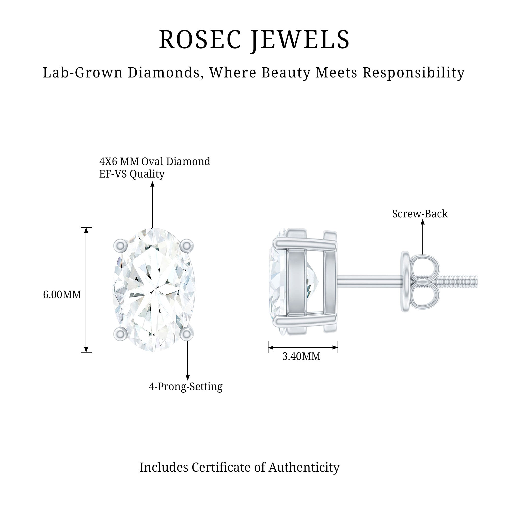 4X6 MM Oval Shaped Lab Grown Diamond Solitaire Stud Earrings
