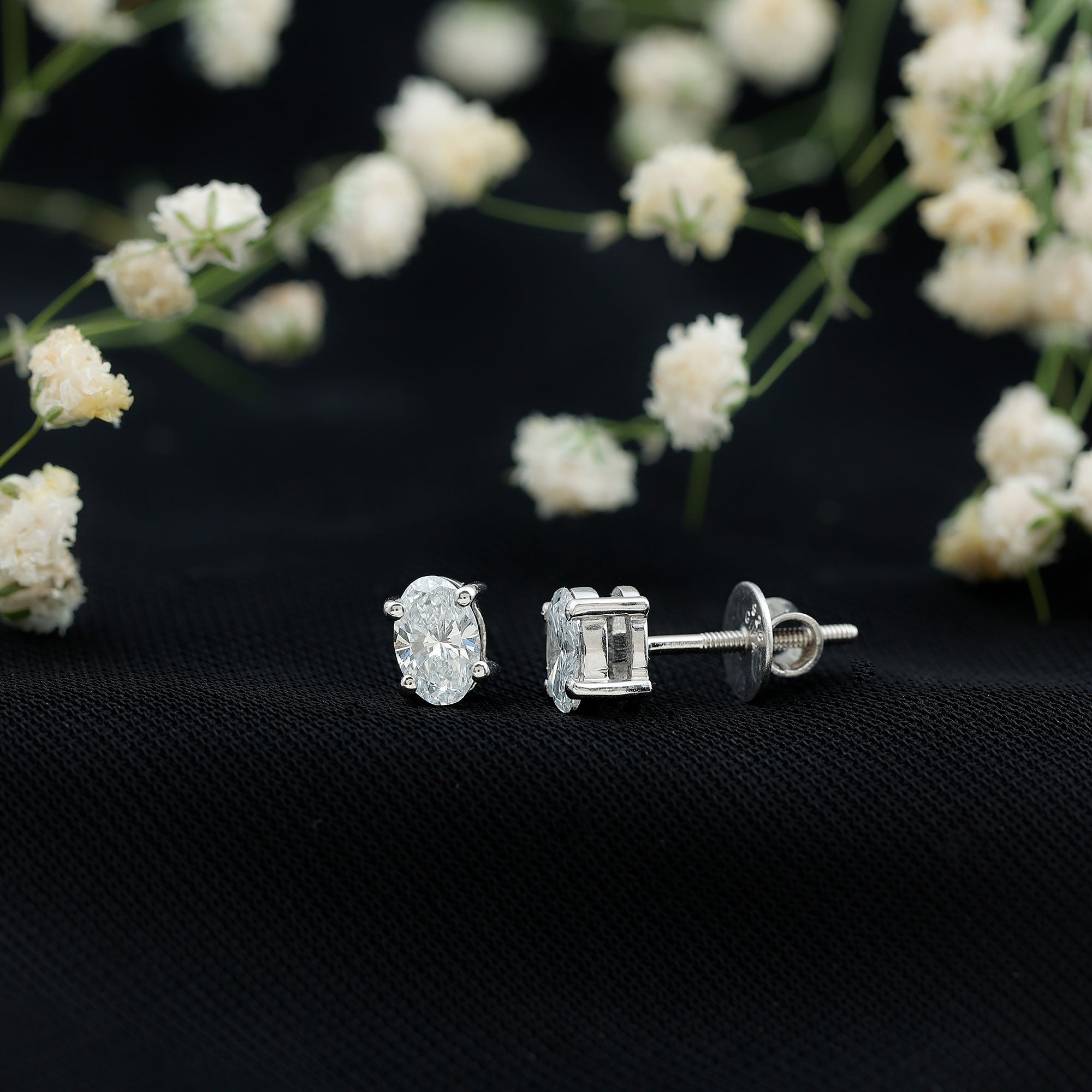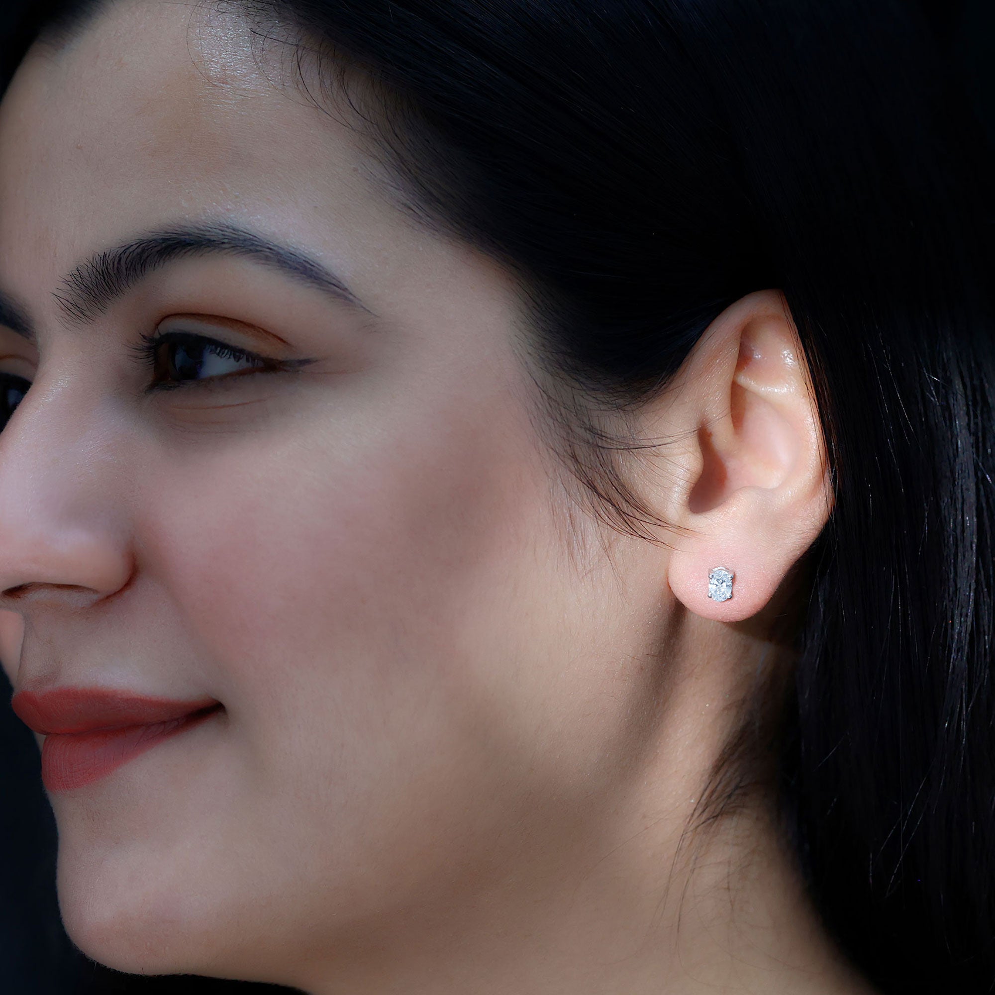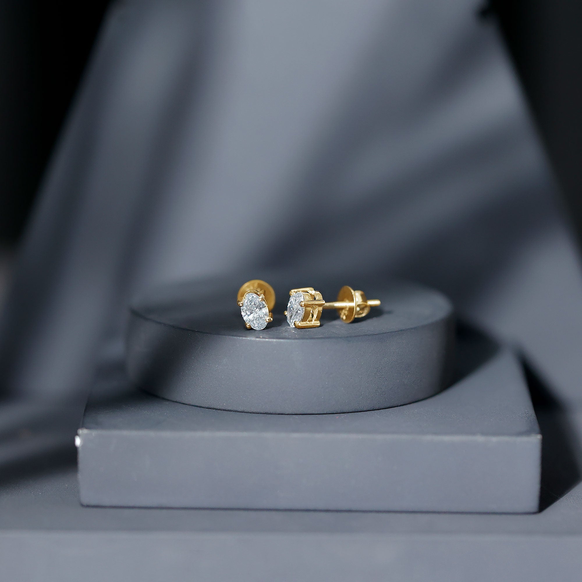 Classic, elegant, and stunning - these beautifully crafted Single Diamond Stud Earrings are an ideal investment for any woman who appreciates timeless, subtle designs. This gorgeous pair of Man Made Diamond Earrings showcases how classic oval cuts can enhance your daily style. Expertly crafted and featuring a careful selection of EF color VS clarity lab-grown diamonds, each earring demonstrates exceptional craftsmanship. These Solitaire Studs are designed with 4X6 MM oval cut diamonds, chosen for their unparalleled beauty and brilliance. Each stone is securely set in 4 prong setting, reflecting light beautifully with every movement. These Everyday Earrings come with screw back closures for added comfort and safety. Sleek and modern, these Oval Diamond Earrings are always a favored choice for gifting to a loved one on their birthday or a special anniversary.