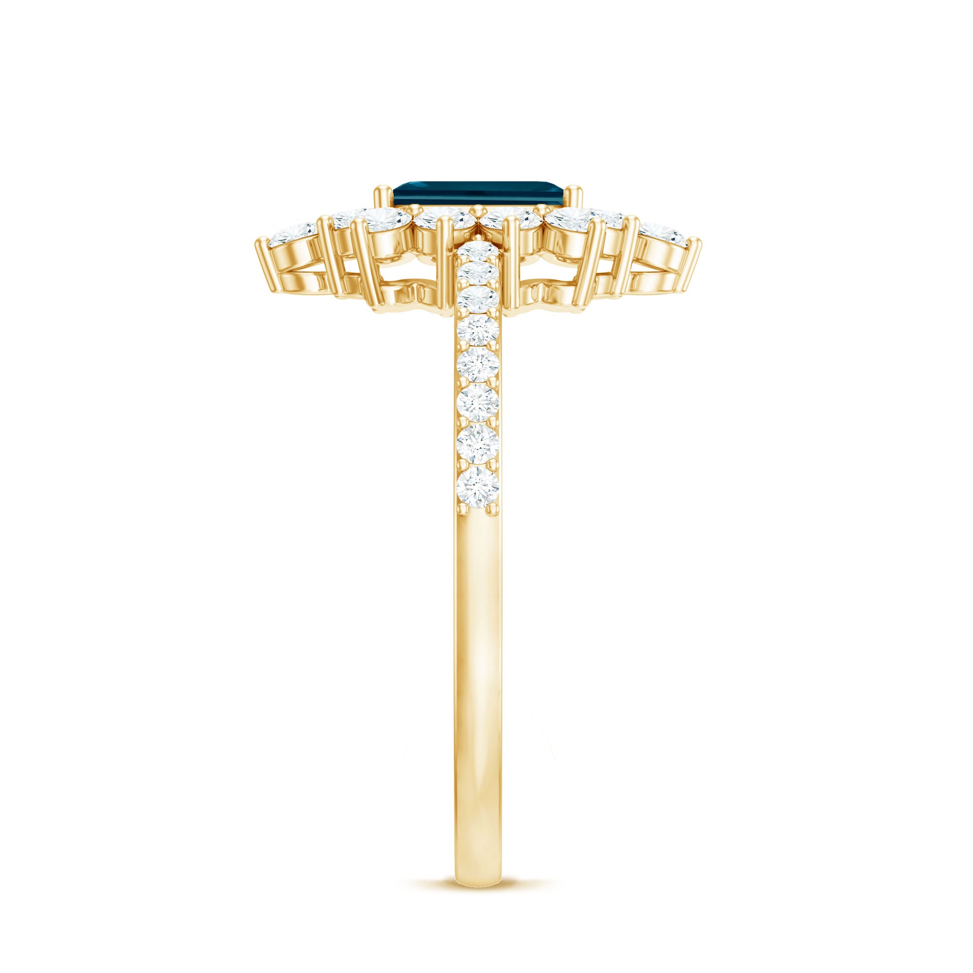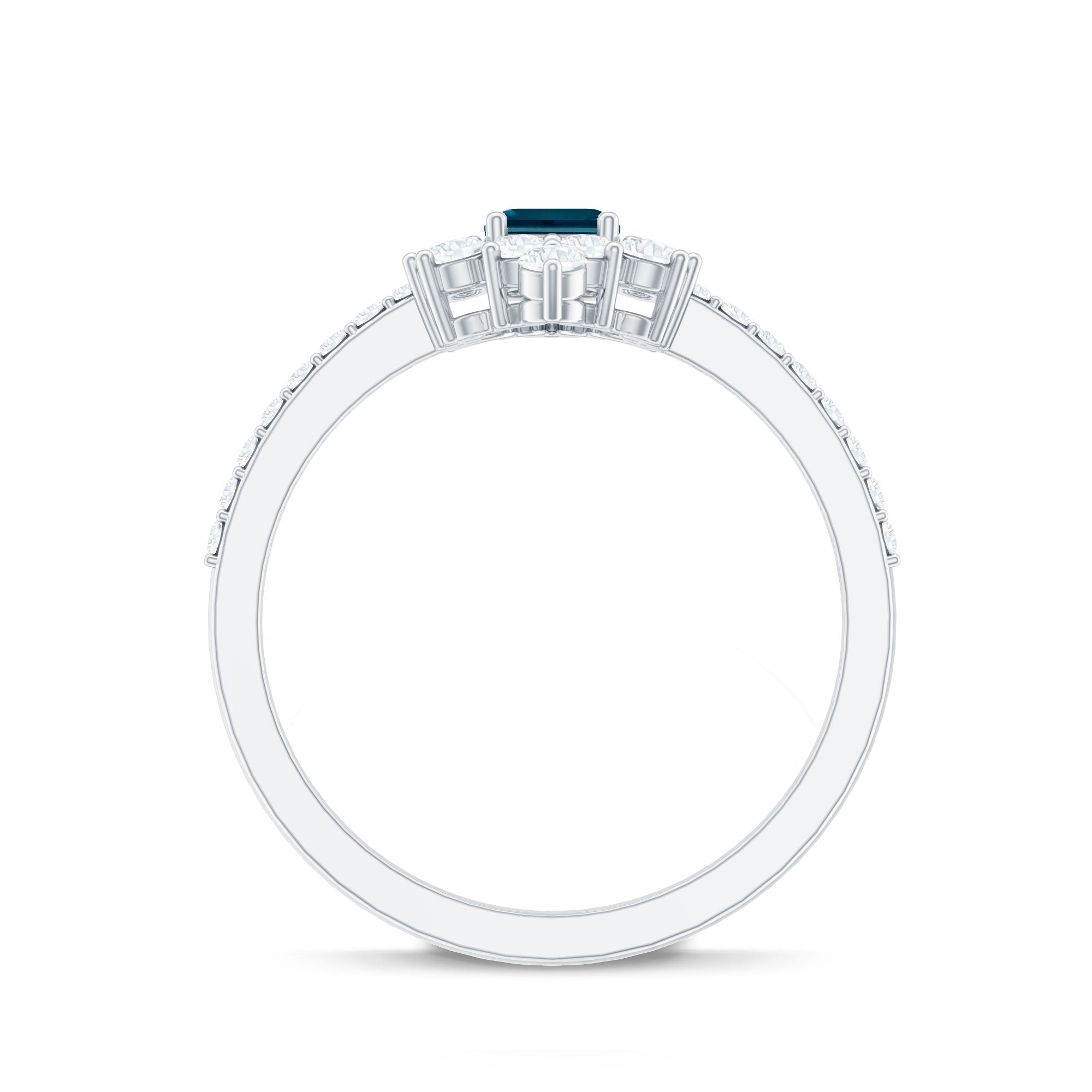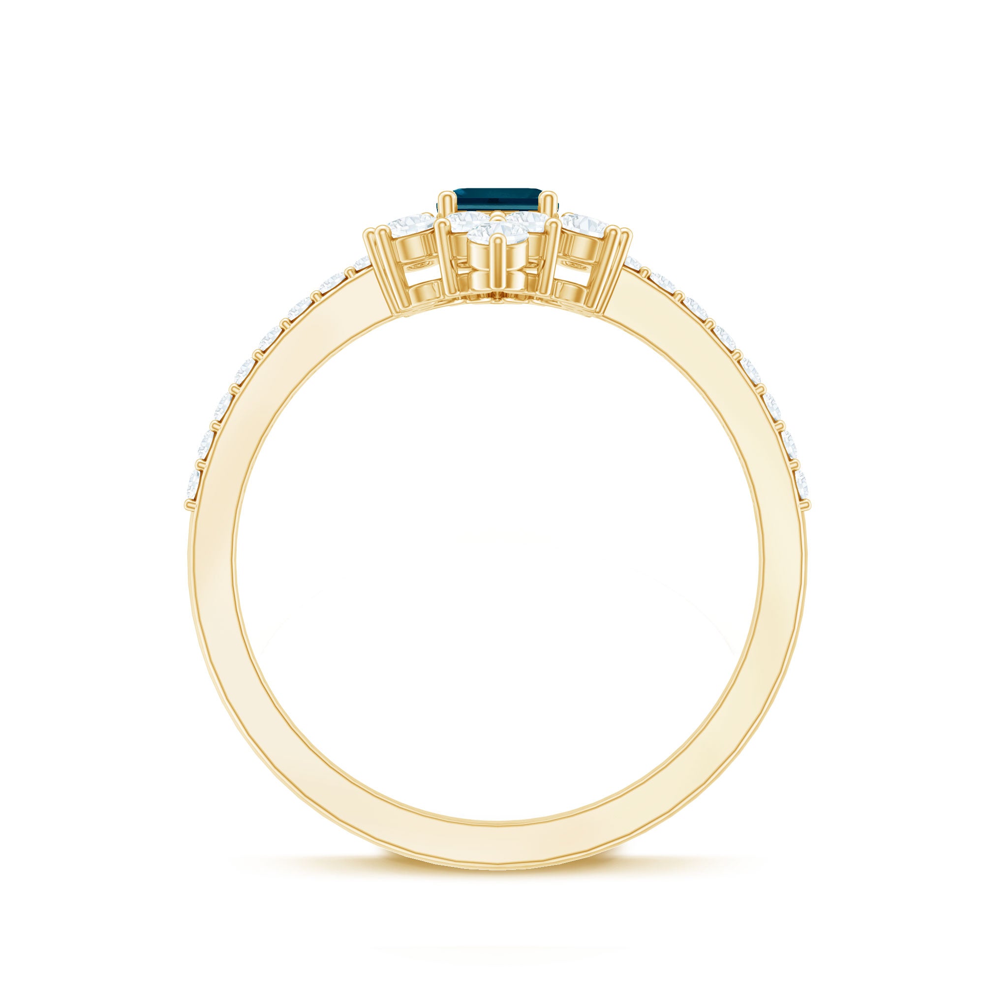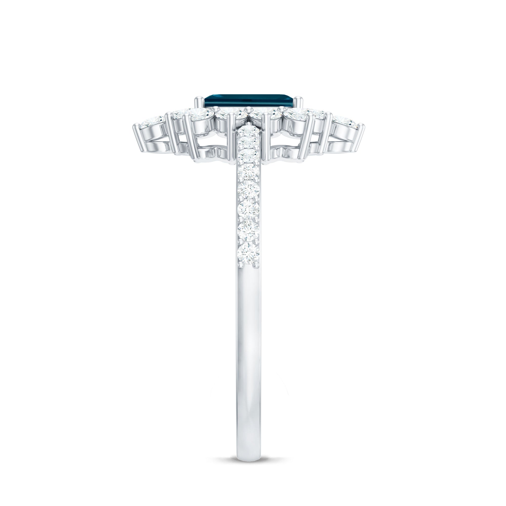 4X6mm Emerald Cut London Blue Topaz Antique Looking Engagement Ring with Diamond Halo
