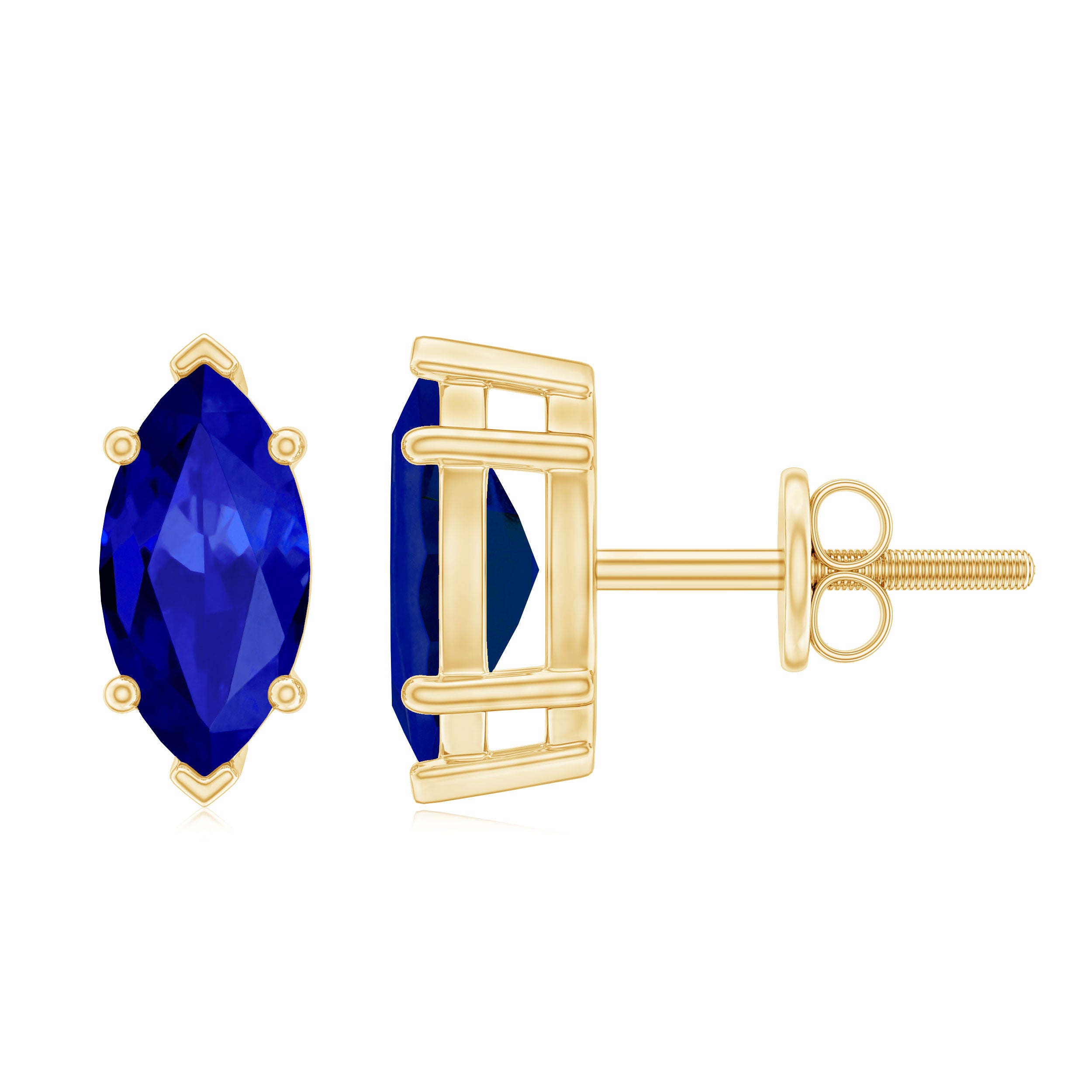 Timeless elegance captured in a single stone, these Stud Earrings feature Marquise Cut Lab Created held in prong setting making these earrings a stylish accessory. Crafted with proper care and attention, the Blue Sapphire Earrings are designed to embrace all your casual and formal outfits. Comfortably secure with Screw Back Closures ensures both safe and snug fit. Adorn her ears by gifting these effortless Solitaire Earrings on her special day.