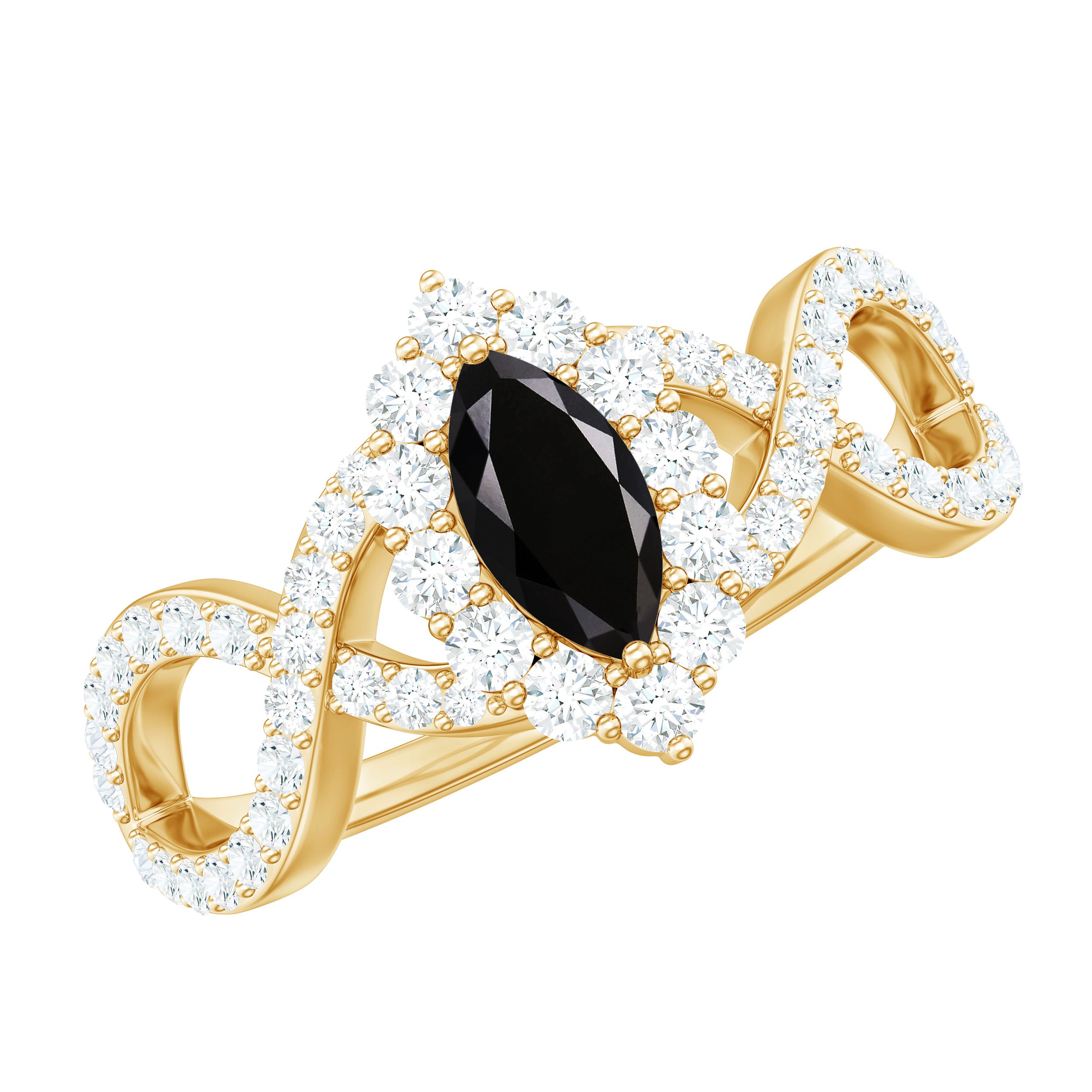 4x8mm Marquise Cut Black Onyx Statement Engagement Ring with Diamond Halo