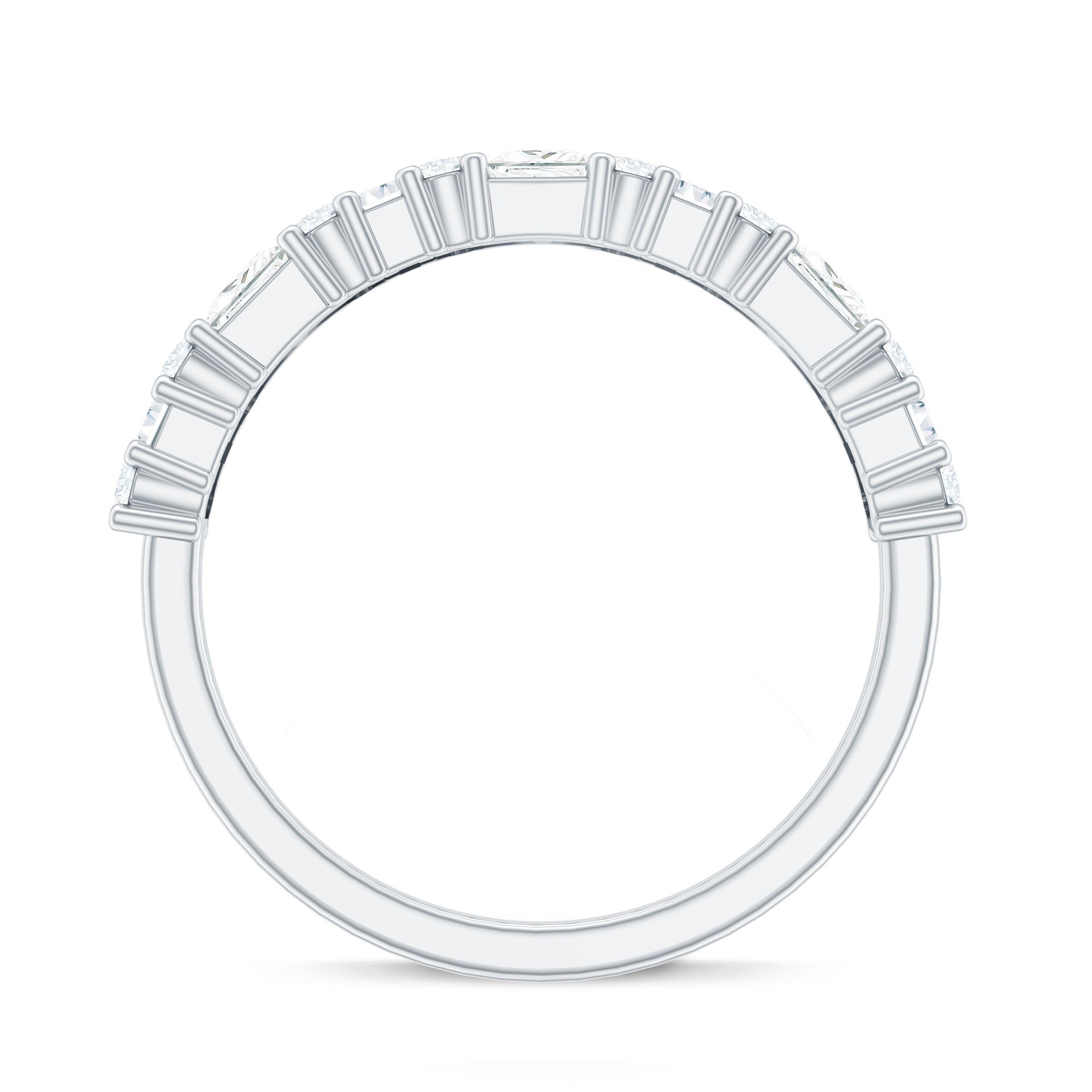 Show your lady love how special she is by gifting her this stunning Half Moissanite Eternity Band Ring. The ring is adorned with dazzling Round, Baguette, and Princess Cut Moissanite stones, set in a shared prong setting that covers the entire band.