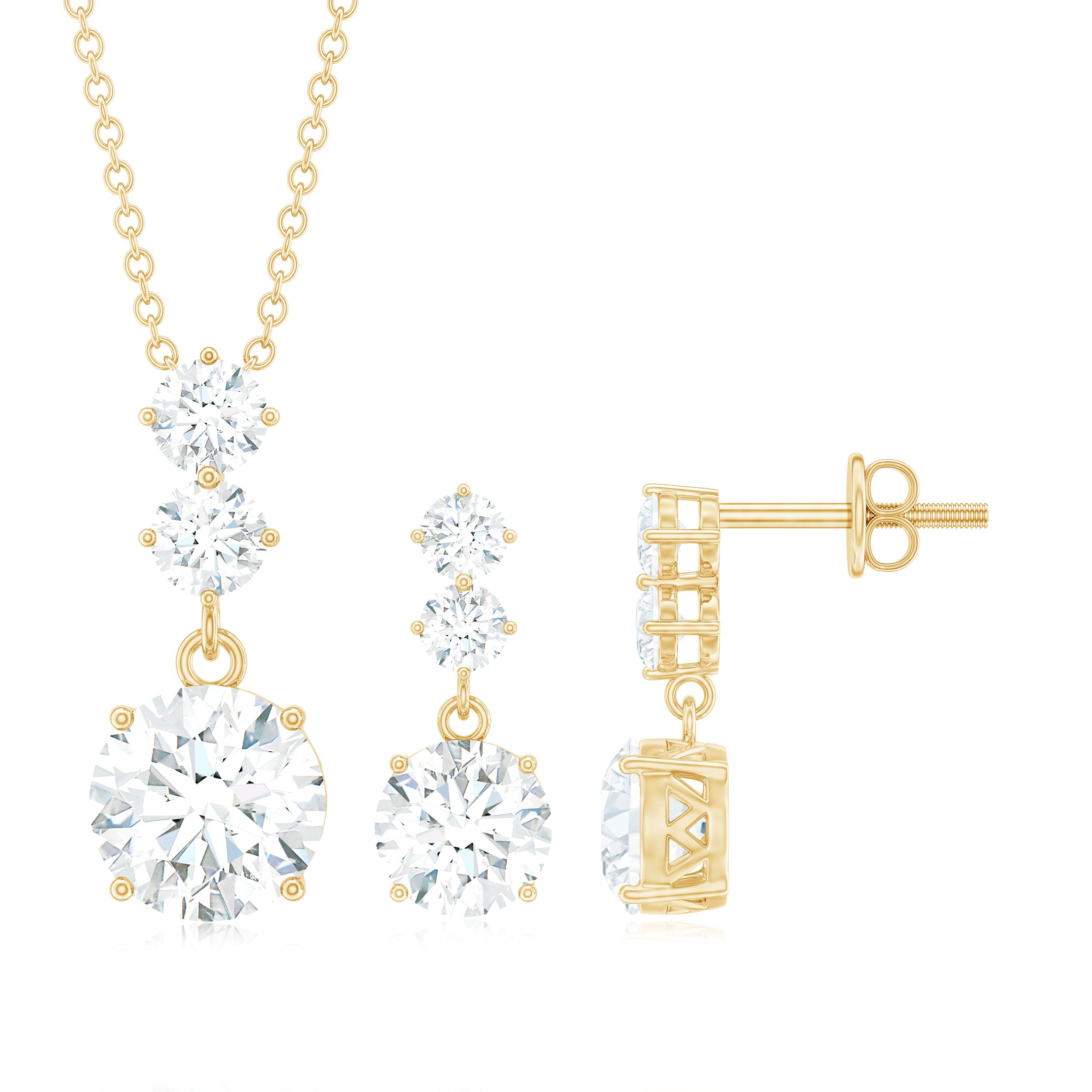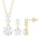 5.25 CT Moissanite 3 Stone Drop Dangle Earring and Necklace Set